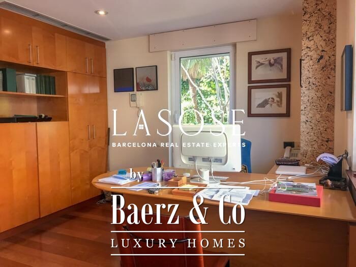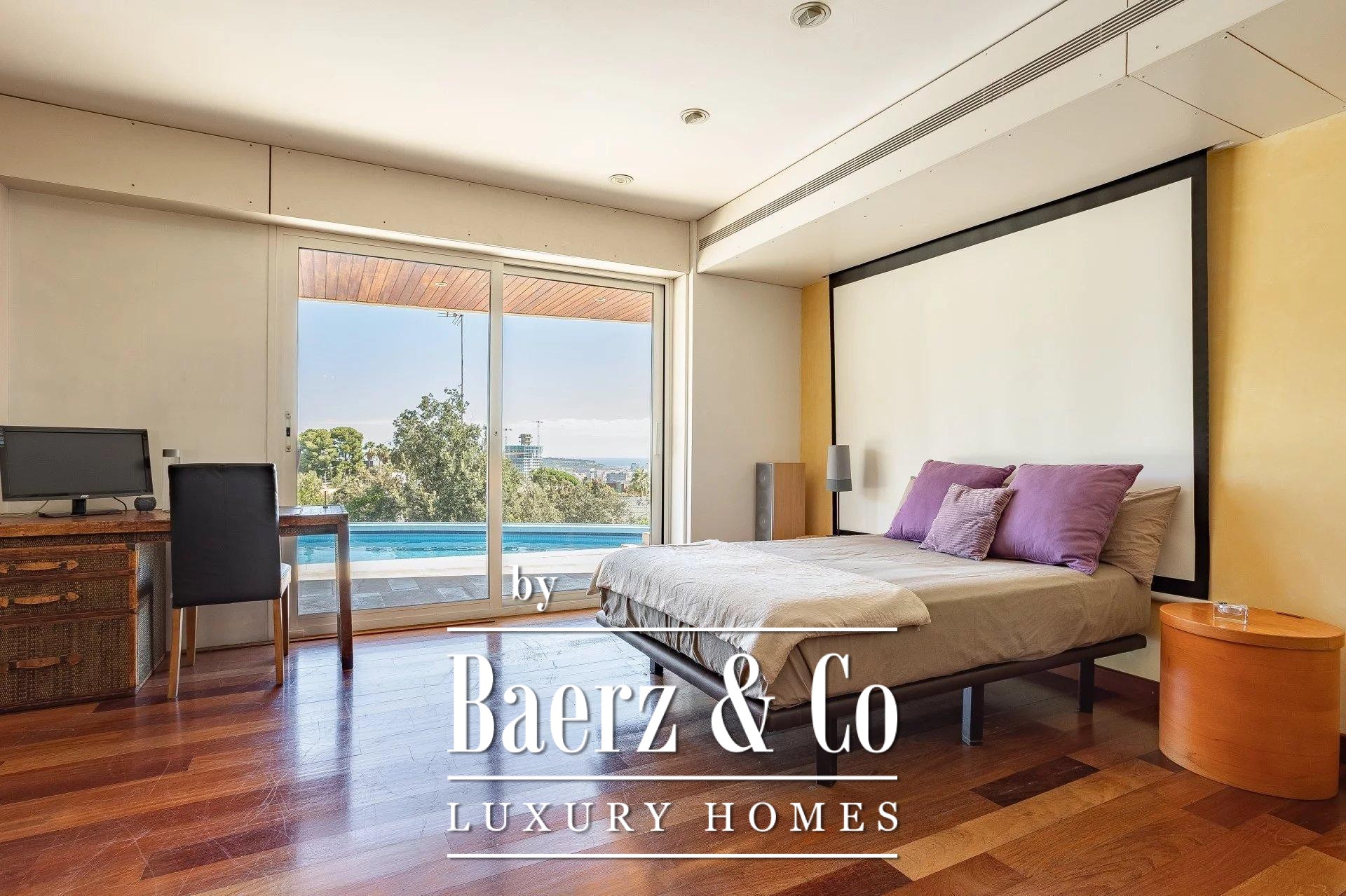 Op de bovenste verdiepingen bevindt zich het slaapgedeelte, met drie hoofd­slaapkamers elk met eigen badkamer, en een mastersuite met studeerkamer. Op de hoogste verdieping zijn er drie eenpersoonskamers met badkamers en een panoramisch terras dat overvloedig licht en uitzicht op zee biedt. Voorzieningen omvatten centrale verwarming, airconditioning, een lift, video-intercom, fitnessruimte, opbergruimte en een automatisch irrigatiesysteem. Deze villa in Esplugues de Llobregat belichaamt ingetogen Spaanse luxe met zowel geborgenheid als verbondenheid, ideaal voor wie een bijzonder familiehuis nabij Barcelona zoekt.