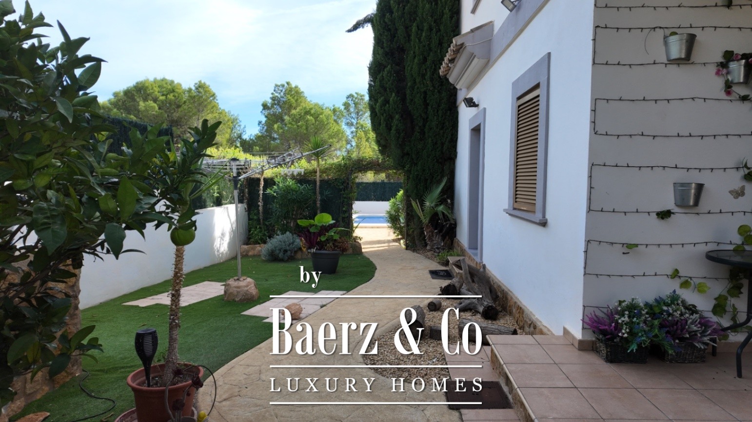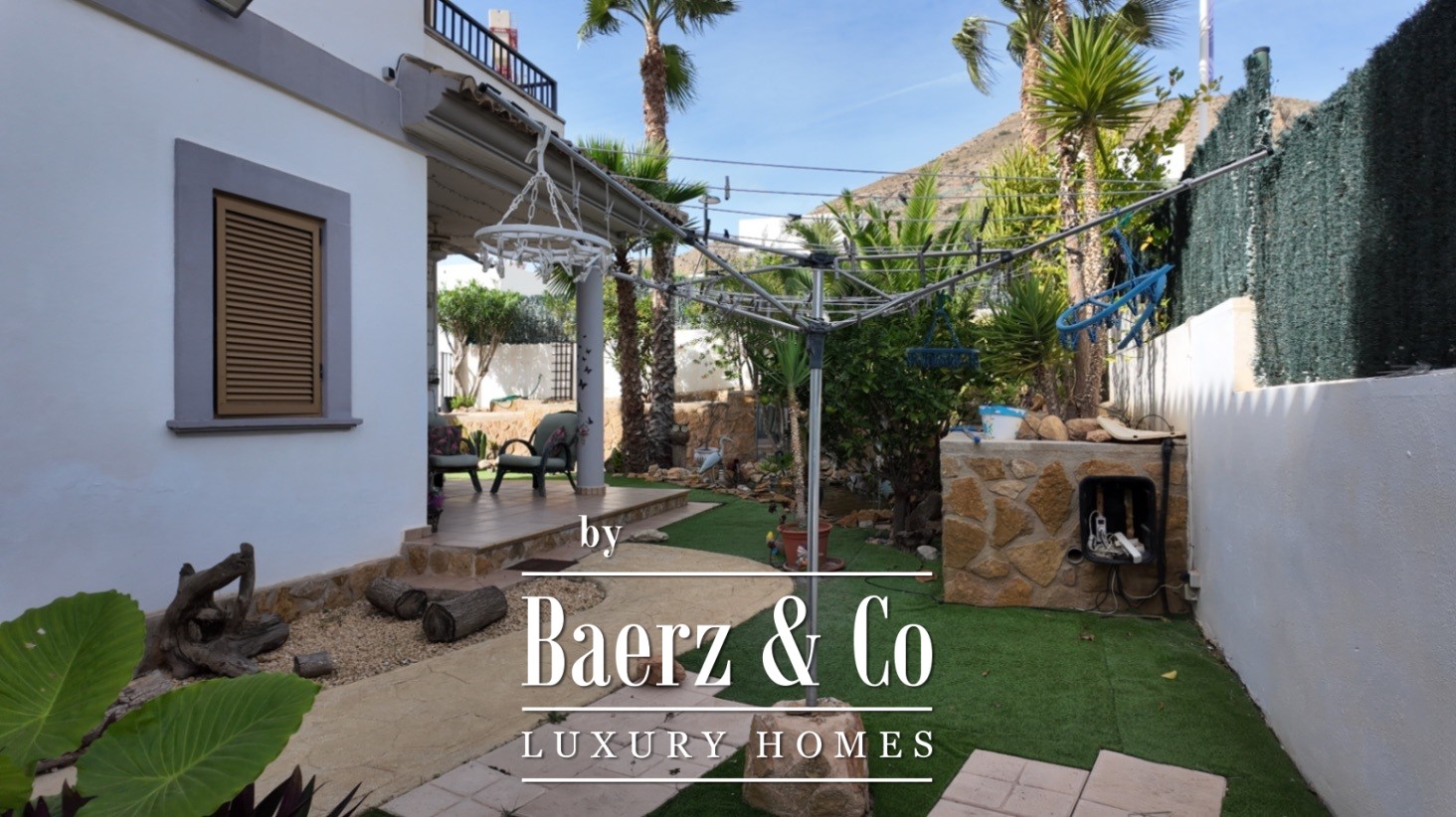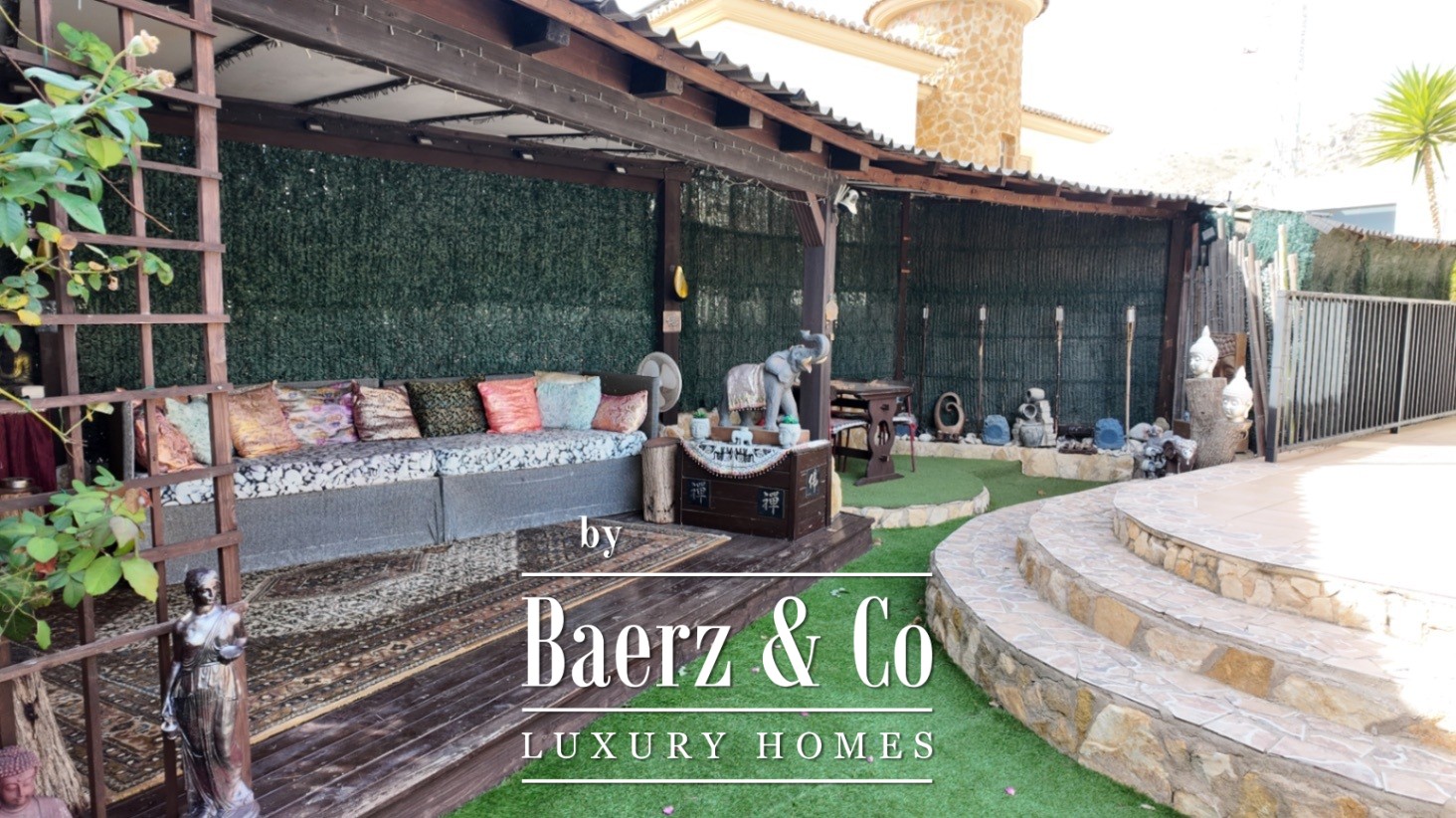 Gelegen op slechts 15 minuten van de stranden van Benidorm en dichtbij alle voorzieningen, bevindt deze villa zich op een perceel van 490 m² met onderhoudstuin, privézwembad en parkeerplaats.