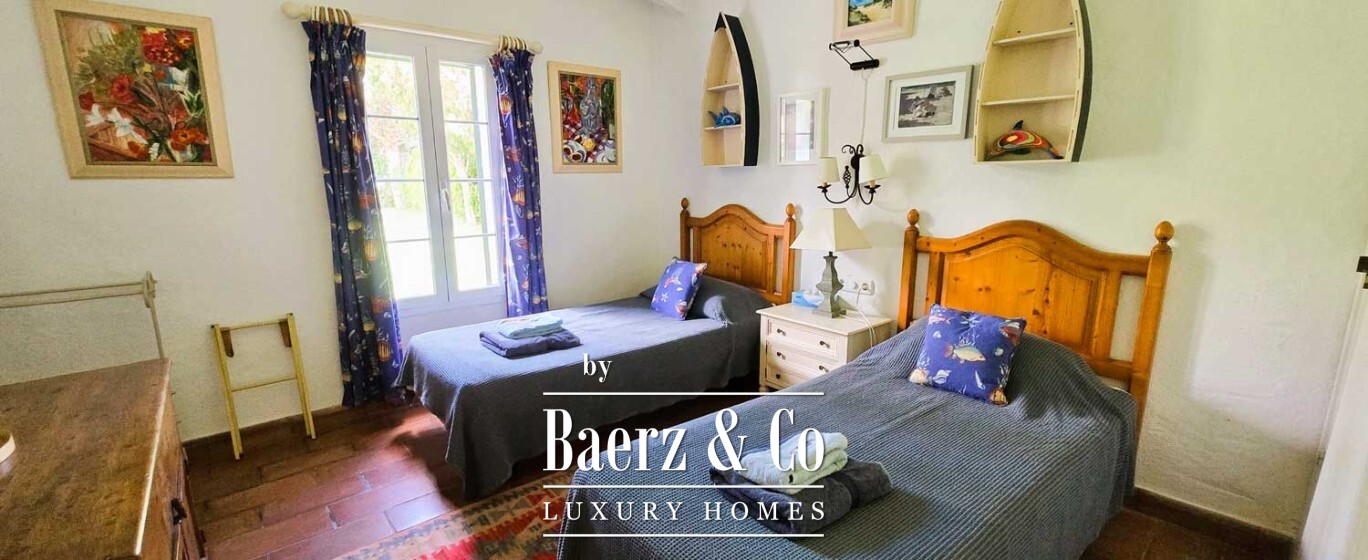 Exclusieve Villa Fornells verwelkomt u met een ingetogen gevoel van thuiskomen, gesitueerd op een royaal perceel van 1.212 m² en voorzien van 322 m² eigentijdse leefruimte met een authentieke Menorcaanse signatuur. De woning kenmerkt zich door overvloedig licht en zorgvuldig opgezette ruimtelijke samenhang; dubbele beglazing omlijst vanuit elke kamer het panoramische zeezicht en groen rondom de tuin.