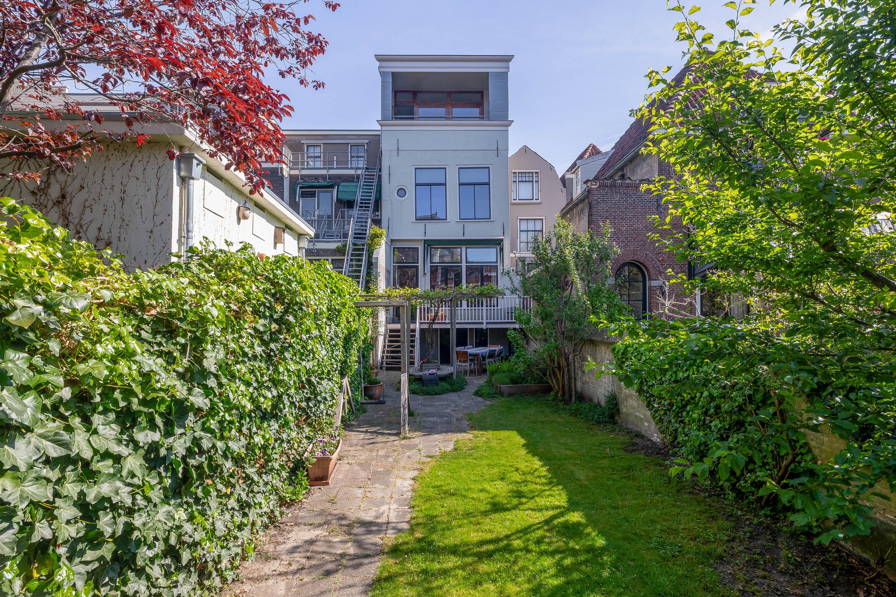 De zonnige en sfeervolle tuin is ruim 25 meter diep en heeft diverse terrassen, toegang tot de kelder, een schuur achter in de tuin, een houten toegangsbrug aan achterzijde vanuit de Peperstraat en een gerenoveerde stadsmuur. Vanuit de tuin, maar ook vanuit het huis heeft u fantastisch uitzicht over monumentaal Gouda.