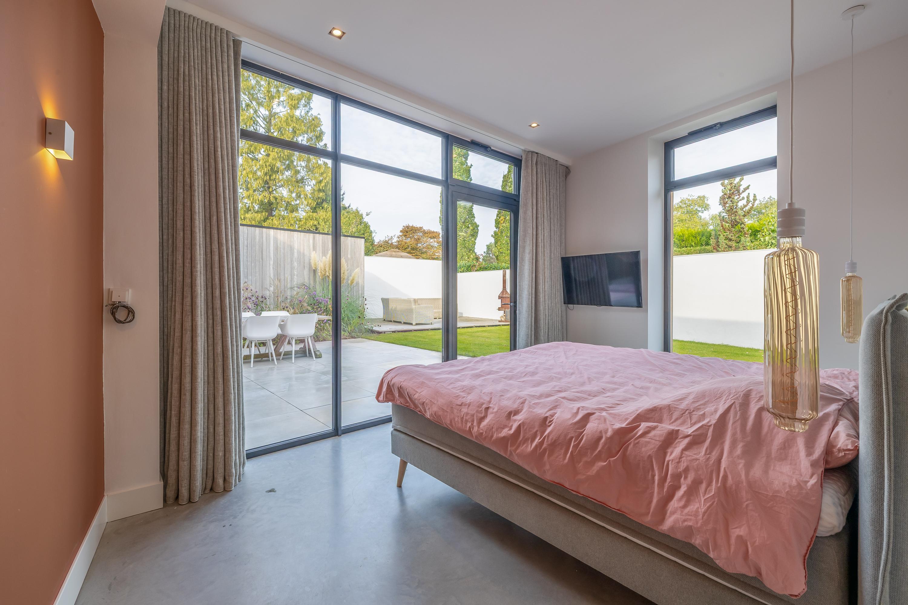 De drie slaapkamers zijn allemaal zeer ruim en hebben een fijne lichtinval door de ramen die doorlopen tot op de grond. Vanuit alle slaapkamer is er zicht op de eigen tuin. Eén slaapkamer heeft direct tuincontact door de openslaande deuren.