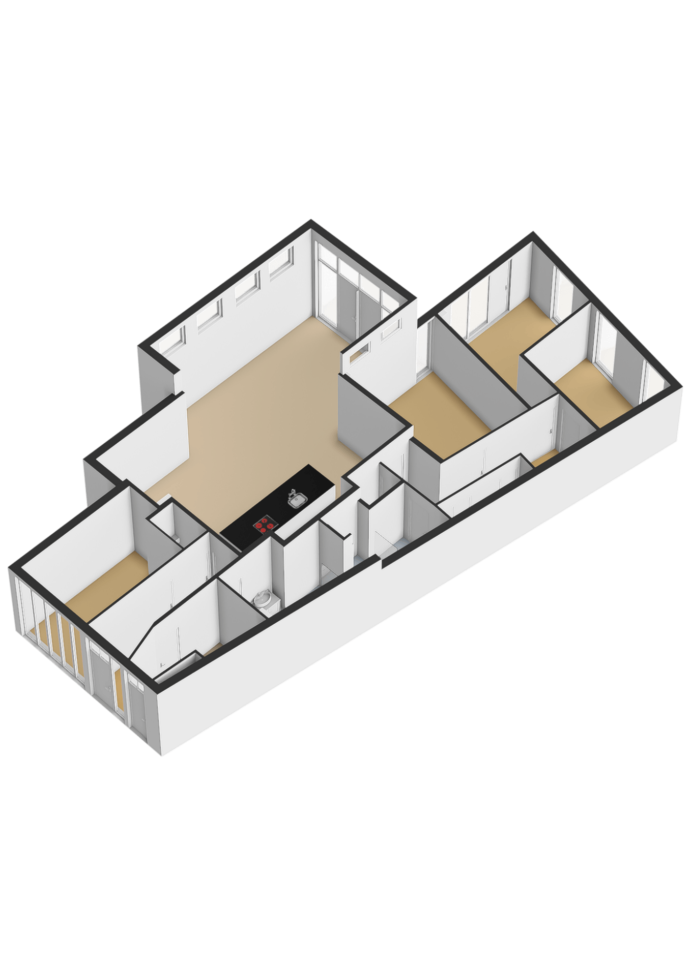 - Overal ligt dezelfde doorlopende vloer mét vloerverwarming.