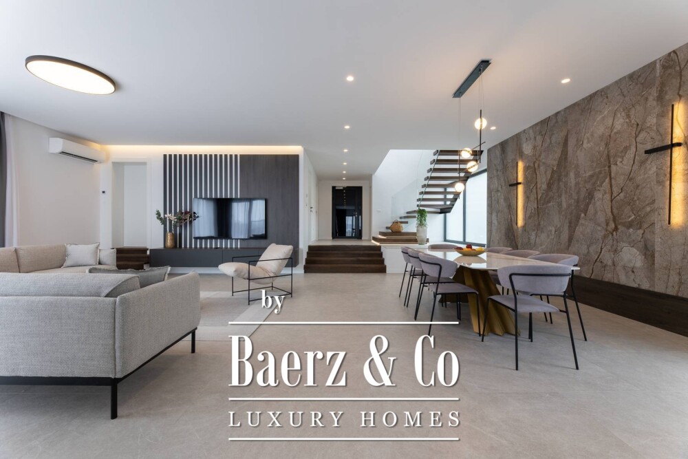 Villa Kaštela met uitzicht op zee en eilanden is een toonbeeld van eigentijdse elegantie en comfort. Deze villa in Kaštela biedt 330 m² aan interieur verdeeld over twee verdiepingen, gelegen op een besloten perceel van 1.030 m². De begane grond is met zorg ingericht met een machinekamer, berging, fitnessruimte, sauna, badkamer, royale leefruimte en een keuken die naadloos overloopt in het eetgedeelte. Boven beschikken vijf rustgevende slaapkamers ieder over een eigen badkamer en directe toegang tot een balkon of terras, waardoor het natuurlijke mediterrane licht elke kamer vult.