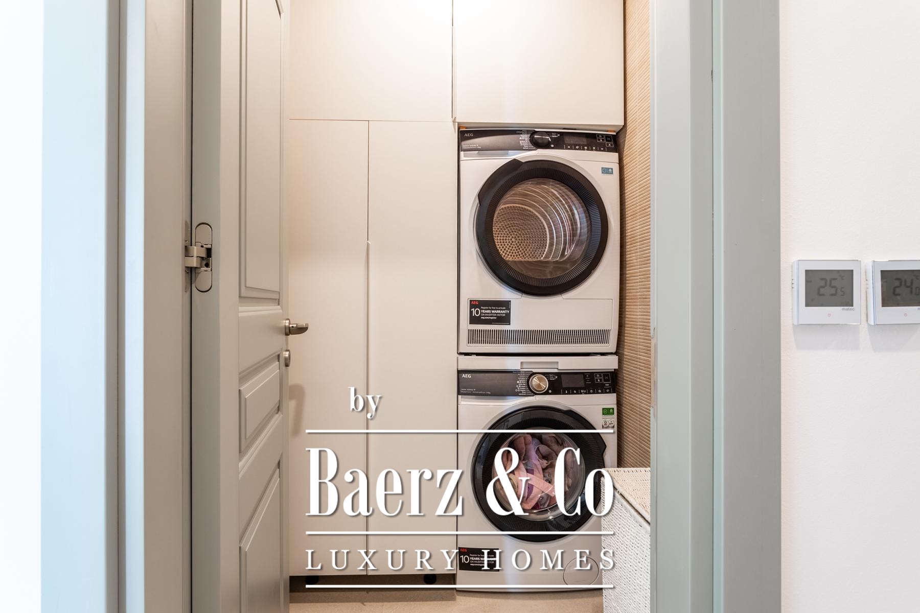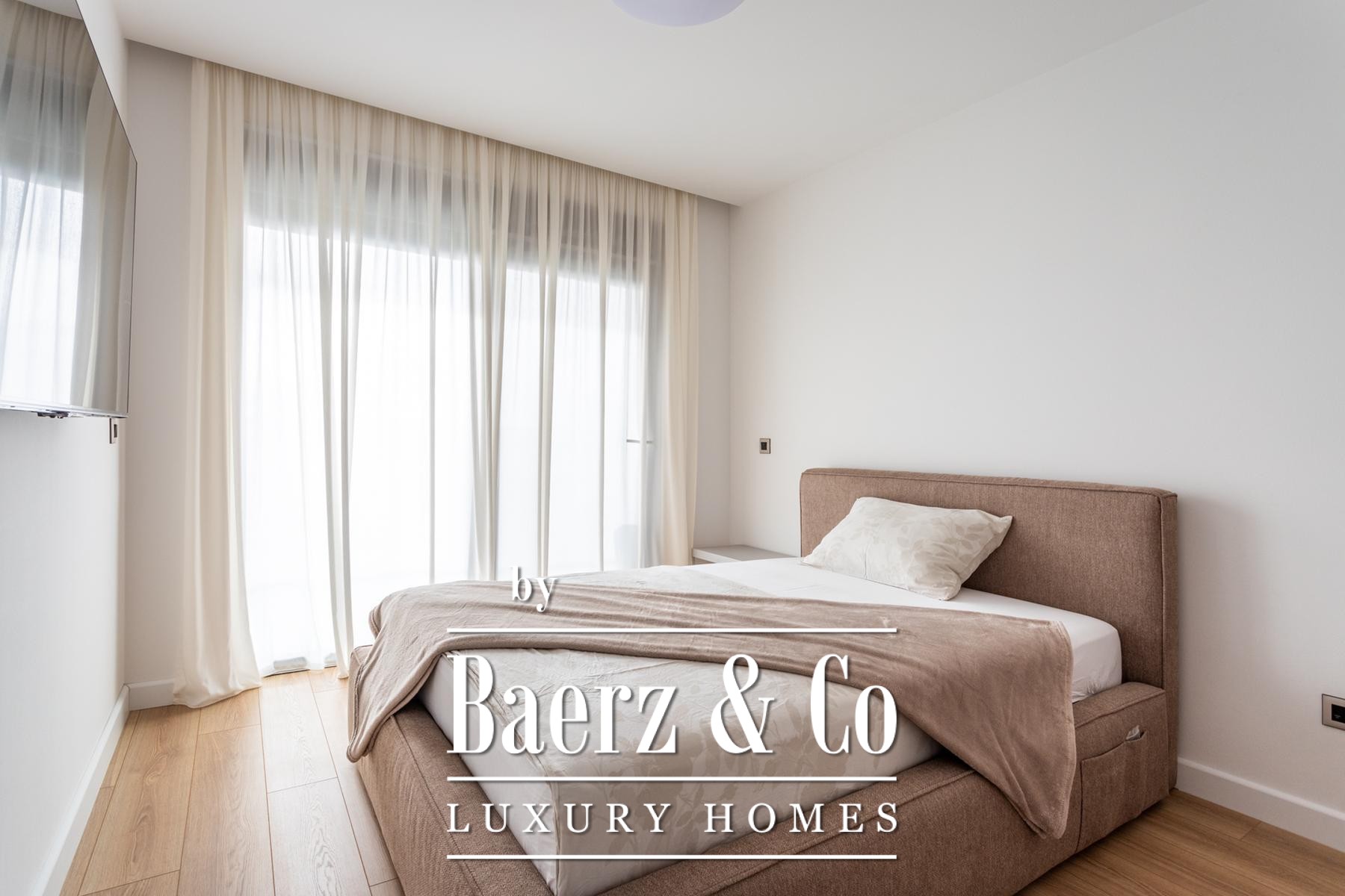 De begane grond vormt het toneel met een entreehal die toegang biedt tot een functionele opeenvolging van vertrekken waaronder een wasruimte, gastentoilet en berging. Het hart van het huis is een royale, lichte leefruimte waar keuken, eetkamer en lounge vloeiend in elkaar overlopen. Plafondhoge raampartijen verbinden het interieur moeiteloos met een ruime overdekte veranda, zonneterras en privézwembad, wat een levensstijl onderstreept die is afgestemd op het mediterrane klimaat.