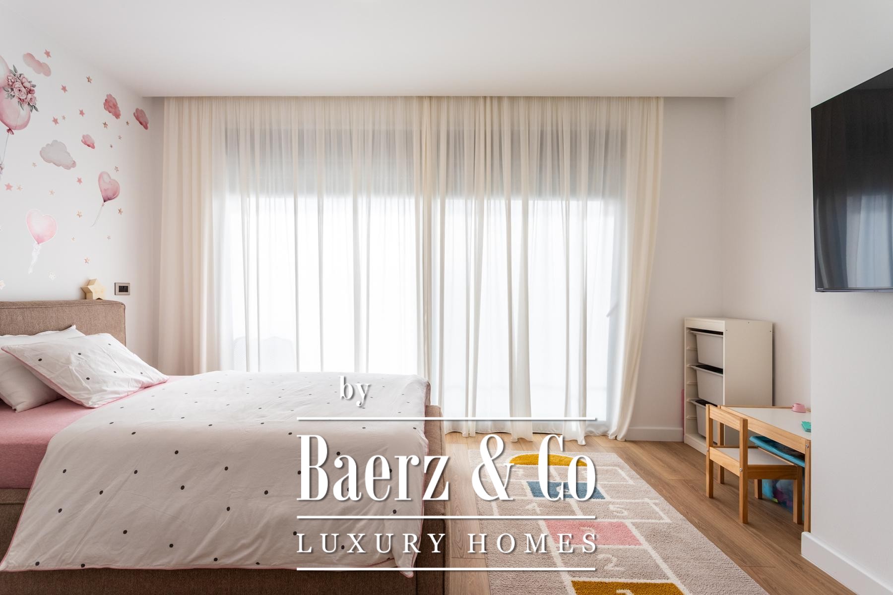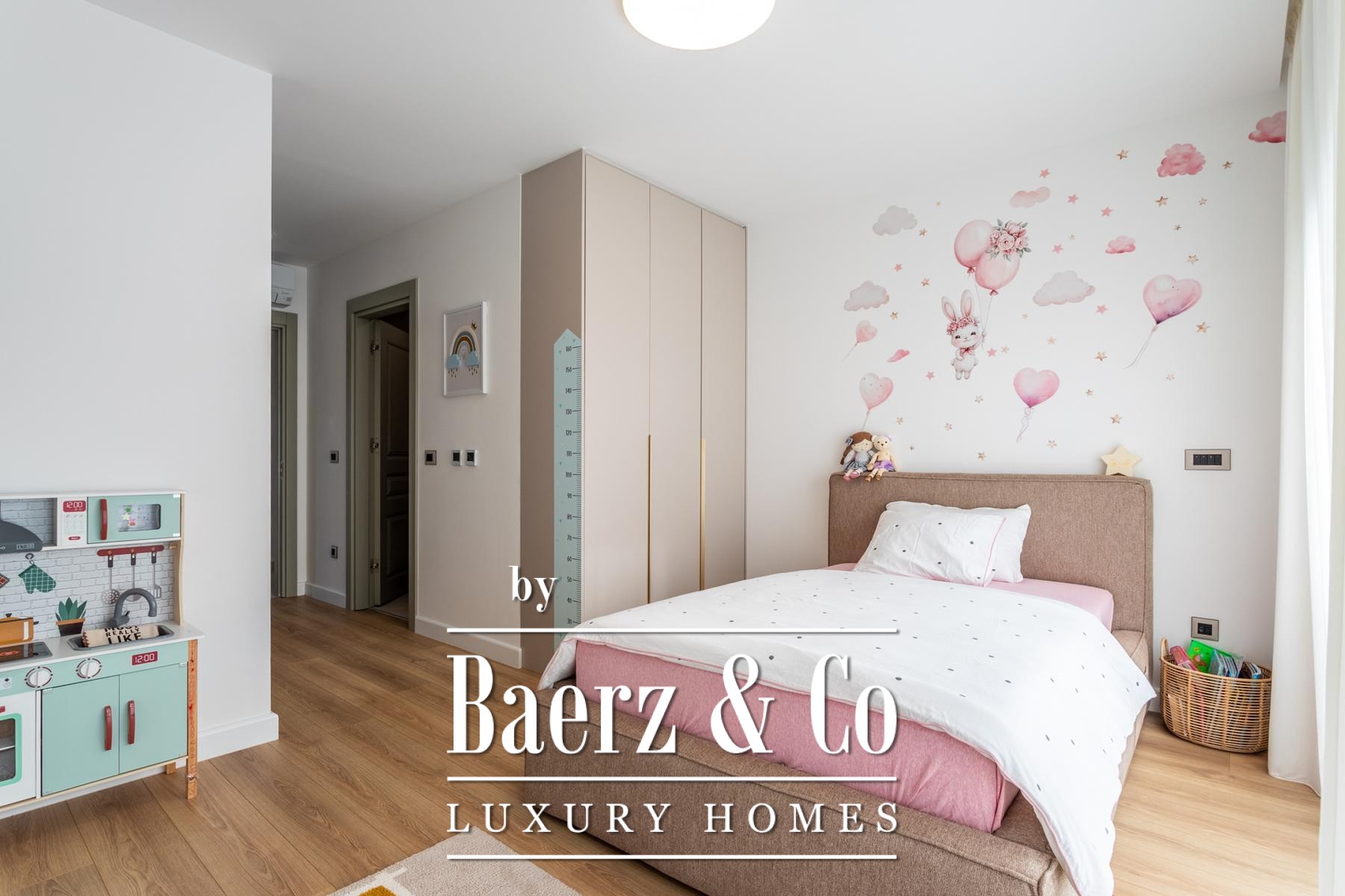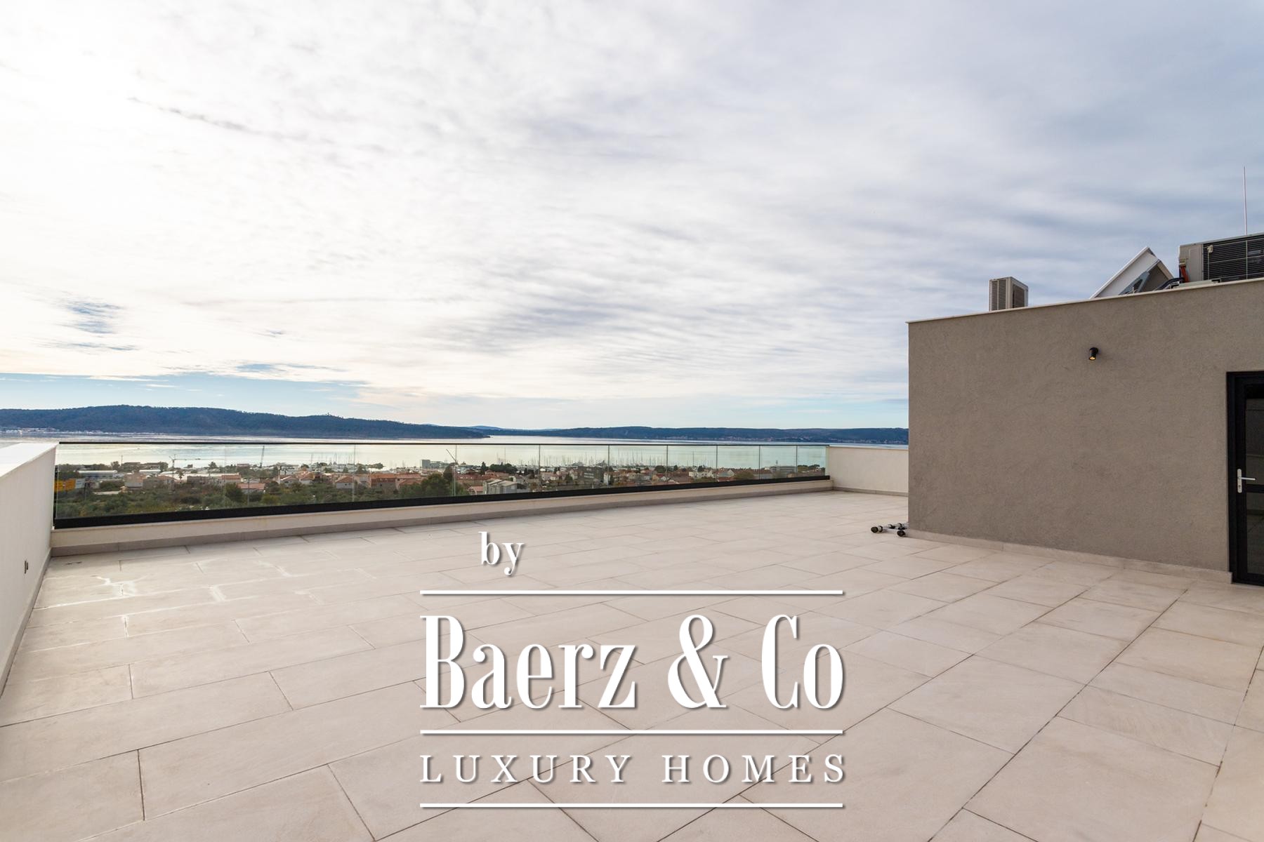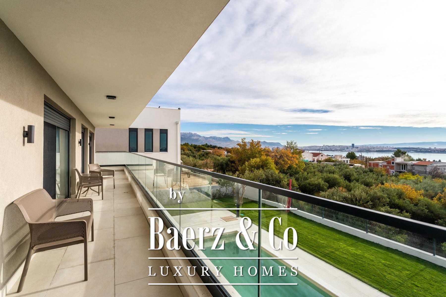De eerste verdieping is gericht op ontspanning, met vier slaapkamers die elk beschikken over een eigen badkamer en samen toegang hebben tot het terras. Boven is het 81 m² grote dakterras, voorbereid op een buitenkeuken en jacuzzi, en nodigt bewoners uit tot het genieten van panoramisch uitzicht op zee en de stad Split.