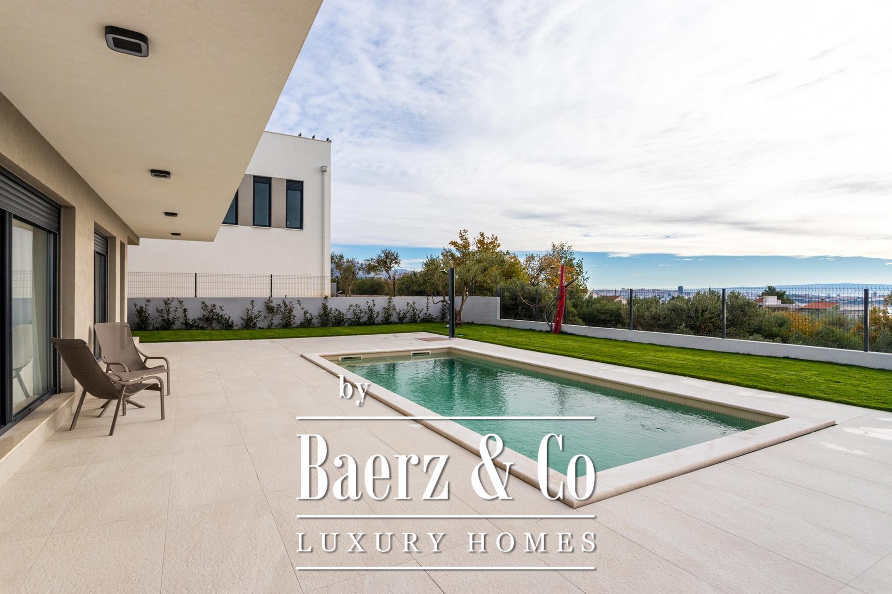 Villa Kaštela vertegenwoordigt een volledig moderne woning in een van de meest veelbelovende kustgebieden van Kroatië. Deze villa in Kaštela staat op een perceel van 490 m² en biedt 320 m² zorgvuldig ontworpen leefruimte verspreid over drie lagen, waarbij helderheid van ontwerp en een ingetogen gevoel van privacy centraal staan.