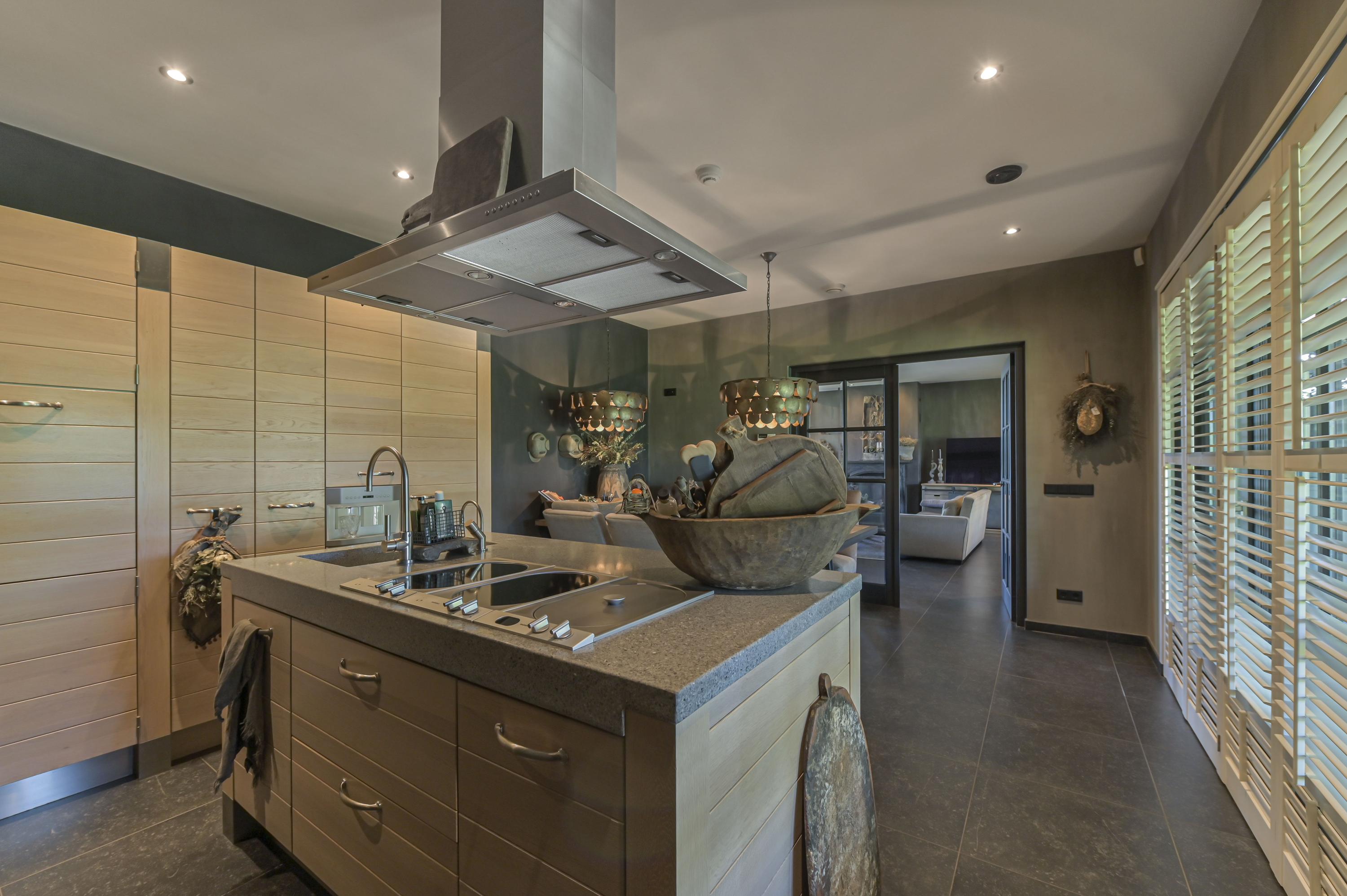 Doordat de woning op een terp ligt is er vanuit de woonkamer een prachtig uitzicht aan de voorzijde. In de woonkamer is een gashaard aanwezig. Openslaande deuren vanuit de woonkamer én vanuit de keuken bieden toegang tot de tuin. De keuken is voorzien van een kook- en spoeleiland, inductiekookplaat, friteuse, Quooker, combi oven/magnetron, koelkast, diepvries, vaatwasser en afzuigkap.