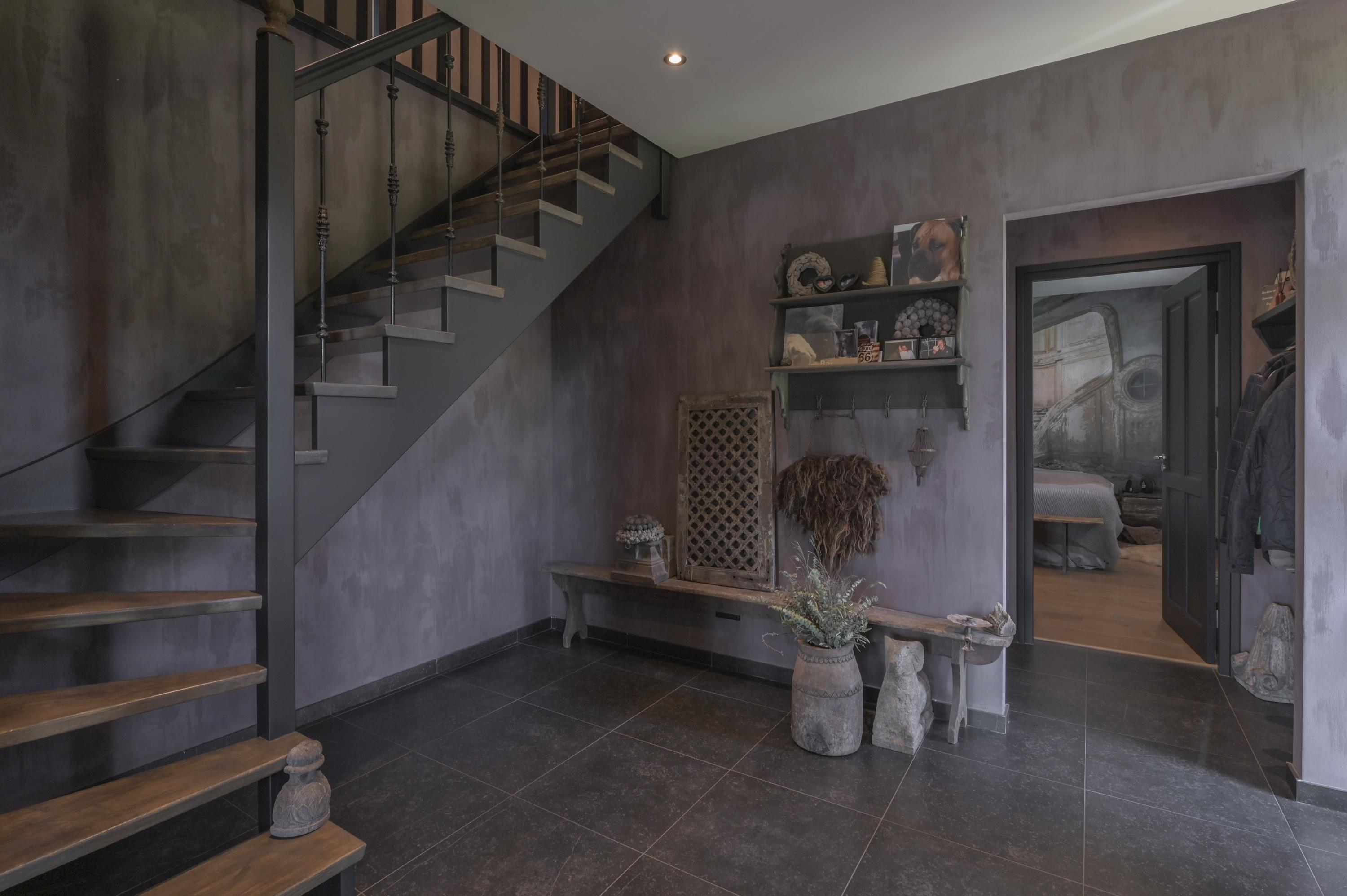 De zeer ruime hal is voorzien van de meterkast, een garderobe en het toilet met urinoir en fonteintje. Vanuit hier zijn de slaapkamer met de en-suite badkamer en de woonkamer met open keuken bereikbaar.
