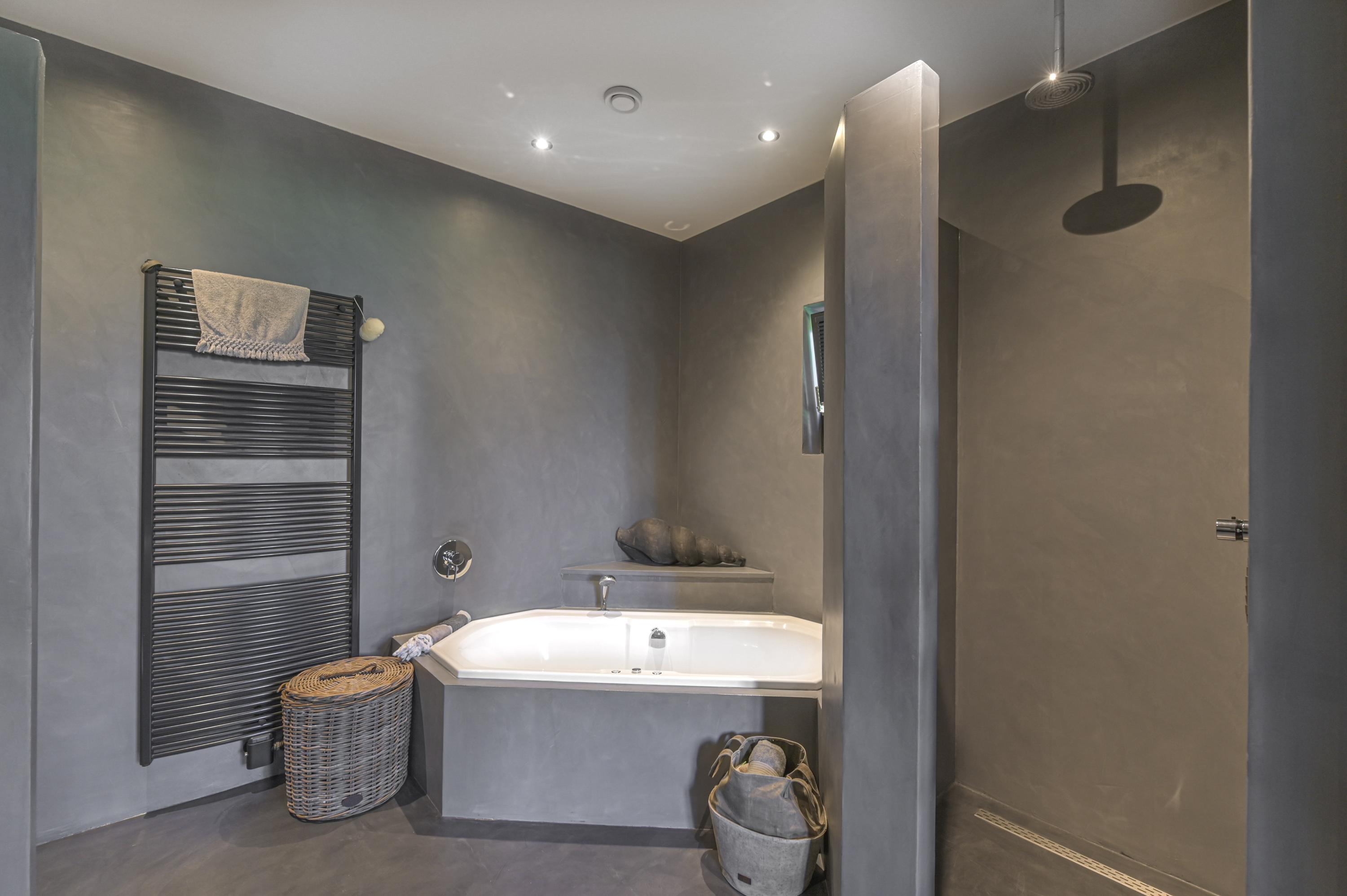 De slaapkamer is voorzien van een houten vloer en vaste kasten. Vanuit hier is de badkamer en-suite bereikbaar door middel van een glazen schuifdeur. De badkamer is later geheel gerenoveerd en voorzien van een beton ciré vloer. Er zijn een inloopdouche met inbouwkranen, een whirlpool, een toilet en een wastafel + meubel aanwezig. Het raam zorgt voor voldoende daglicht en natuurlijke ventilatie.