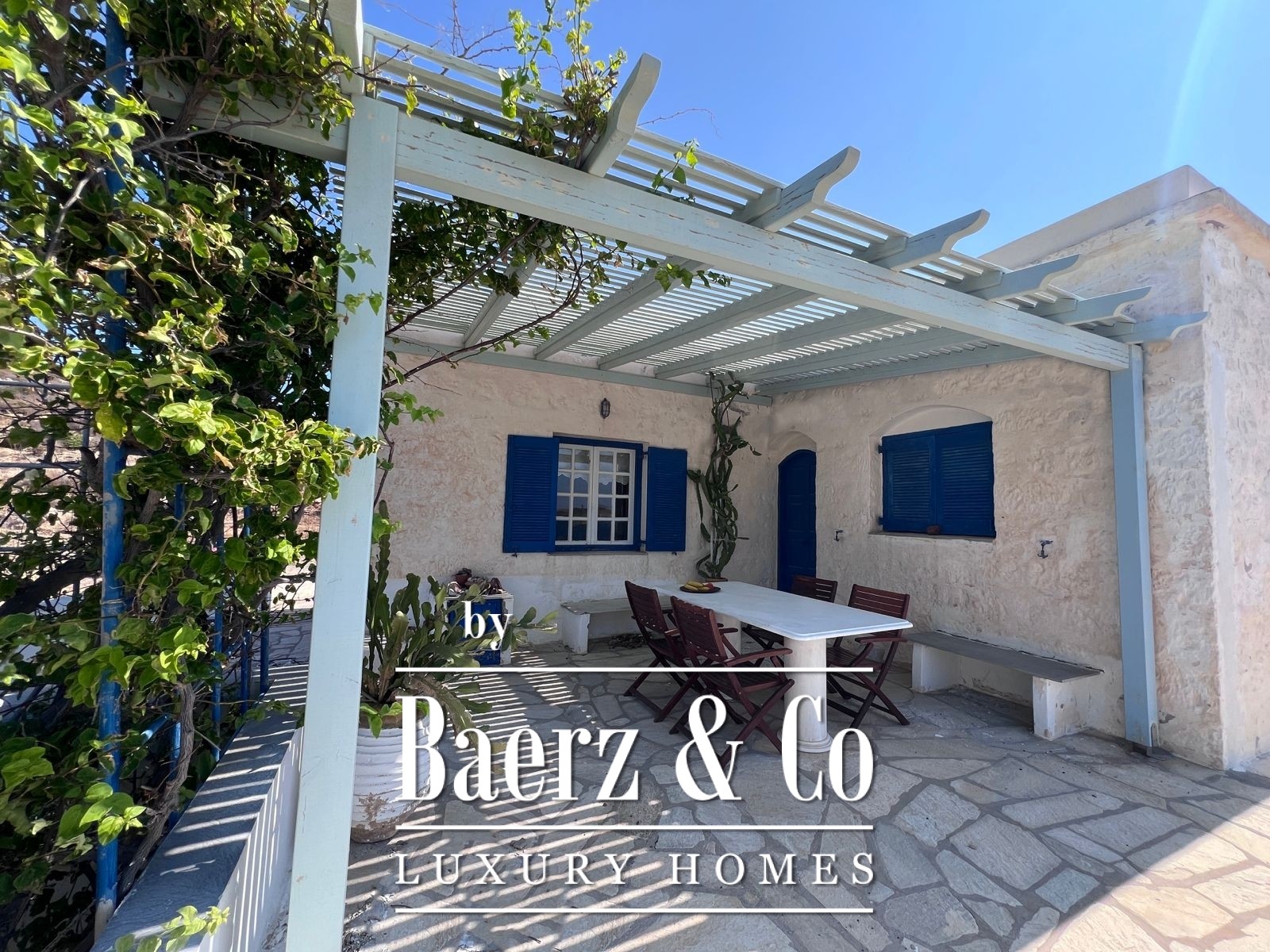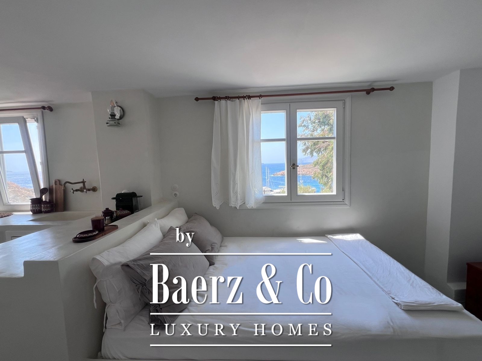 Momenteel ondergaat de woning een grondige renovatie met respect voor haar historische identiteit. De woning wordt voorzien van op maat gemaakte houten ramen en deuren, geavanceerde energie-efficiënte beglazing en maritieme bouwmaterialen van hoge kwaliteit, die duurzaamheid garanderen tegen het Egeïsche klimaat terwijl het authentieke karakter behouden blijft.