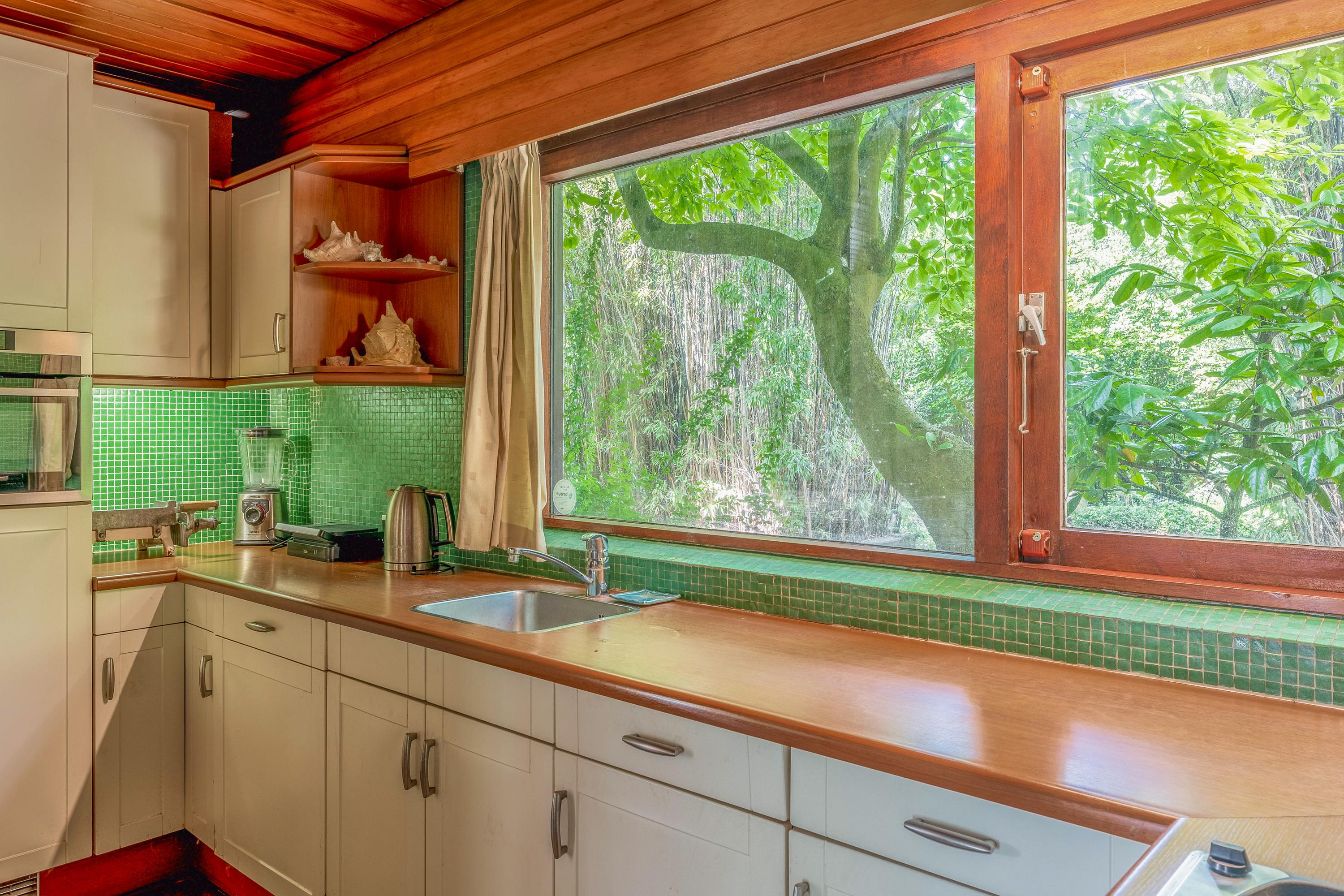 Inside, you’ll find a spacious, garden-oriented living room with large windows that bring in lots of light and offer views of the surrounding greenery. The warm atmosphere and generous layout provide plenty of options for different interior arrangements to suit your personal living style. The adjacent open-plan kitchen is roomy and forms the heart of the home.
