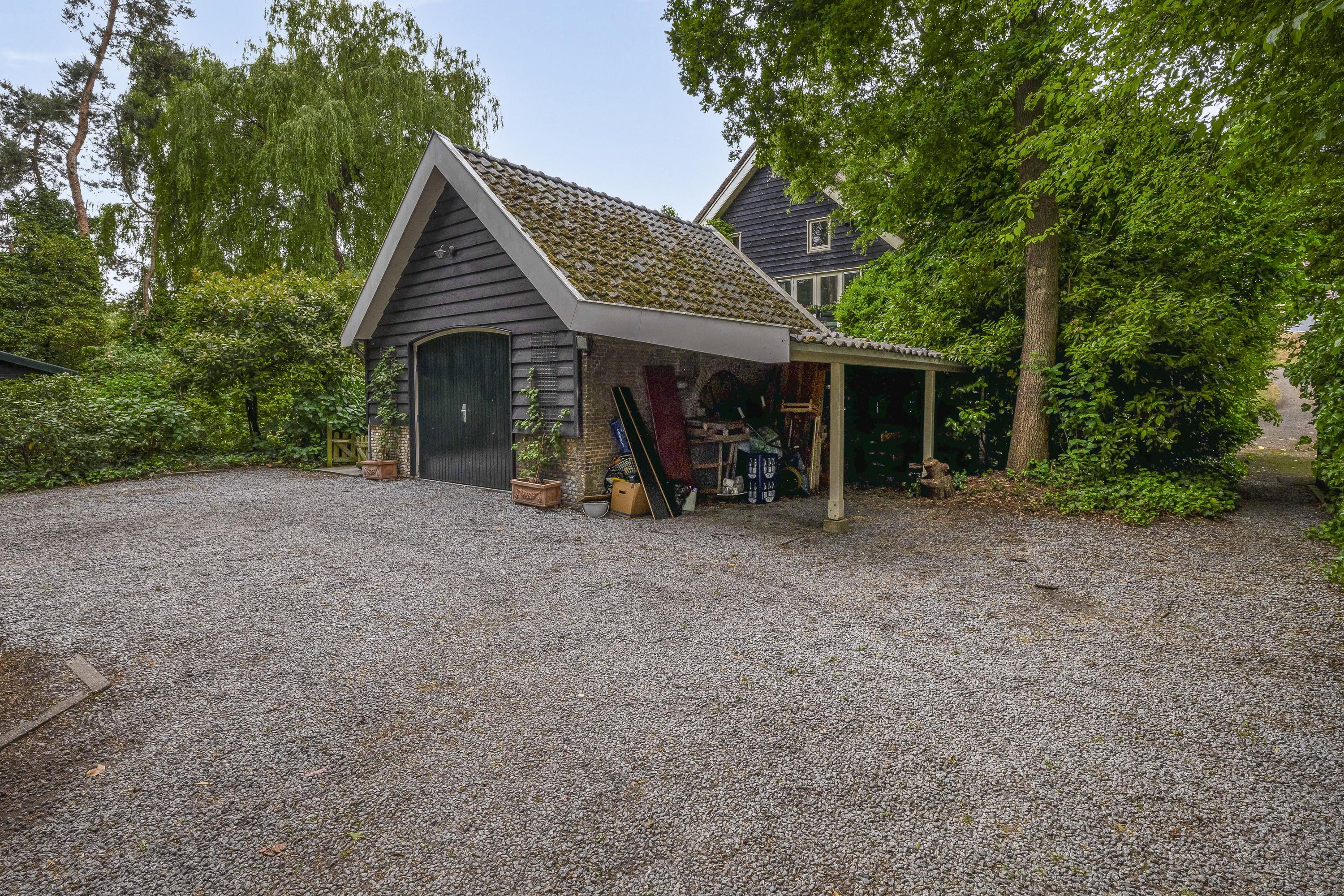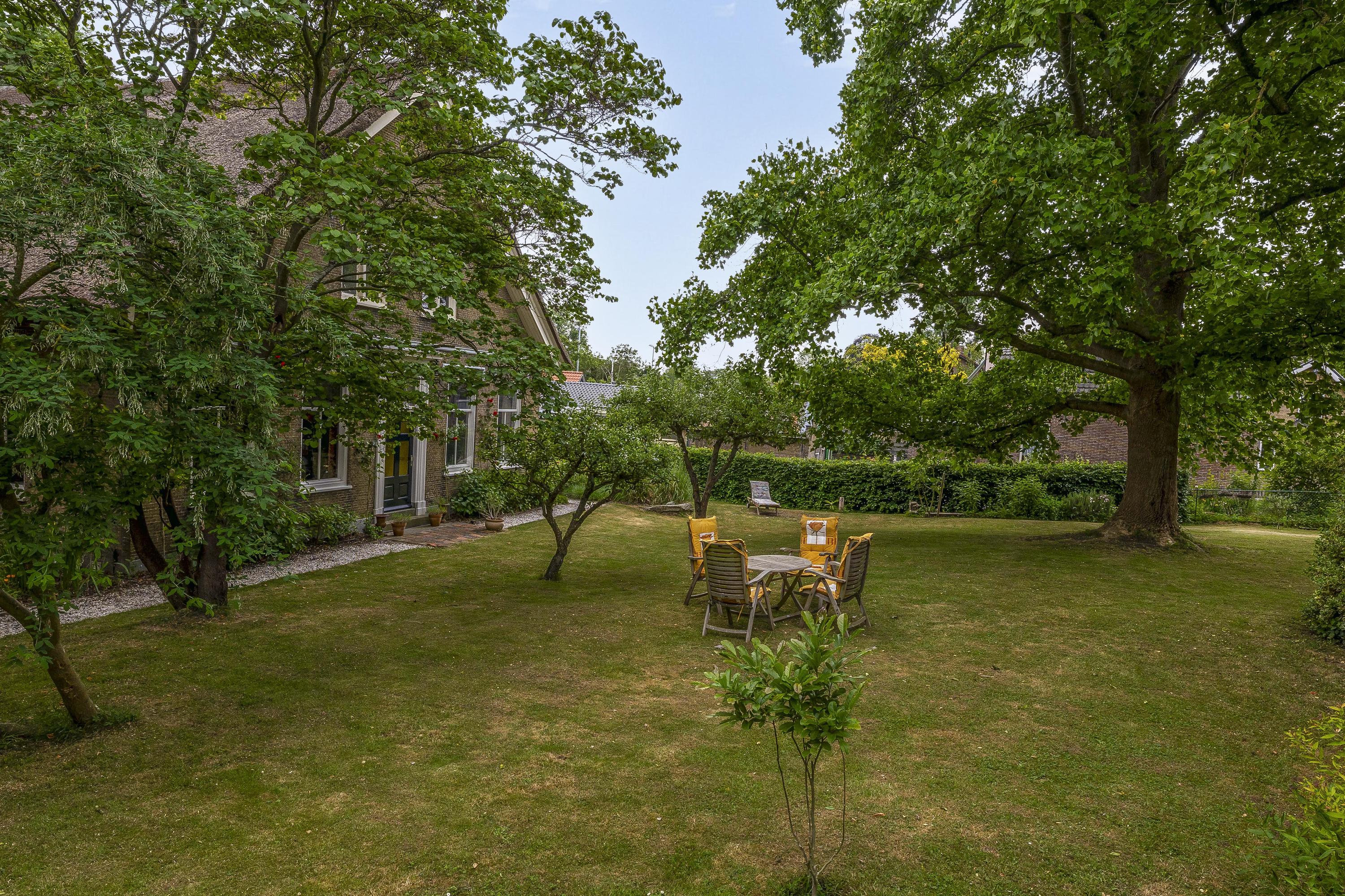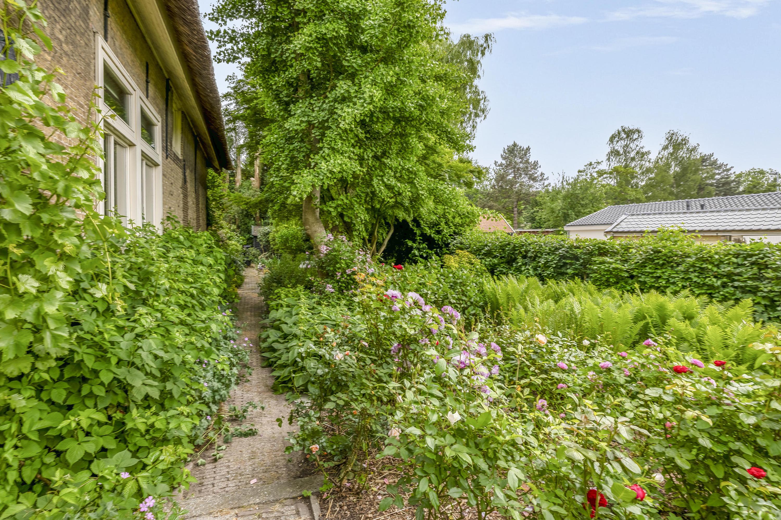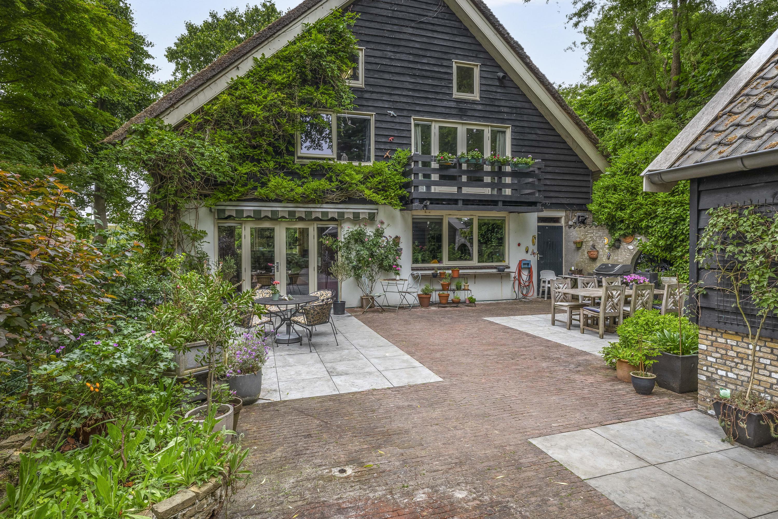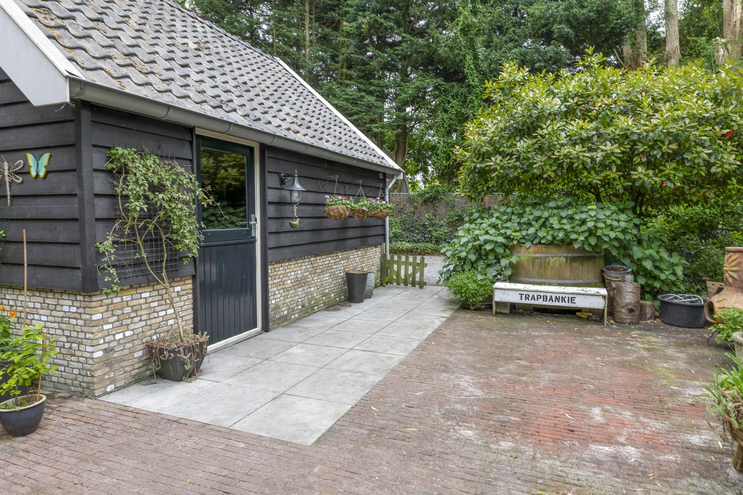 Het perceel van ruim 1.800 m² biedt volledige privacy en heeft rondom volwassen beplanting, een boomgaardachtig gazon en meerdere terrassen. Het zonneterras ligt op het zuiden en is aangelegd op een betonnen plaat van de voormalige schuur. De huidige garage is in 2008 gebouwd, goed geïsoleerd, verwarmd en heeft een grote bergvliering.