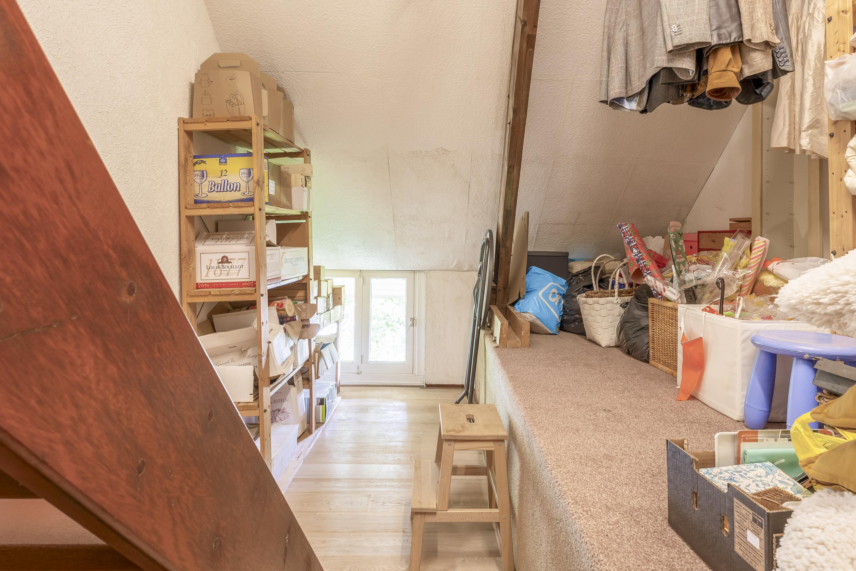 This floor also offers a second bathroom and a versatile space for hobbies or work. A fixed staircase leads to the second floor—a surprisingly spacious attic level with sauna, extra storage, and hobby room. Additional (bed)rooms can easily be created here!