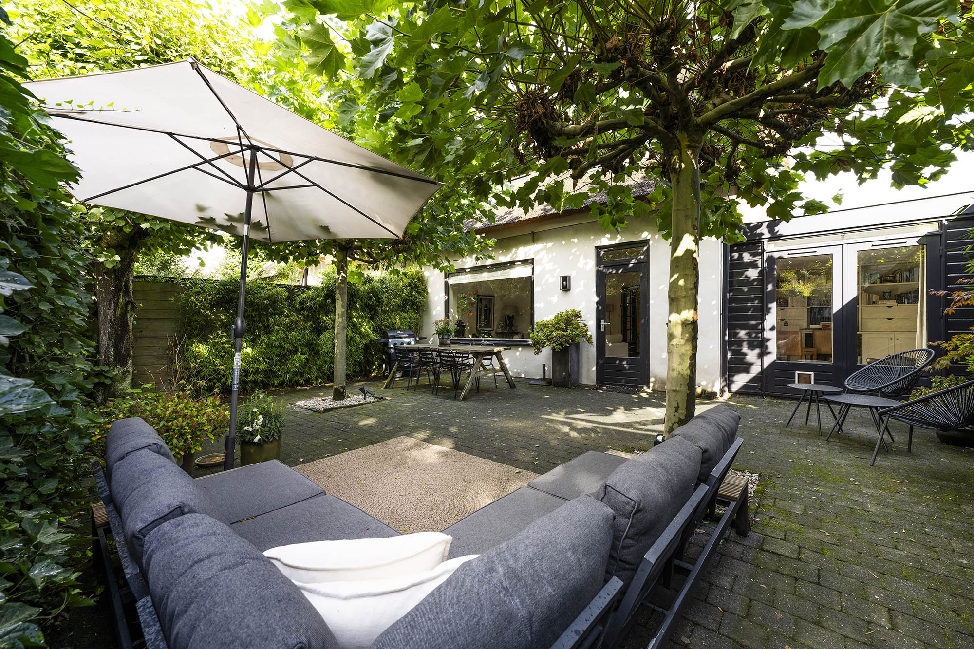 Kortom: een ruim, sfeervol, rietgedekt en verrassend huis op een unieke plek in het bruisende hart van Laren.