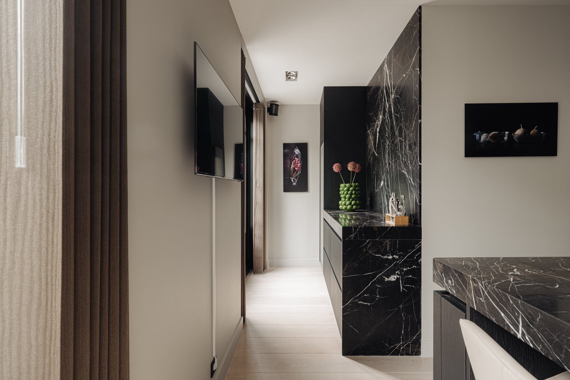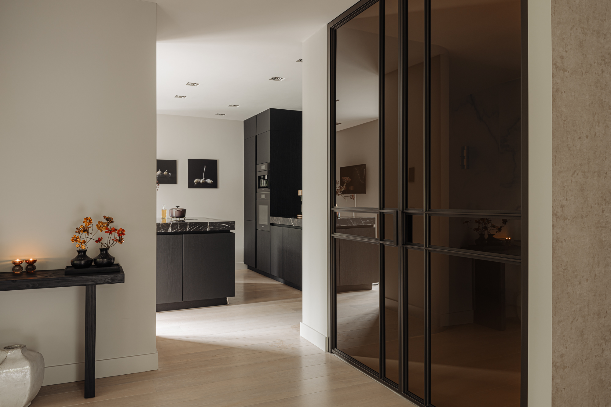 Achter de dubbele voordeur ligt een appartement van internationale allure. Hier komen excellente materiaalkeuze, uitmuntend vakmanschap en oog voor detail samen, om een unieke woonbeleving te creëren die zich het beste laat omschrijven als “suite” life. Hier komt de warmte van een thuis samen met de luxe van een vijfsterrenhotel.