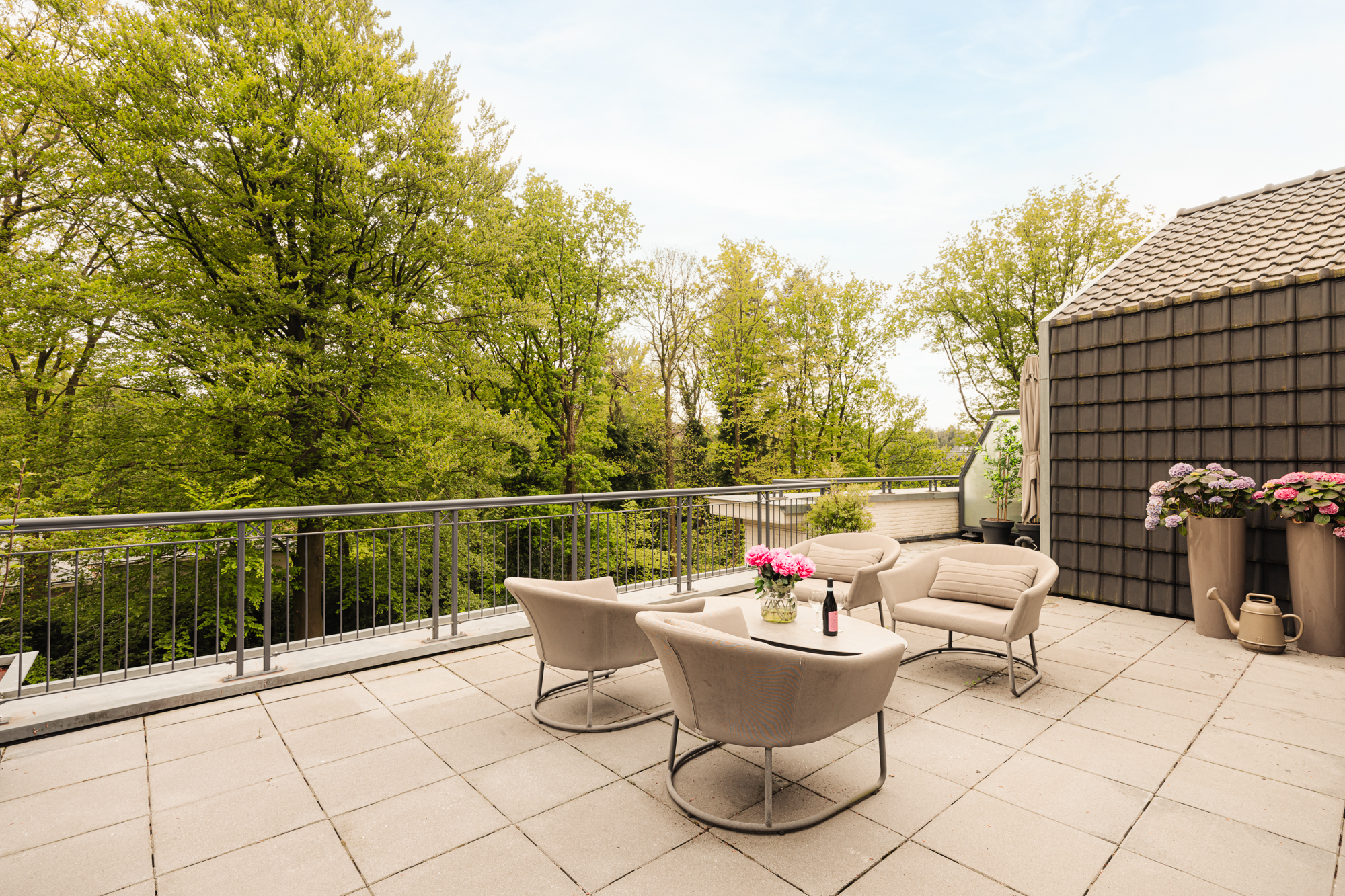Dankzij de ligging van het dakterras op het zuidwesten heeft u hier de gehele dag zon.