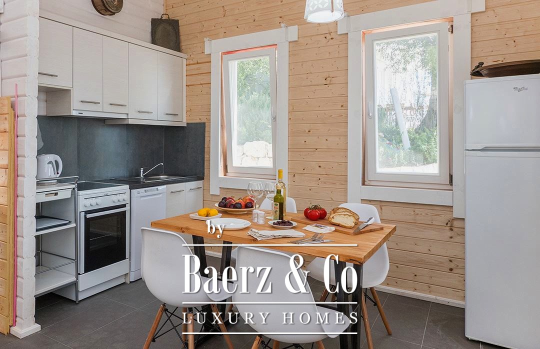 Elke woning biedt optimale privacy, zowel in de twee huizen van 60 m² met gescheiden slaapkamers als in de twee open studio’s van 40 m². Alle units beschikken over een eigen keuken, woonruimte en badkamer en openen naar privé buitenruimtes. De gedeelde faciliteiten omvatten tuinen, een zwembad en volgroeide bomen, waardoor een rustige sfeer ontstaat met weids uitzicht op de Ionische Zee.