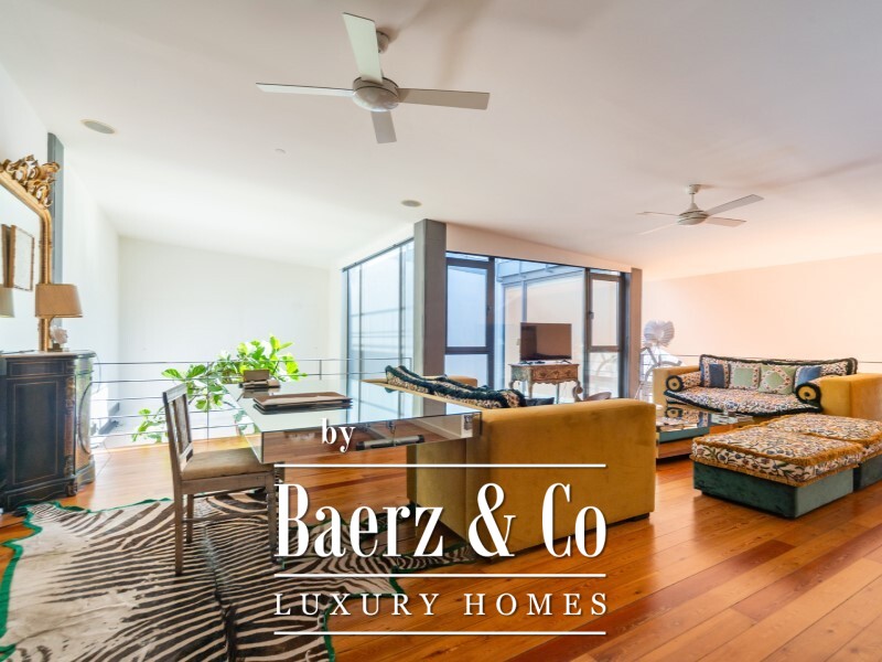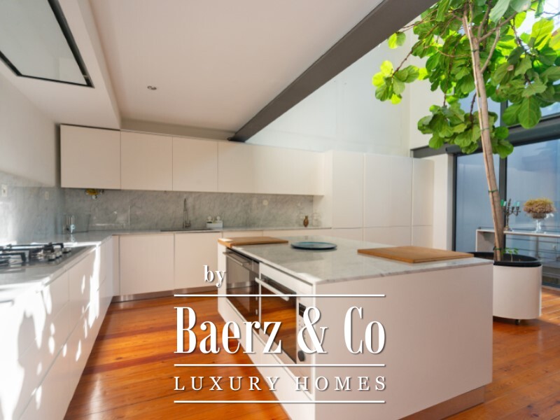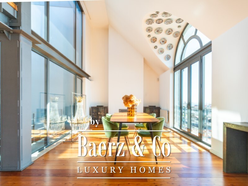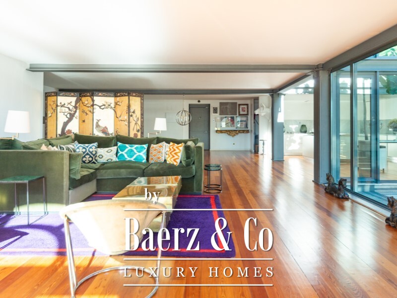 Dit duplexloft in Lissabon bevindt zich in een van de meest iconische industrieel erfgoedpanden van de stad en biedt circa 330 m² zorgvuldig ingedeelde leefruimte. De woning is ontworpen met oog voor open zichten op de rivier en weet industrieel karakter te combineren met moderniteit en comfort. Op de begane grond lopen de verschillende leefruimtes naadloos in elkaar over, gecentreerd rond een haard en twee grote ramen die direct uitzicht bieden op het water. De volledig uitgeruste keuken, gekenmerkt door een kookeiland en dubbele plafondhoogte, nodigt uit tot zowel rustige ochtenden als sfeervolle avonden, waarbij het glazen lichtschacht zorgt voor een overvloed aan daglicht.