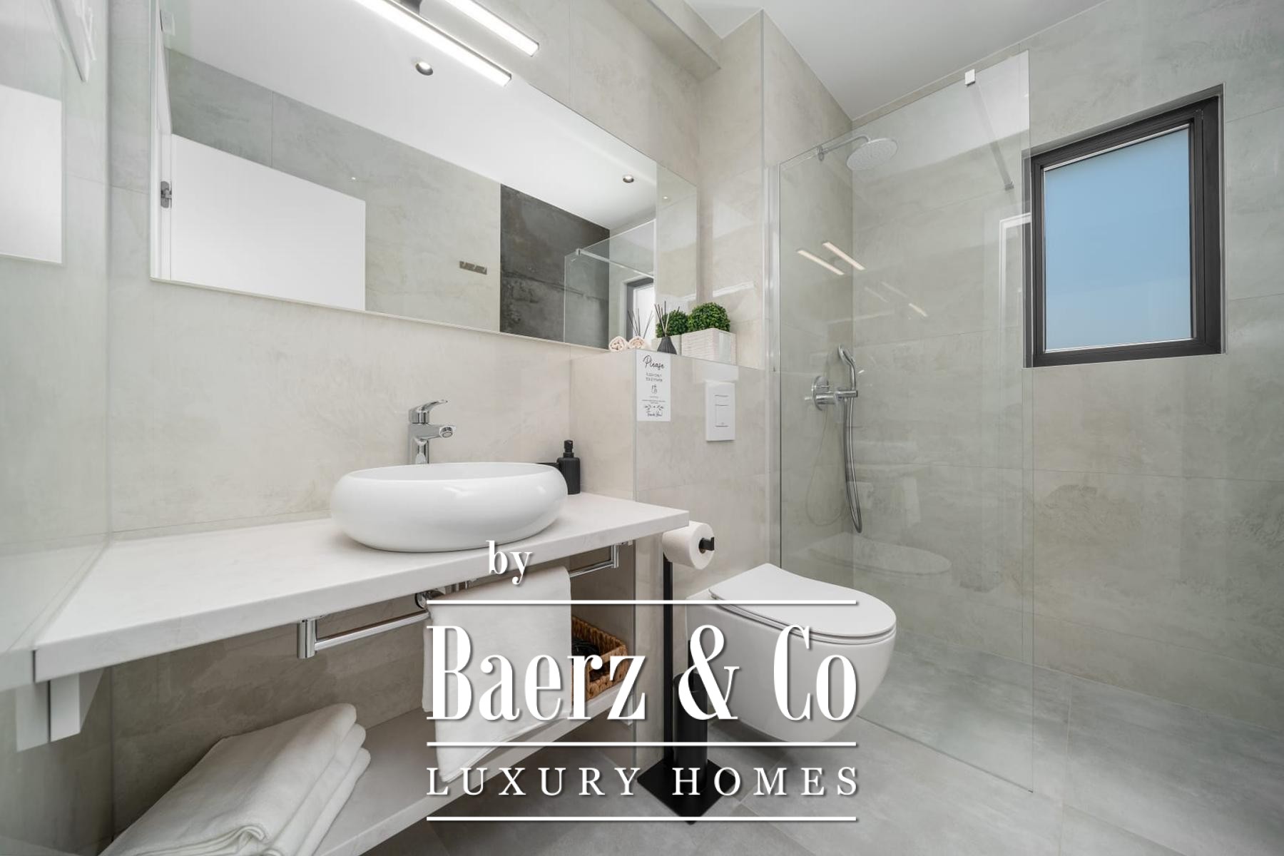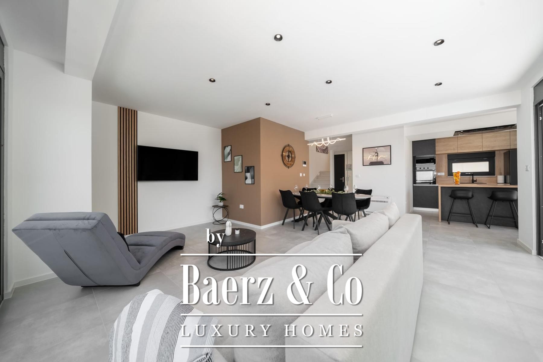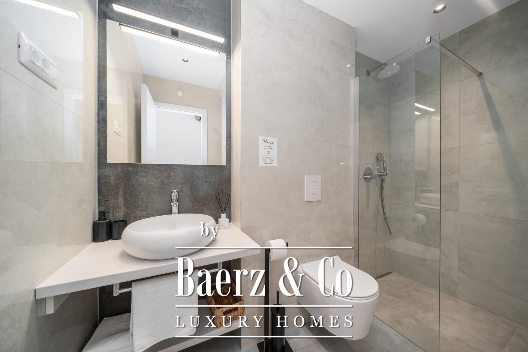 Op de begane grond opent de woonkamer naar een terras met een zwembad van 24 m², waardoor het buitenleven naar binnen wordt gehaald en het dagelijks ritme wordt omlijst door licht en uitzicht. Een aparte keuken, eetruimte en gastentoilet vervolmaken dit niveau. De kelder biedt een garage voor twee auto's, wasfaciliteiten en extra bergruimte, wat bijdraagt aan een opgeruimd, overzichtelijk levensstijl. Er is tevens een tweede leefruimte, keuken met barbecue en aanvullende functionele ruimtes beschikbaar, die indien gewenst bij de koop kunnen worden inbegrepen.