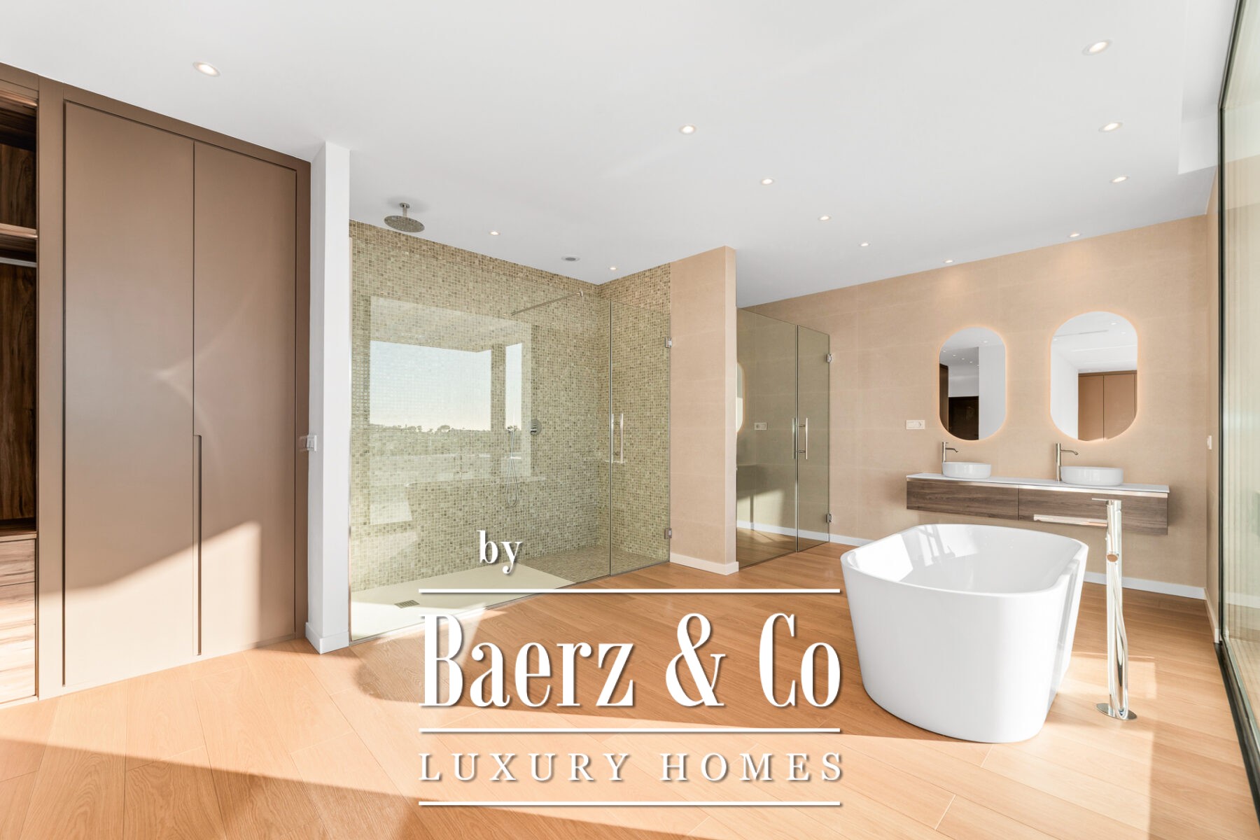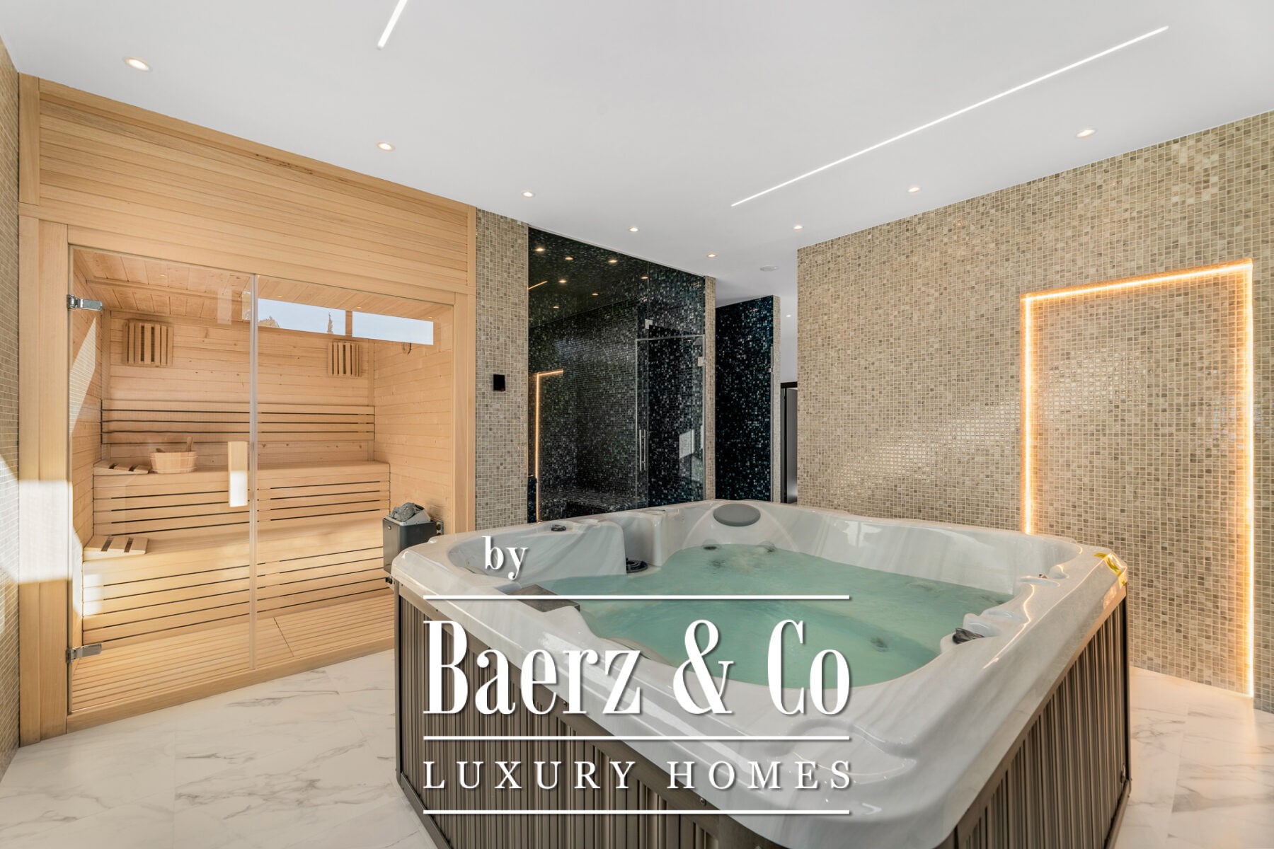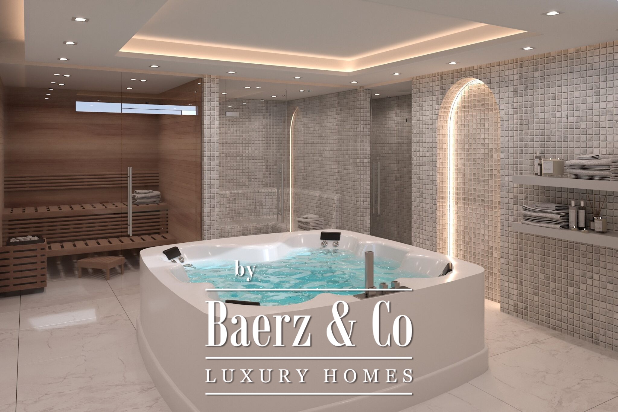 De vrijetijdsverdieping is volledig gericht op ontspanning, met een wijnkelder, spa en zowel een Finse als een Turkse sauna. Voorzieningen voor een eigen fitnessruimte en een apart personeelsappartement benadrukken de aandacht voor lifestyle-details. Buiten vloeien duurzaamheid en elegantie samen in het infinity zwembad—bekleed met natuursteen uit Indonesië—waar natuurlijke zuivering zorgt voor helderheid en balans.