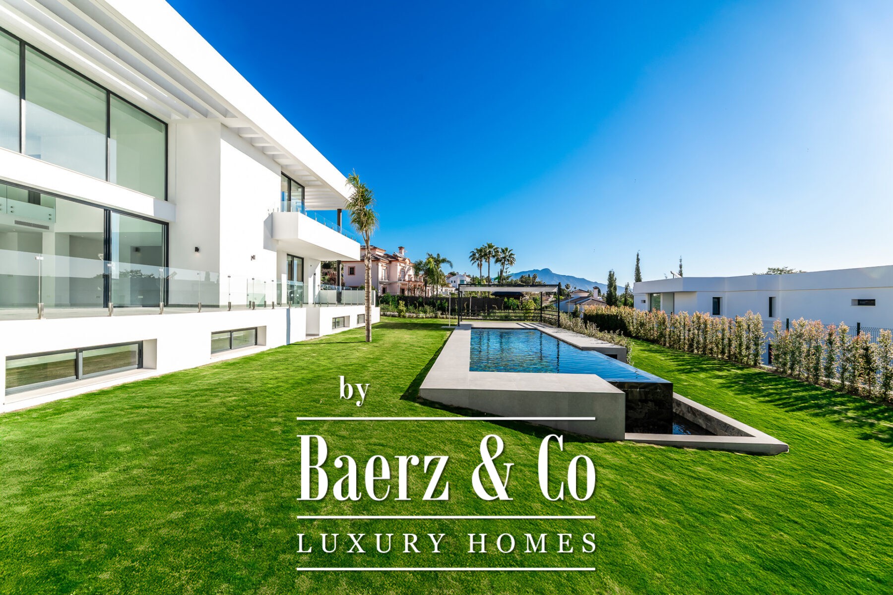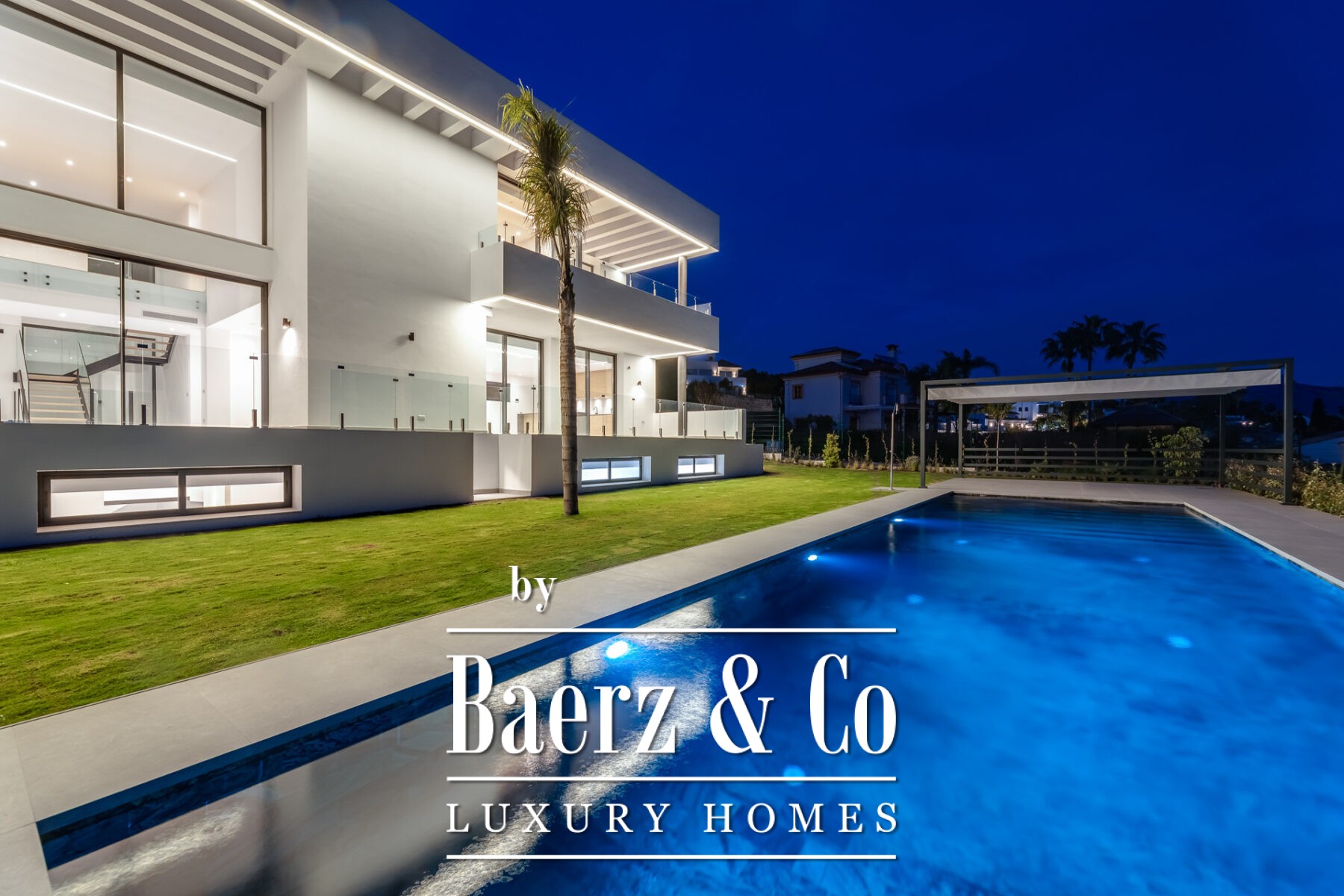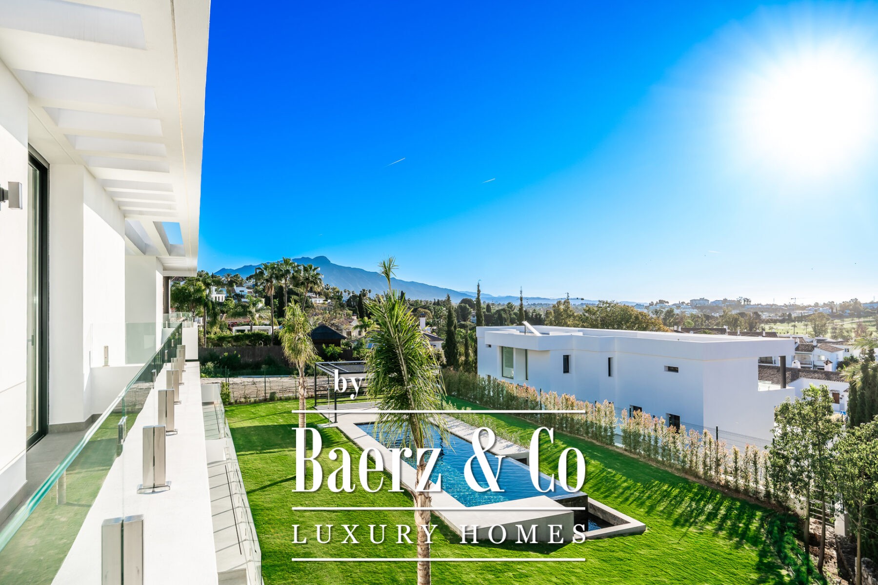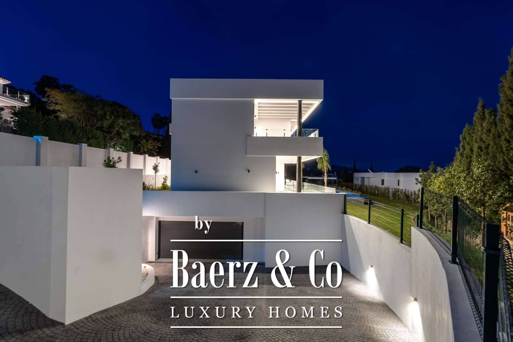 Een compleet domoticasysteem, vloerverwarming, lift en garage voor drie auto's waarborgen comfort en discretie. Energiezuinigheid, onderstreept door zonnepanelen en energielabel A, reflecteert bewuste luxe. Gelegen nabij exclusieve golfbanen, voorzieningen, Puerto Banús en internationale scholen, belichaamt deze villa een uitgebalanceerde levensstijl—luxe villa te koop in Marbella—waar kwaliteit, privacy en design discreet samenkomen.