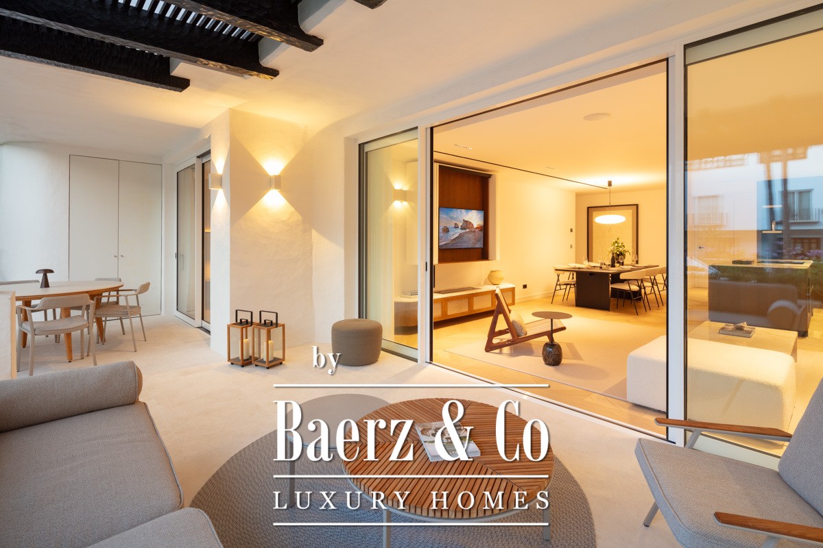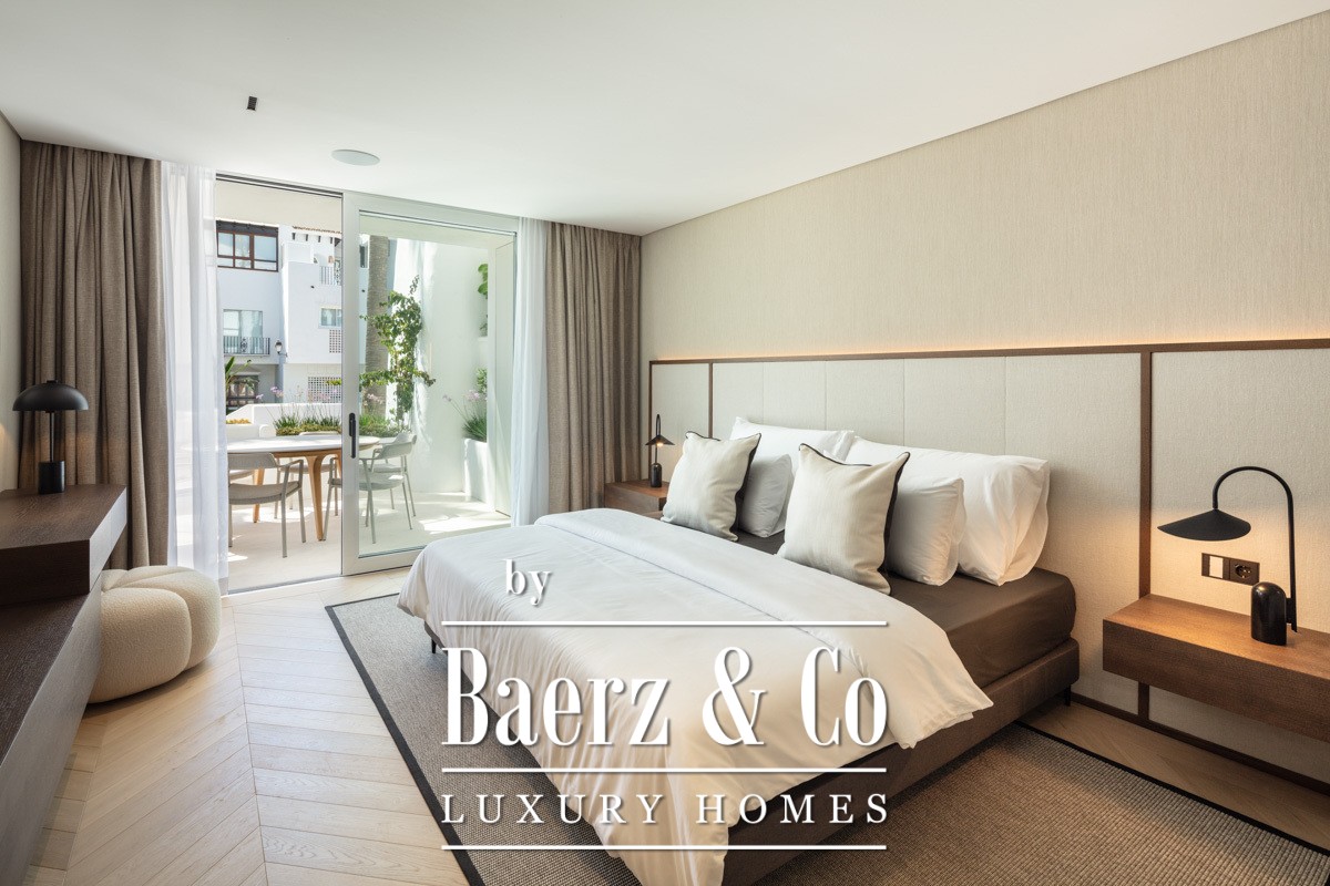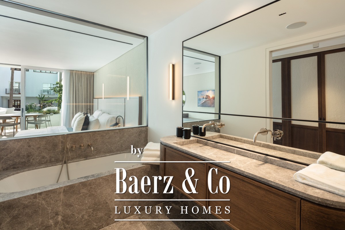 Het appartement Marbella Golden Mile ligt in het Puente Romano Resort, waar licht en zeelucht een sfeer van ingetogen verfijning creëren. Dit appartement van 138 m² biedt een open, licht woonconcept, met kamerhoge glazen deuren die terras, gemeenschappelijke tuinen en het kustzicht naadloos binnenlaten. De combinatie van neutrale tinten en natuurlijke houten vloeren weerspiegelt het omliggende mediterrane landschap en brengt rust in zowel de leefruimtes als de slaapvertrekken.