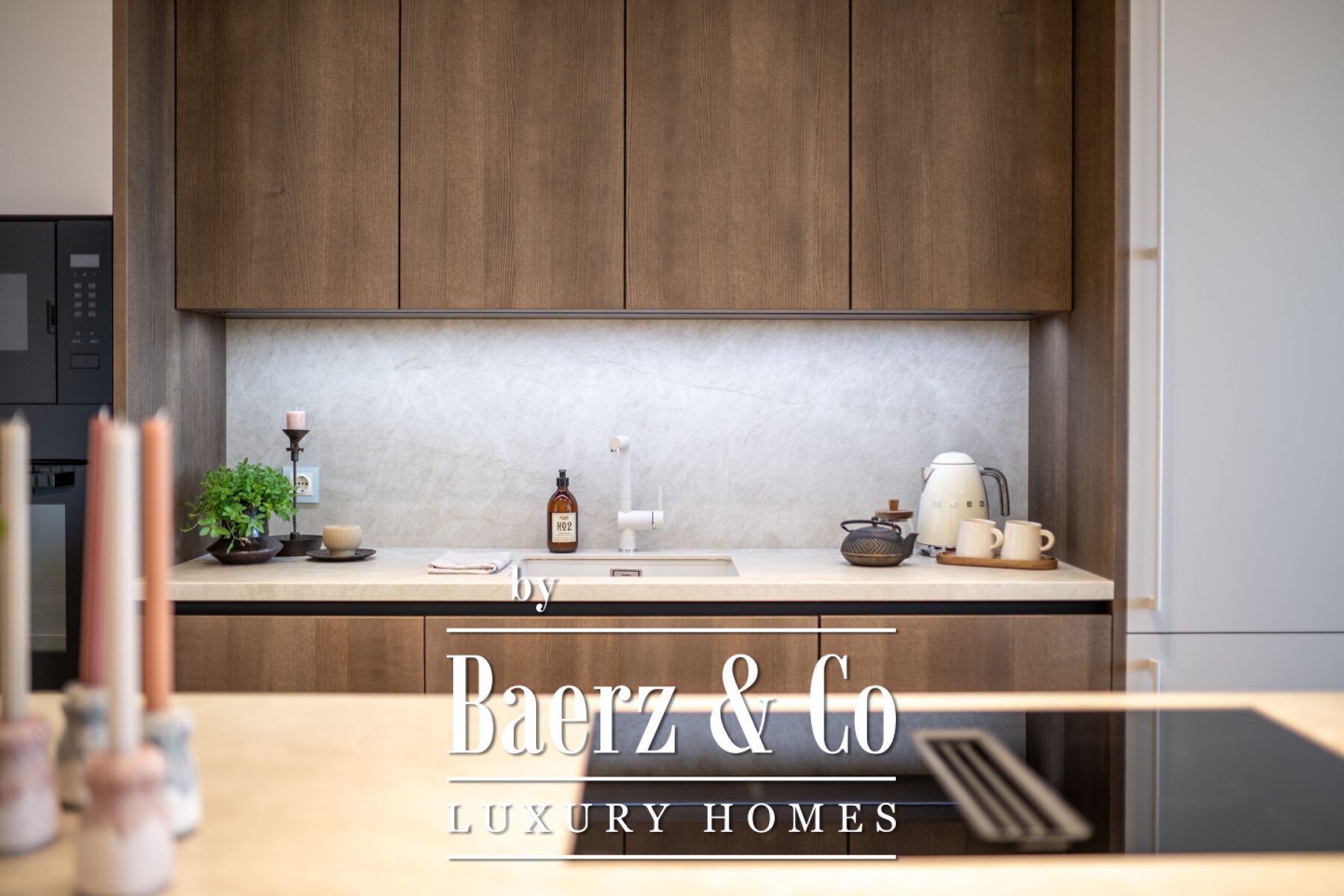 Binnen ontvouwt zich 124 m² aan woonruimte met helderheid en visie. Een naadloze open indeling leidt naar een moderne keuken, waar hoogwaardige apparatuur en royale werkbladen zowel het dagelijkse ritueel als feestelijke momenten ondersteunen. Drie slaapkamers bieden elk hun eigen privacy, waarbij de master suite als privéoase is opgezet met panoramisch uitzicht en een voortreffelijke badkamer. Twee verfijnde badkamers combineren functionaliteit met rust.