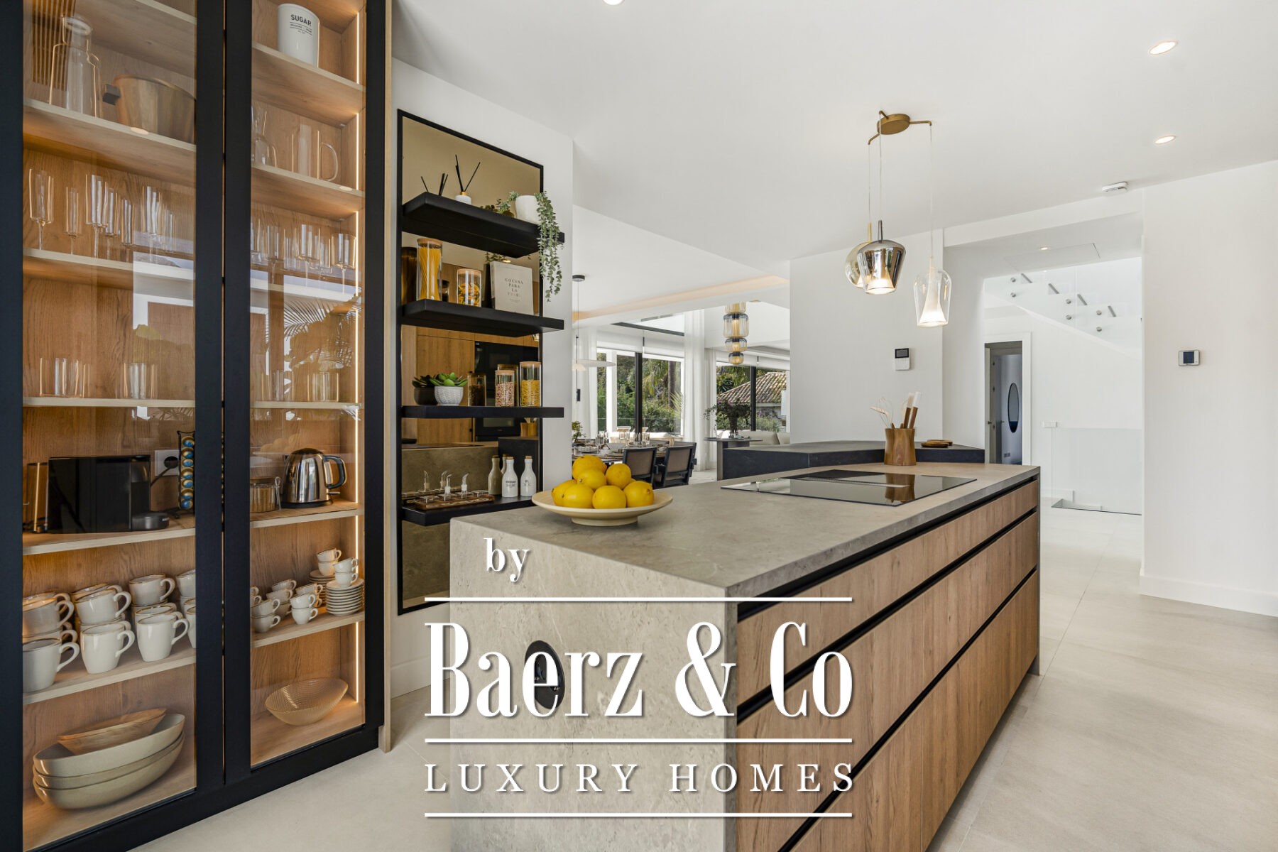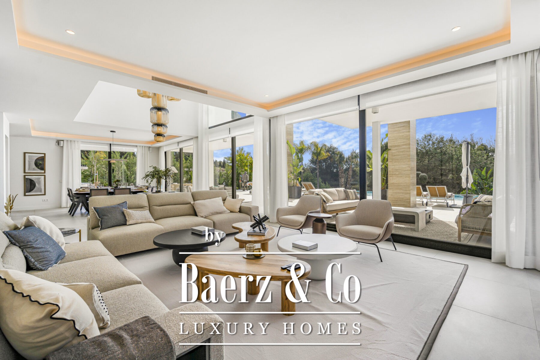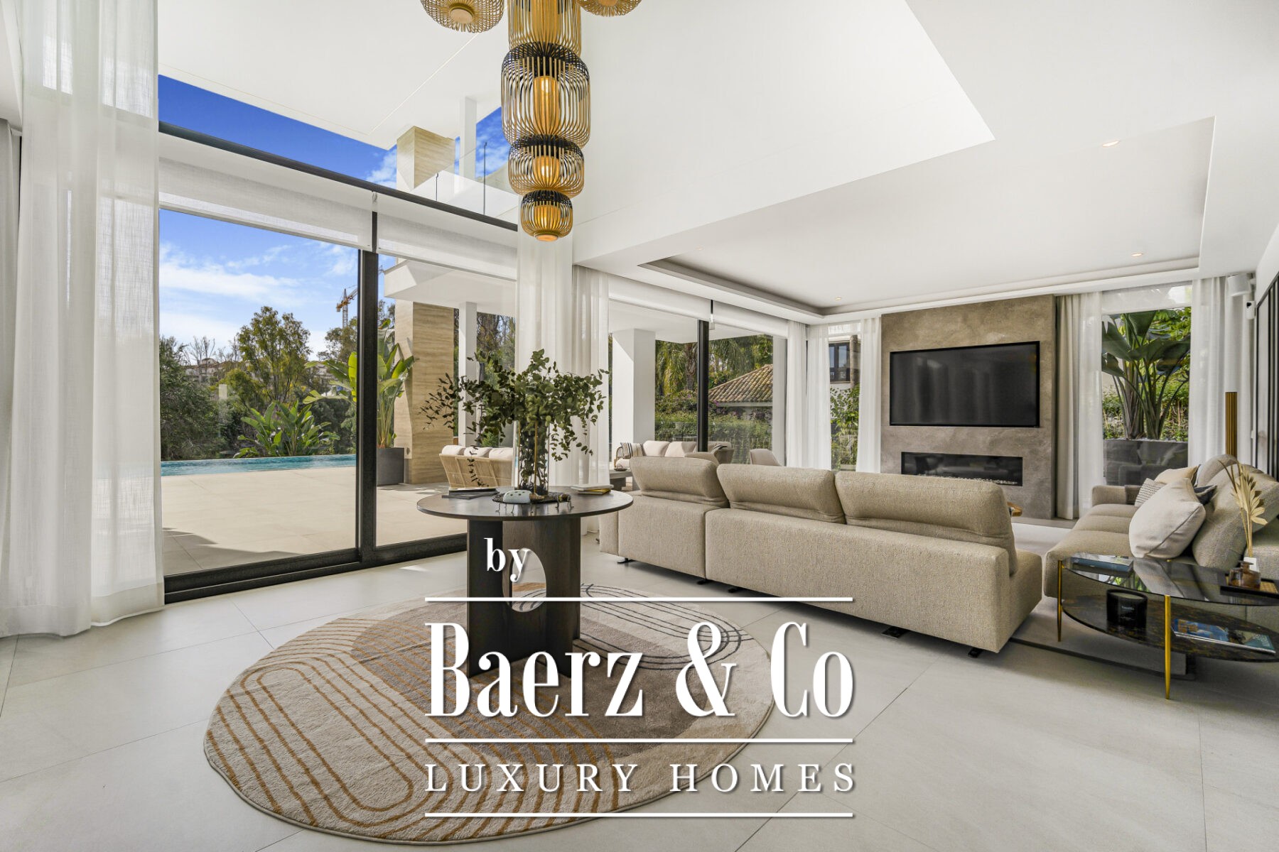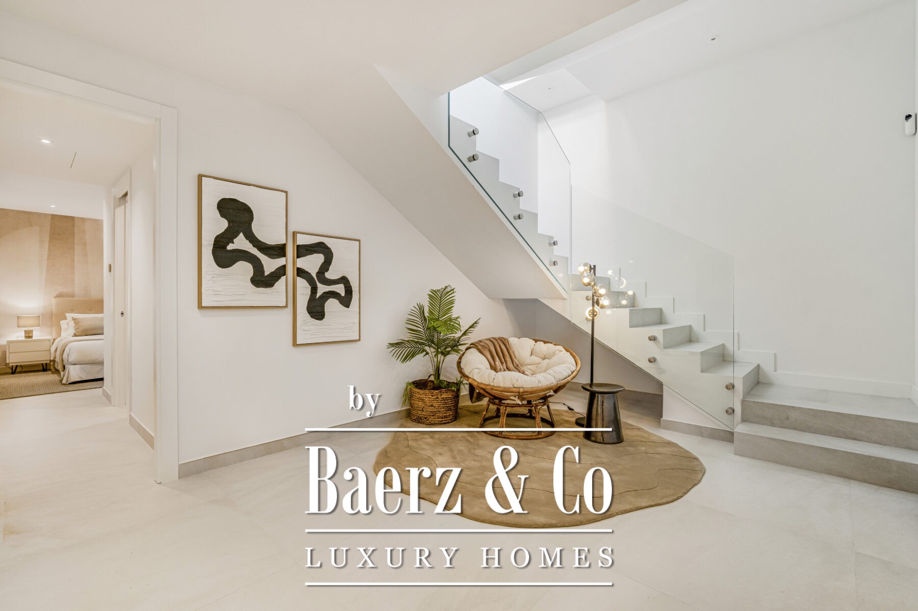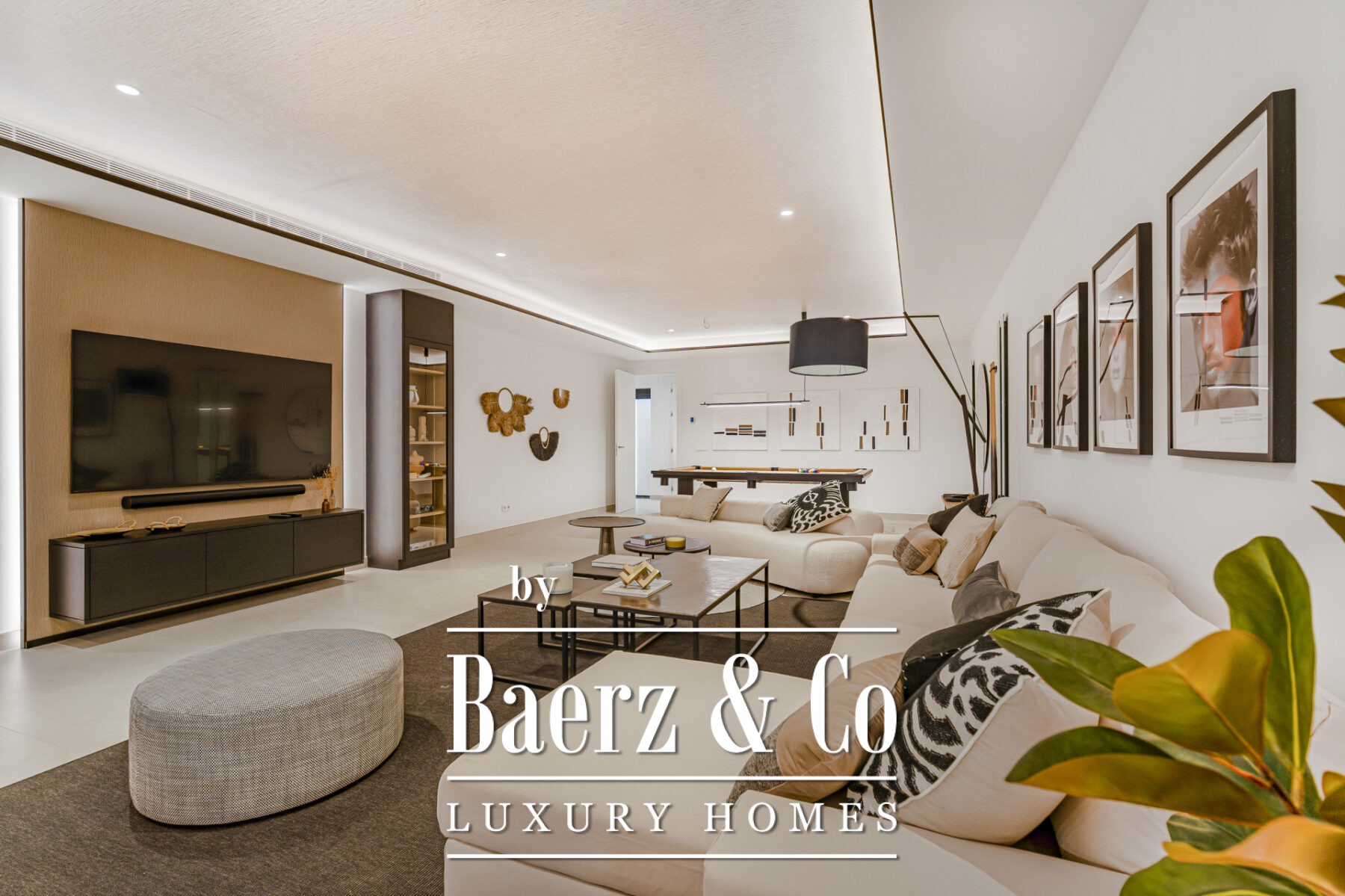 Villa Marbella Golden Mile bevindt zich in een exclusief afgesloten villapark direct boven Puente Romano, waar het ritme van de zee samenkomt met verfijnd wonen. Deze villa met zes slaapkamers op de Marbella Golden Mile biedt 903 m² aan lichtovergoten interieurs, ontworpen voor zowel elegantie als comfort, op loopafstand van het strand en met directe toegang tot Puerto Banús en het centrum van Marbella.