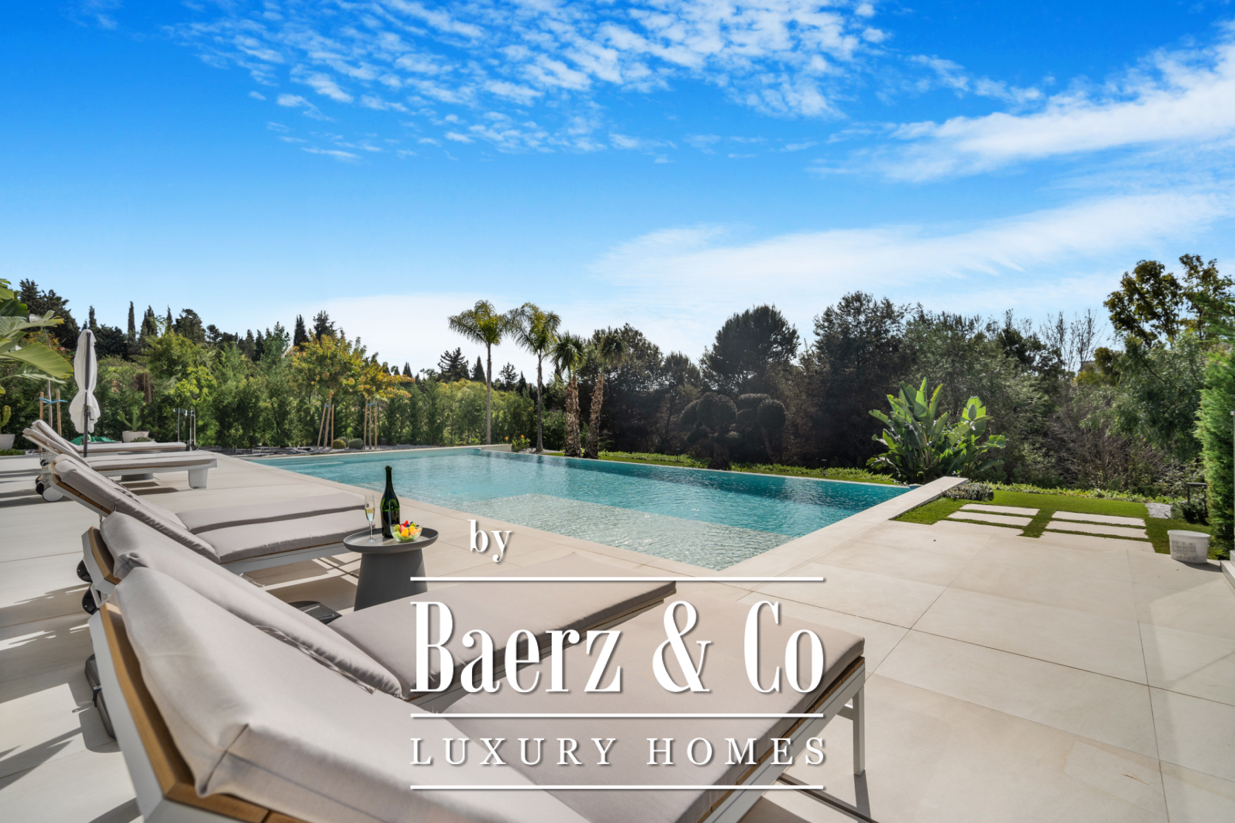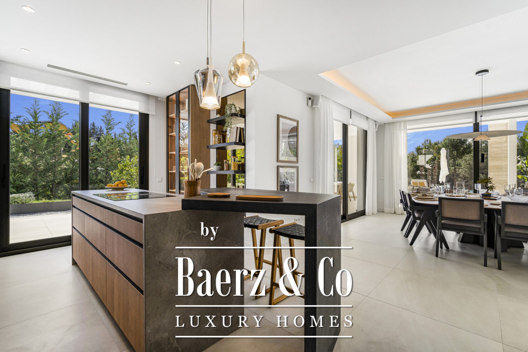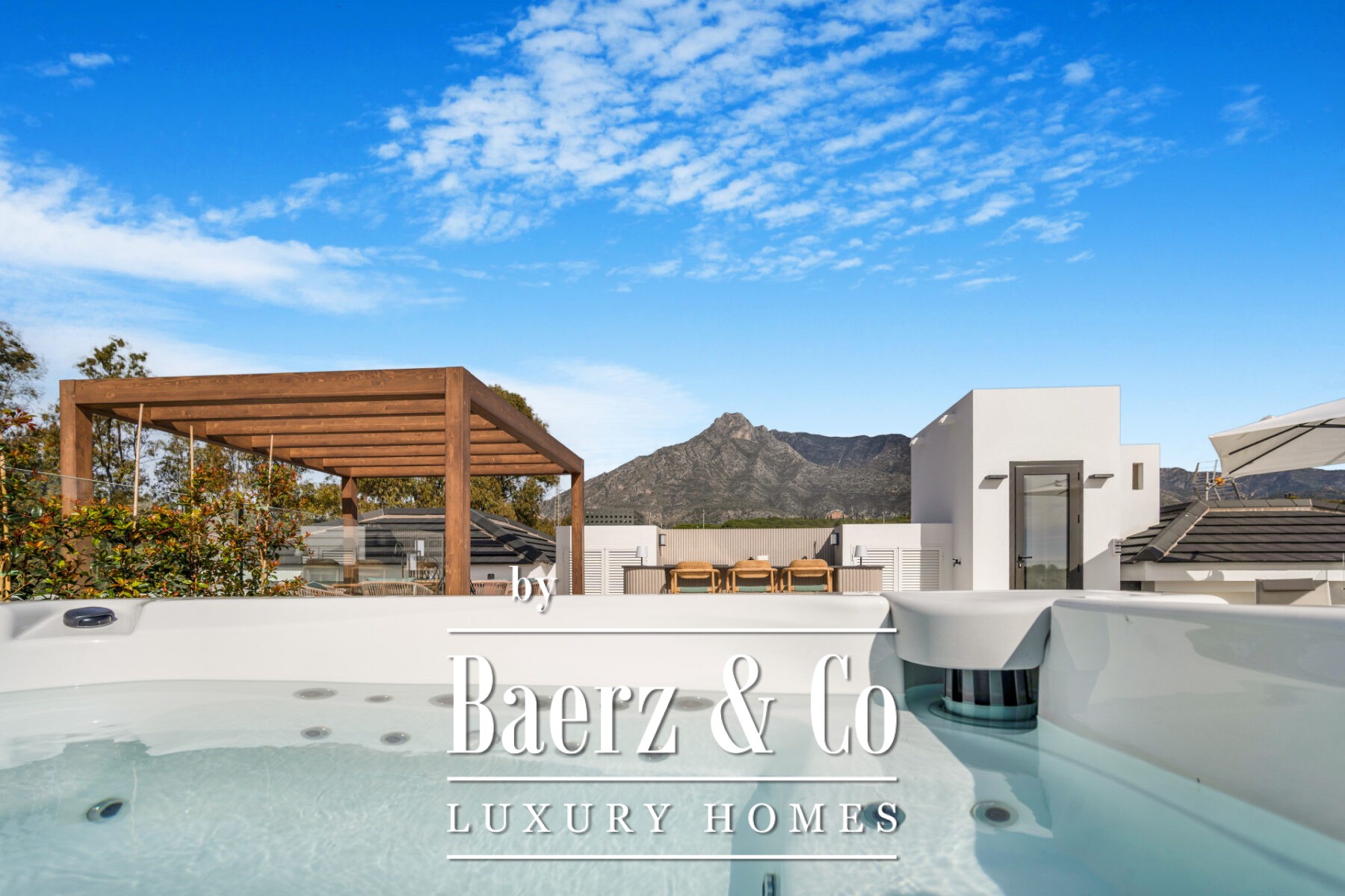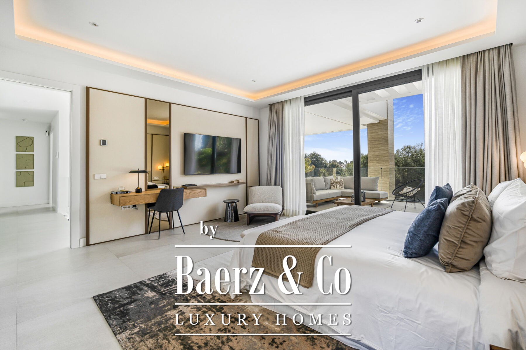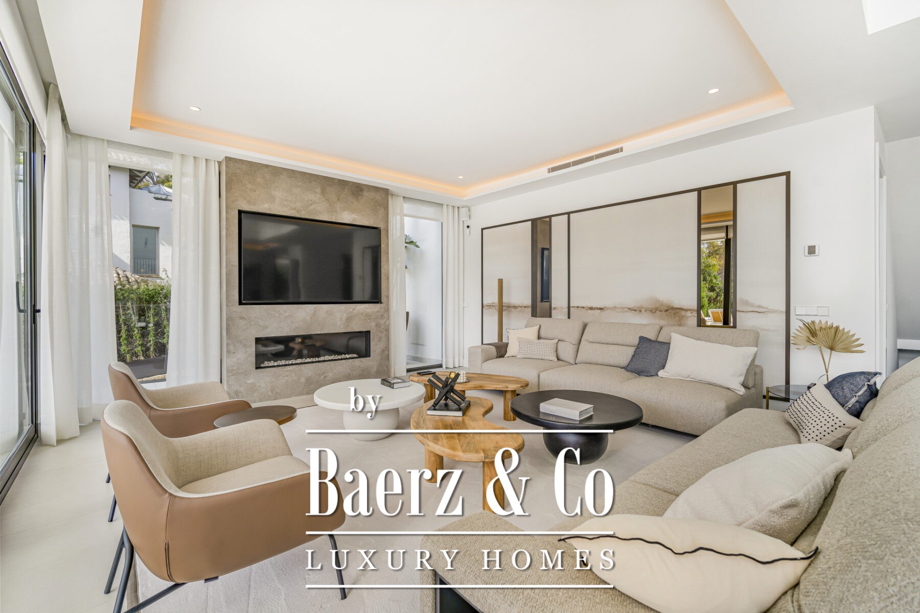Villa Marbella Golden Mile bevindt zich in een exclusief afgesloten villapark direct boven Puente Romano, waar het ritme van de zee samenkomt met verfijnd wonen. Deze villa met zes slaapkamers op de Marbella Golden Mile biedt 903 m² aan lichtovergoten interieurs, ontworpen voor zowel elegantie als comfort, op loopafstand van het strand en met directe toegang tot Puerto Banús en het centrum van Marbella.