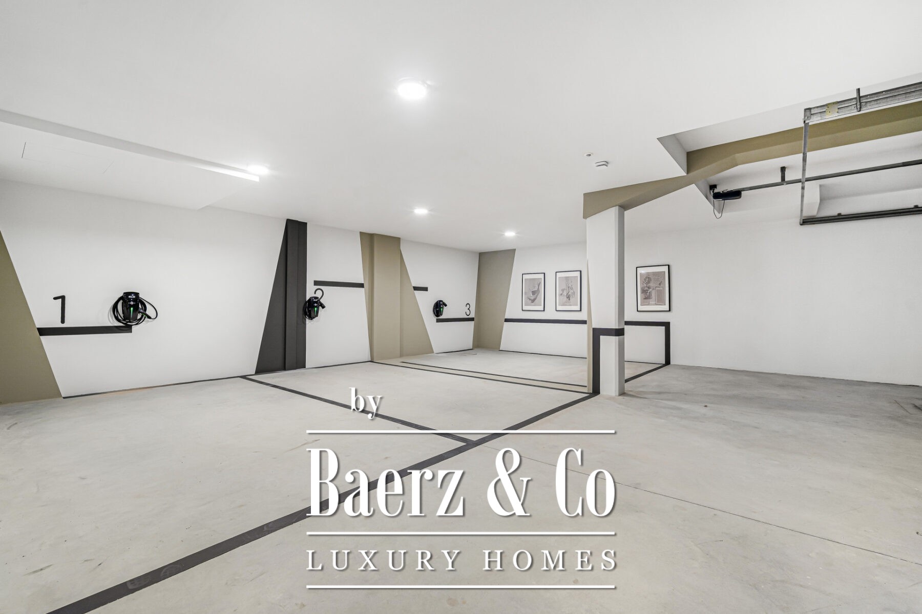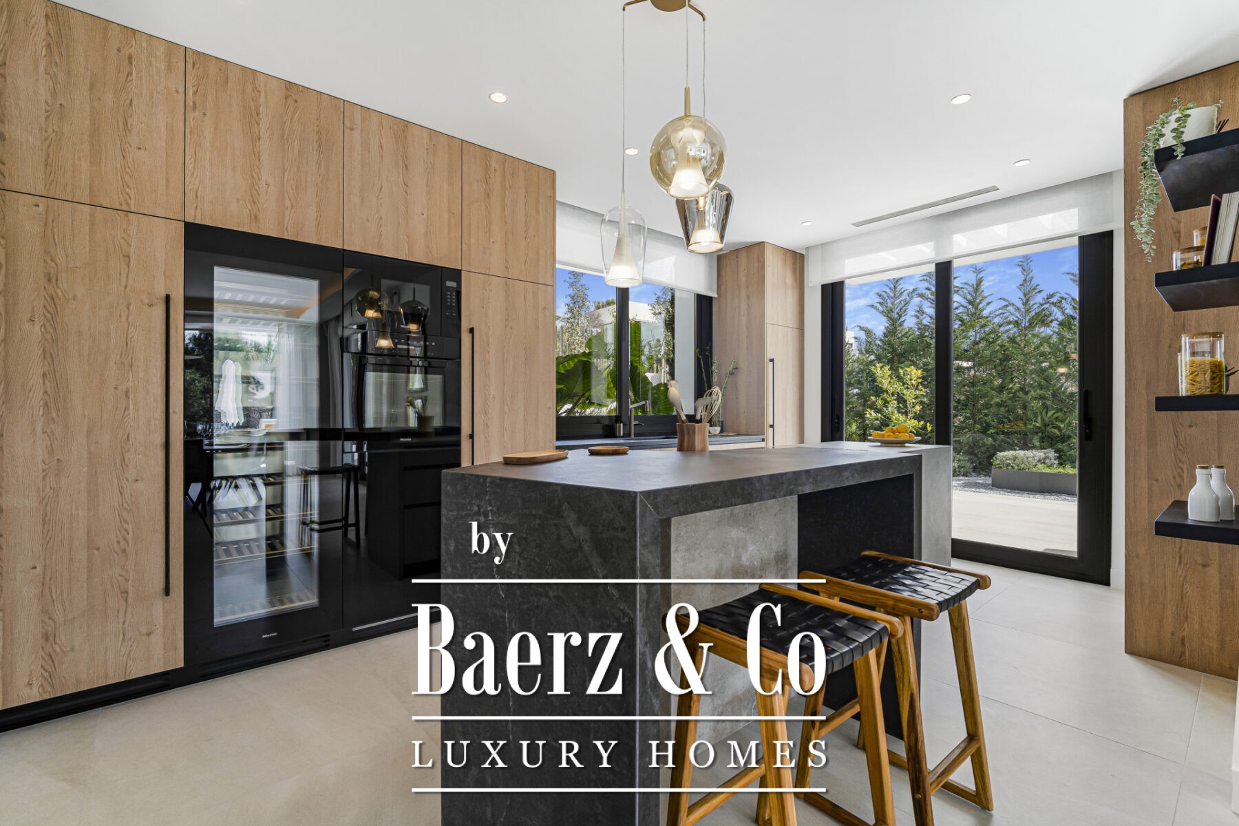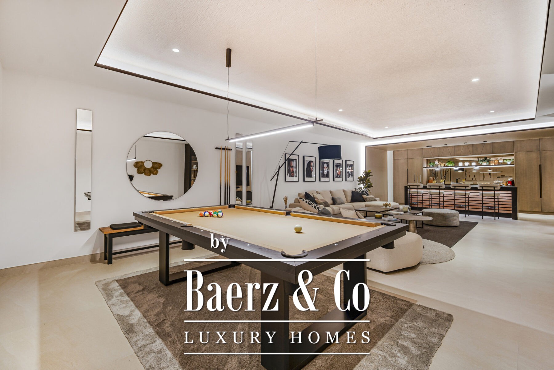 De woonervaring stroomt moeiteloos tussen open leef- en eetruimtes, geankerd door een keuken van topniveau en grenzend aan de aangelegde tuin met verwarmd zwembad. Zowel privé- als gastensuites zijn op alle verdiepingen aanwezig, inclusief een mastersuite met inloopkast, terras en toegang tot een solarium met panoramisch zeezicht, jacuzzi en buitenkeuken. Voor ontspanning en vermaak is er een speelkamer, biljarttafel, lounge en bar op het lagere niveau, aangevuld met twee gastensuites en een garage voor drie auto's met elektrische laadpunten.