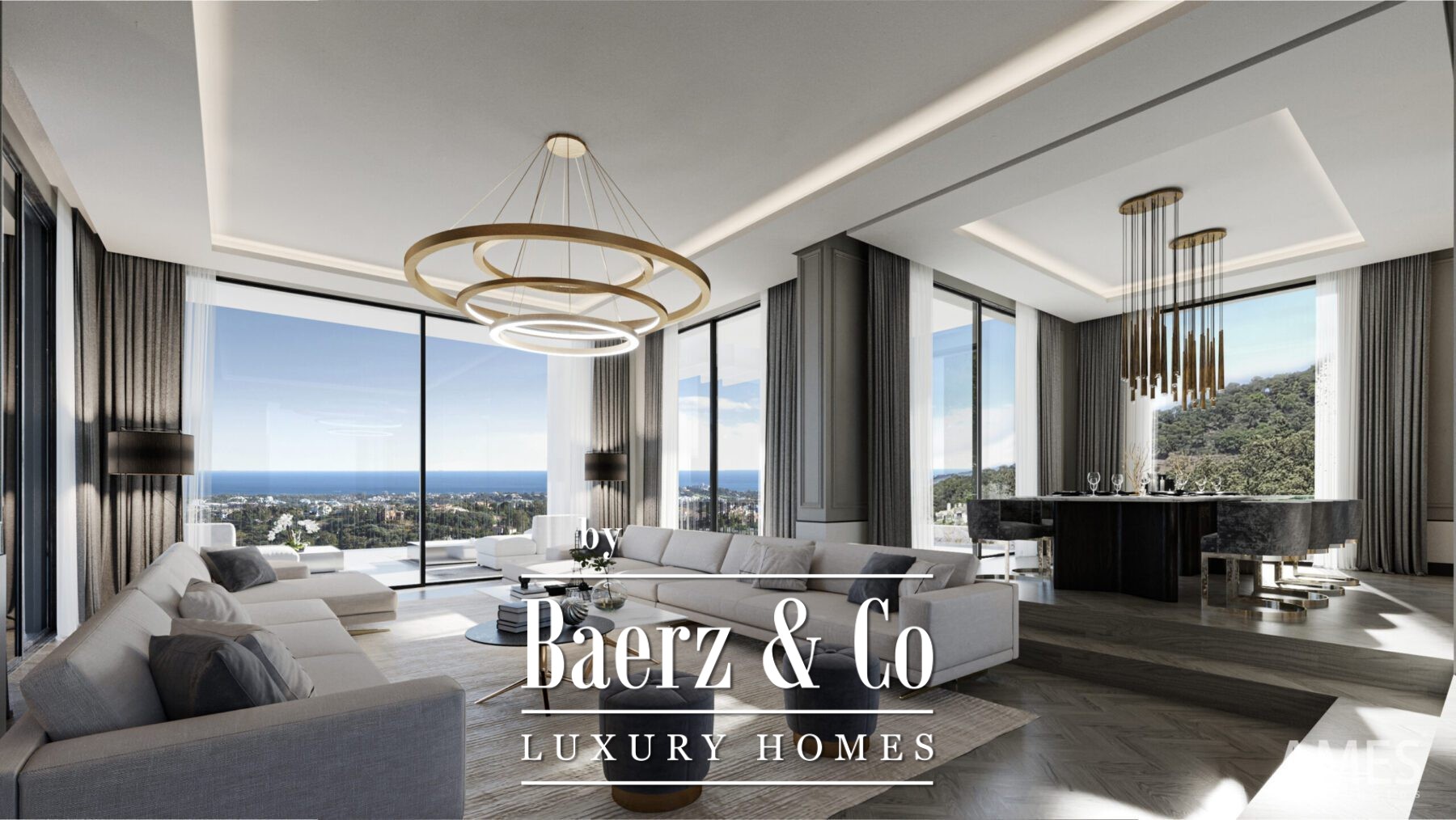 Binnen completeren elegante leefruimtes de overvloed aan daglicht en rust, omlijst door grote raampartijen die een panoramisch uitzicht bieden. Elk detail, van de vloeren tot de hoge plafonds en luxe afwerkingen, getuigt van een zorgvuldige keuze. Comfort wordt gewaarborgd door geavanceerde airconditioning, vloerverwarming, smart home-automatisering en veiligheidsvoorzieningen voor maximale discretie.