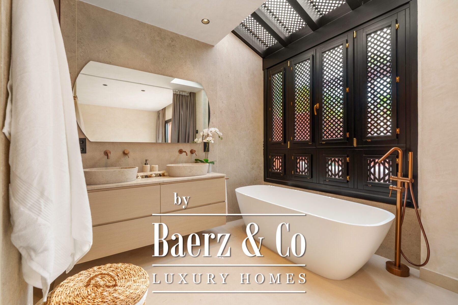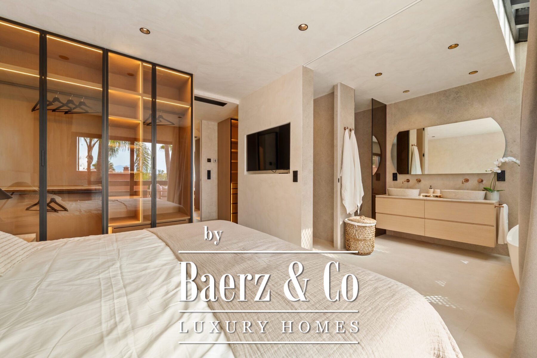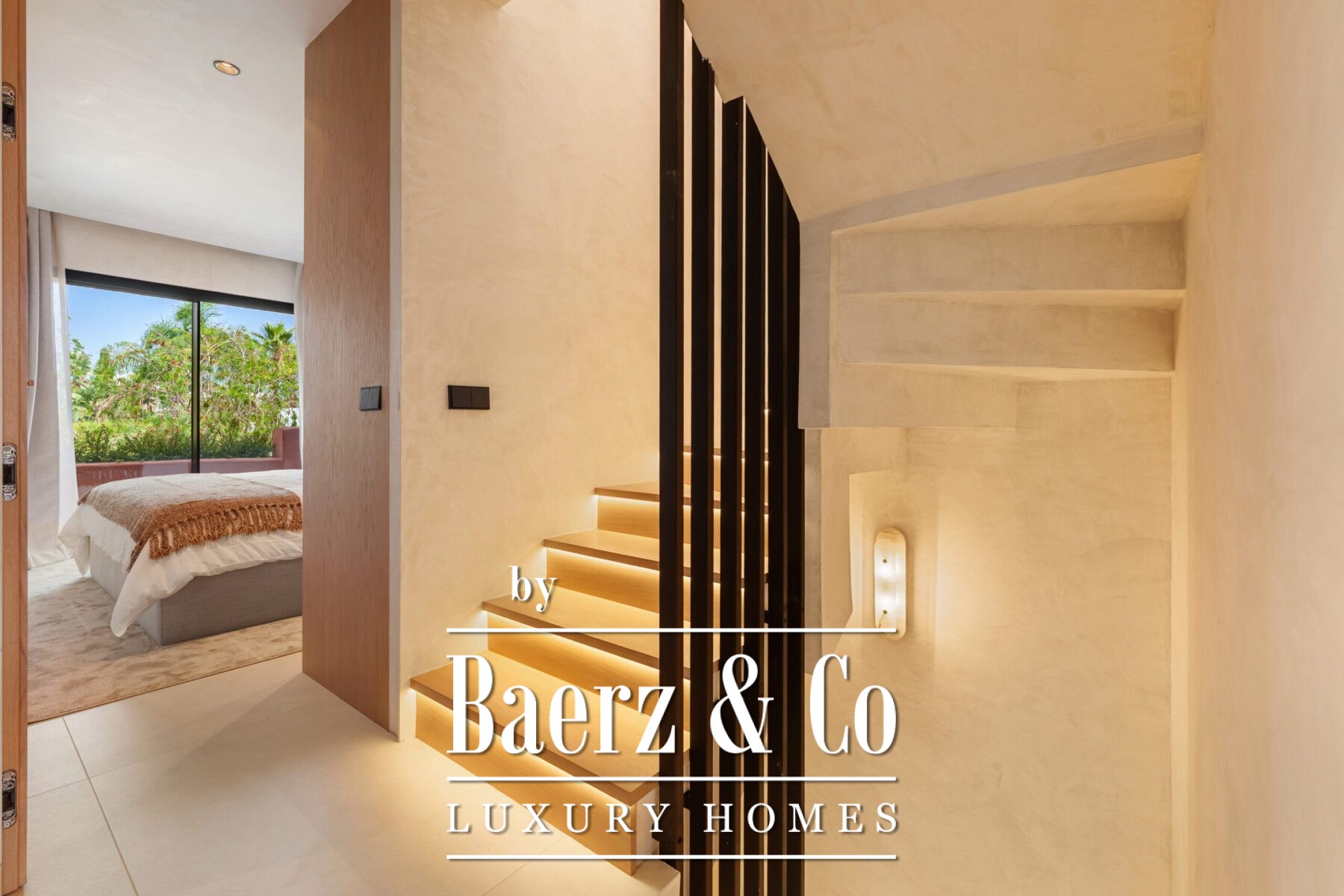 Gelegen binnen een afgesloten en beveiligd domein, biedt de villa zowel privacy als directe toegang tot een gemeenschappelijk zwembad. Het adres plaatst u op slechts enkele minuten van het strand, gerenommeerde clubs, golfbanen en de karakteristieke lifestyle van Marbella. Voor wie op zoek is naar een luxe villa te koop aan de Marbella Golden Mile, is dit een woonhuis dat een duurzame investering en moeiteloos wonen garandeert.
