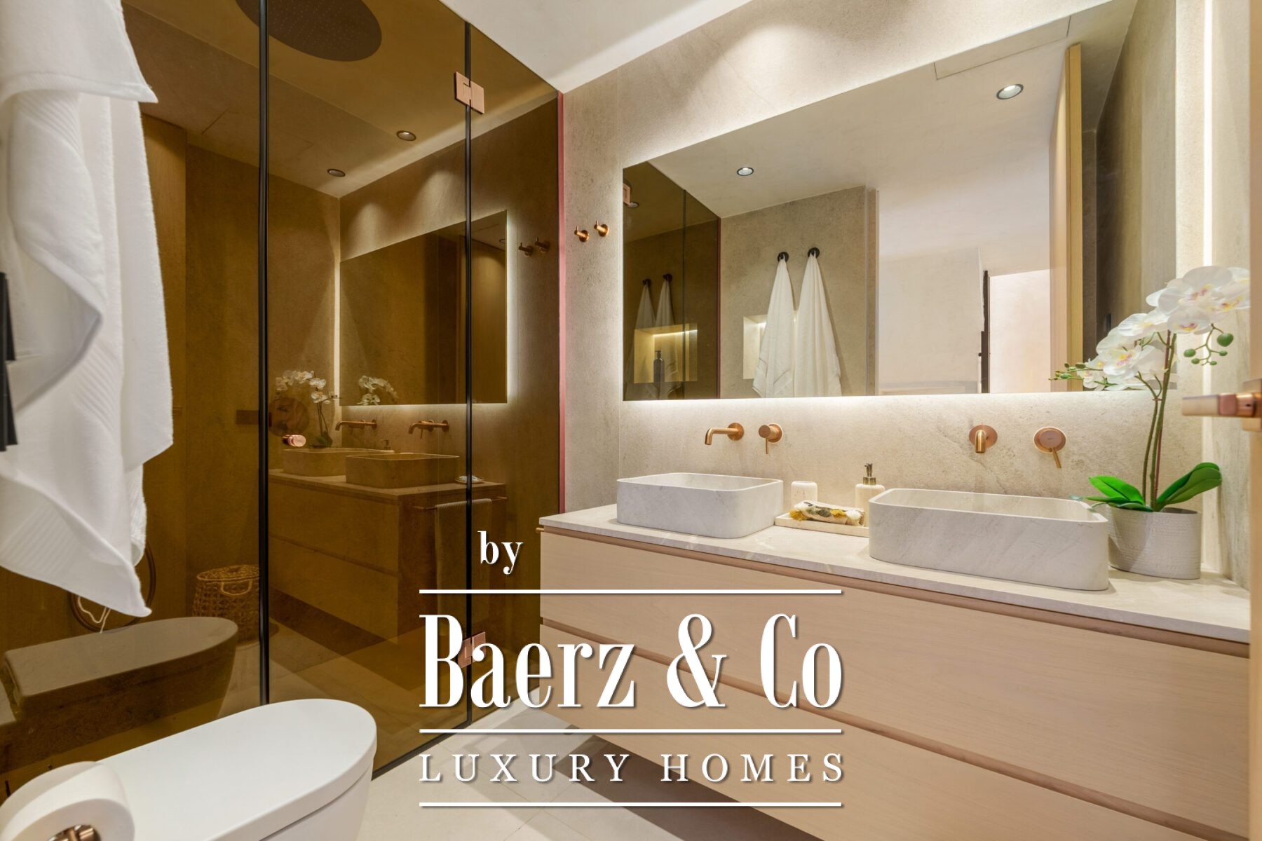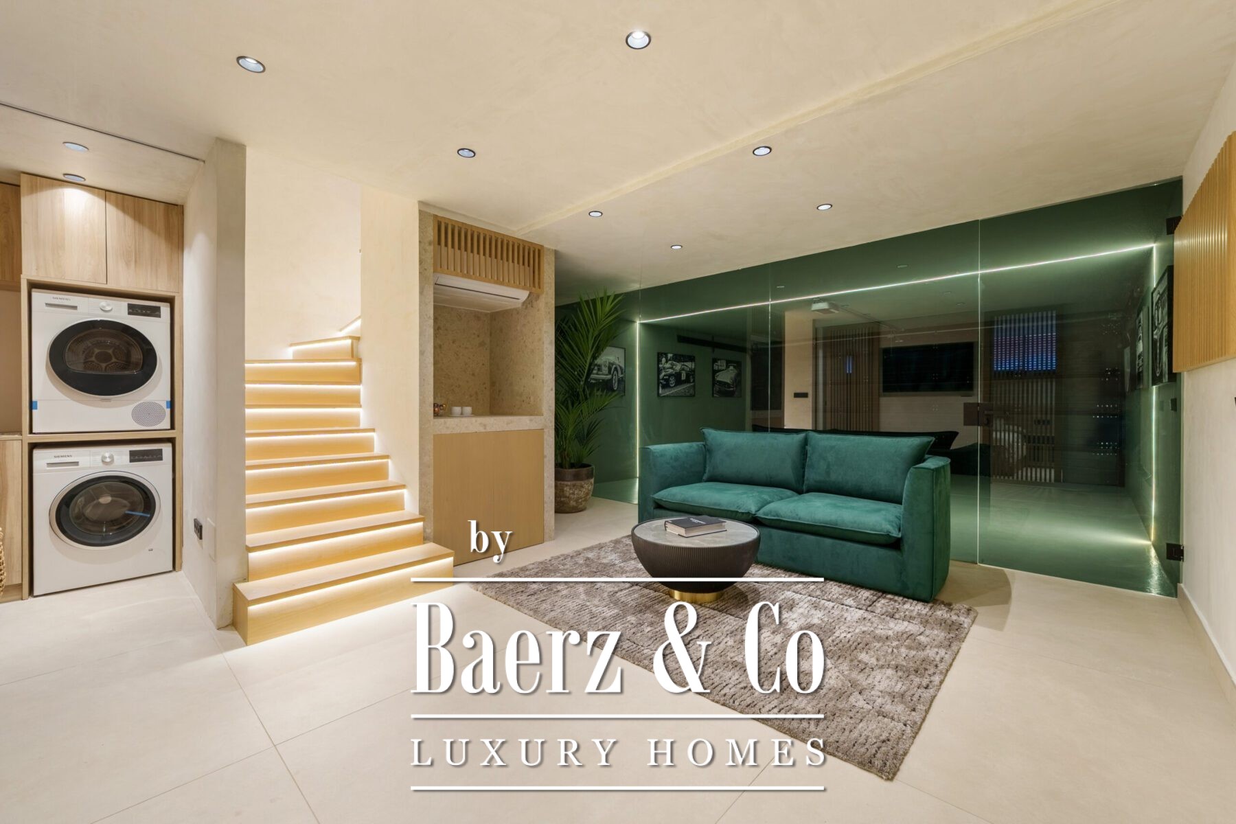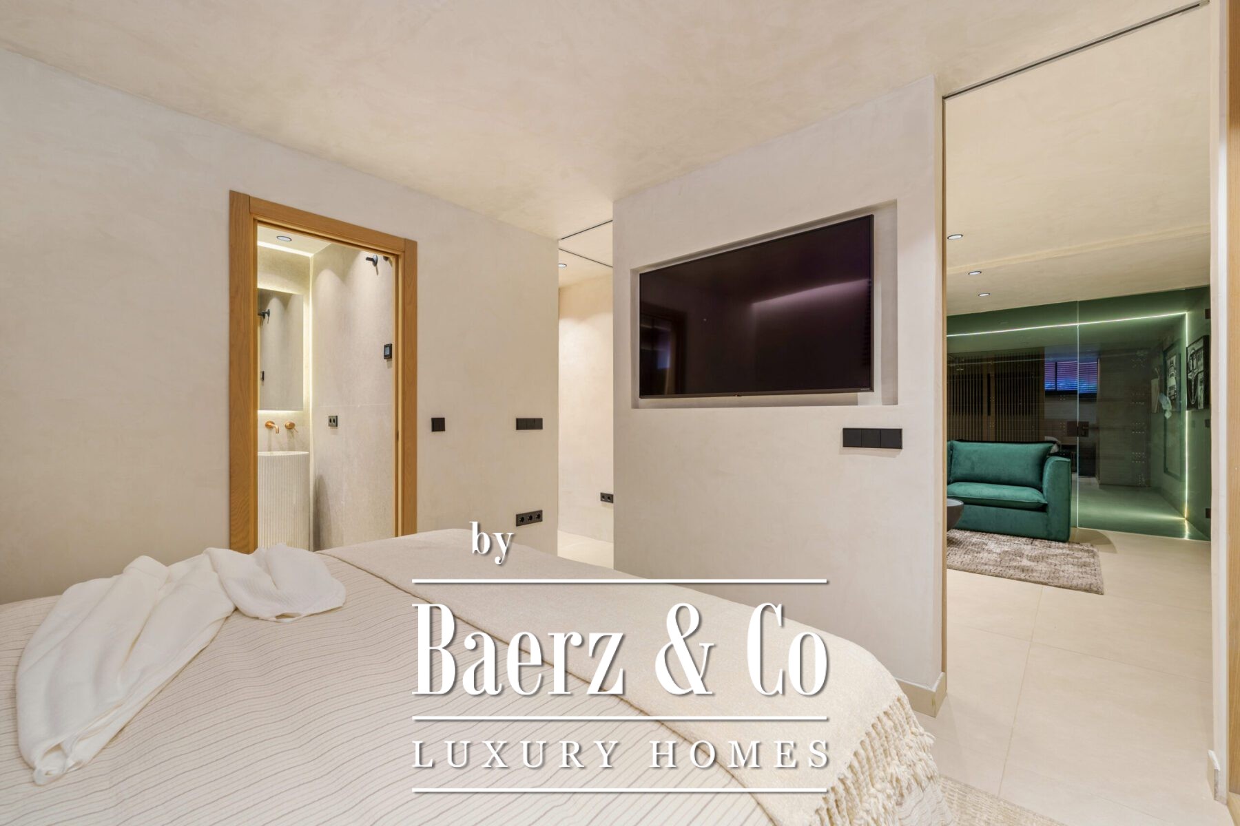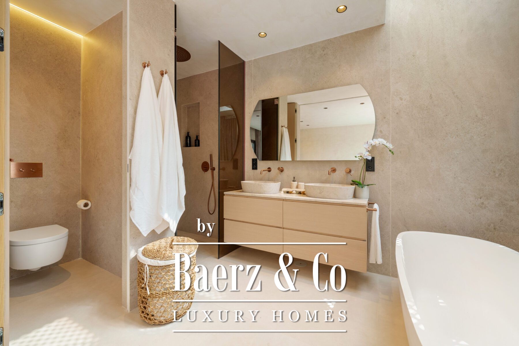 De bovenverdiepingen bieden ruime slaapkamers, waaronder een master suite met inloopkast en een en-suite badkamer die tot in detail is afgewerkt. Diverse terrassen verspreid over verschillende niveaus bieden keuzes voor rustige ochtenden of levendige avonden, met als absoluut hoogtepunt het dakterras, uitgerust met een ingebouwde BBQ, jacuzzi en panoramisch uitzicht over de berg- en tuinenlandschappen. Een eigen garage, 24-uurs beveiliging en hoogwaardige voorzieningen zoals airconditioning en vloerverwarming onderstrepen de toewijding aan comfort en gemak.
