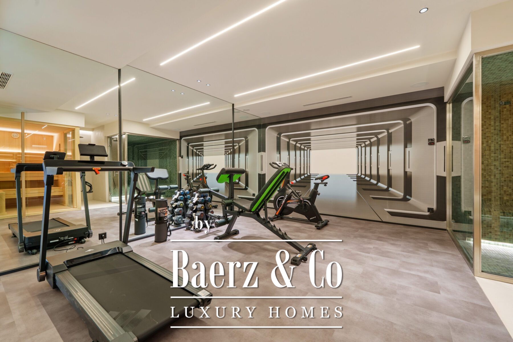 Vijf serene slaapkamers bieden direct toegang tot het terras en zijn ieder voorzien van een en-suite badkamer met marmeren afwerking, zwevende wastafels en vrijstaande baden. De mastersuite onderscheidt zich door zijn royale omvang en een zonnig privéterras, perfect als rustige schuilplaats. Op de benedenverdieping bevindt zich een volledig uitgeruste fitnessruimte, glazen sauna en stoombad voor een persoonlijke wellnessbeleving. Een beveiligde garage, luxe entree en uitzicht op de bergen geven verdere verfijning aan dit perceel van 612 m², waarmee het moderne comfort zich op steenworp afstand bevindt van Marbella’s golfbanen, stranden en lokale voorzieningen. Deze luxe villa te koop in Marbella vertegenwoordigt een verheven benadering van eigentijds mediterraan wonen.