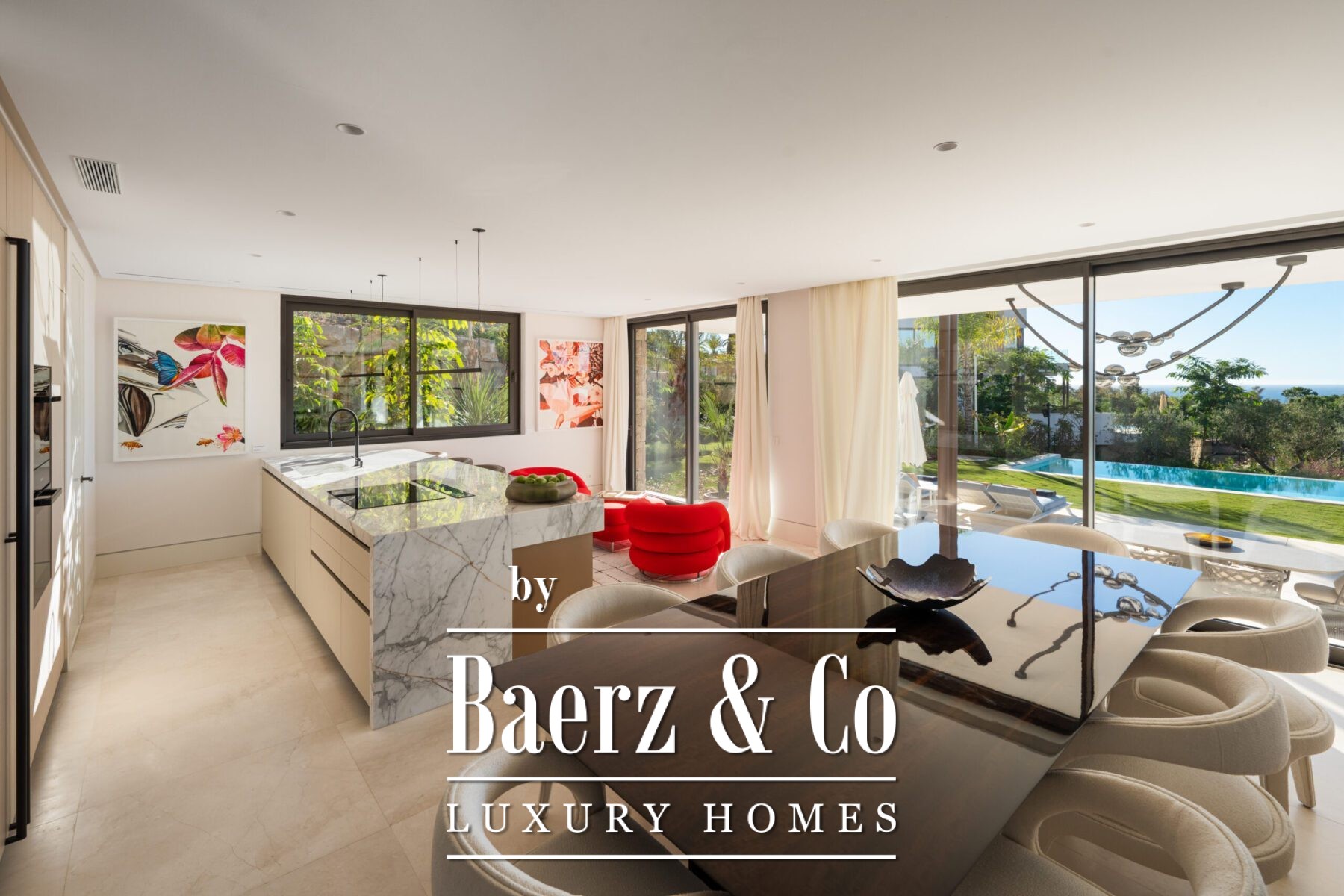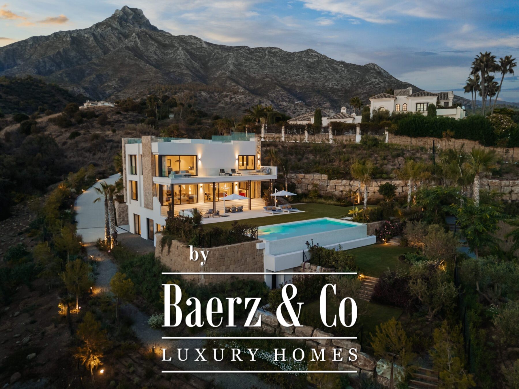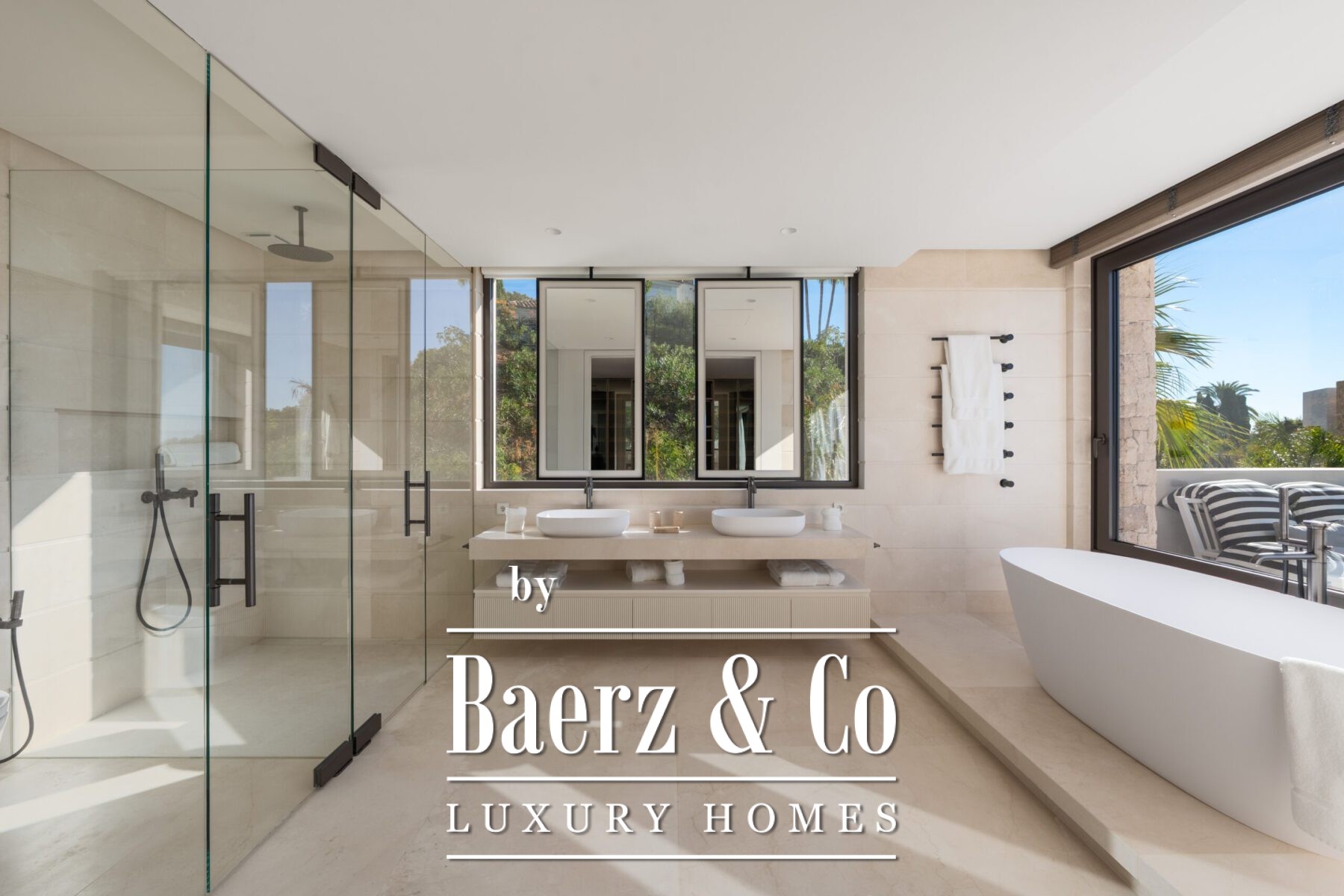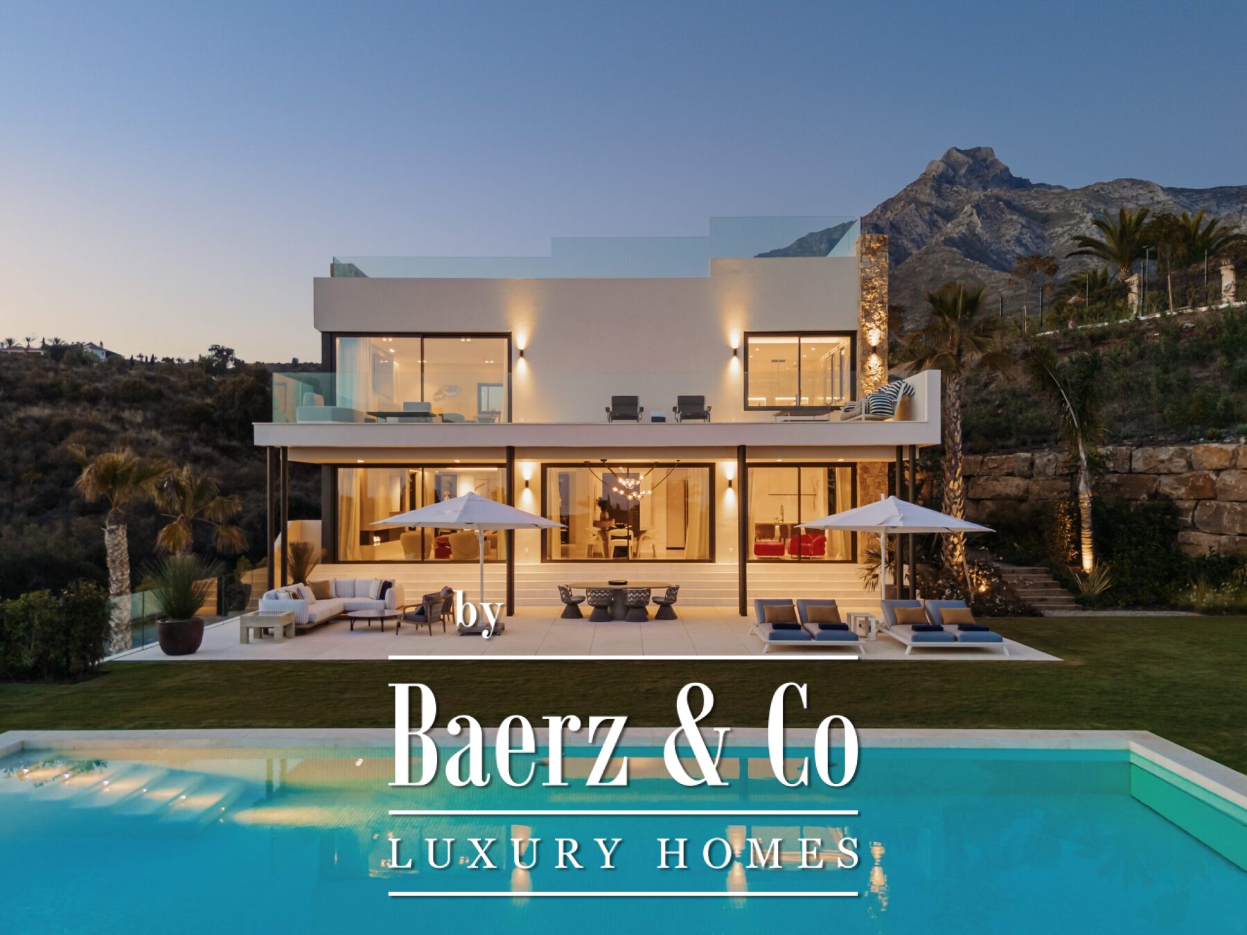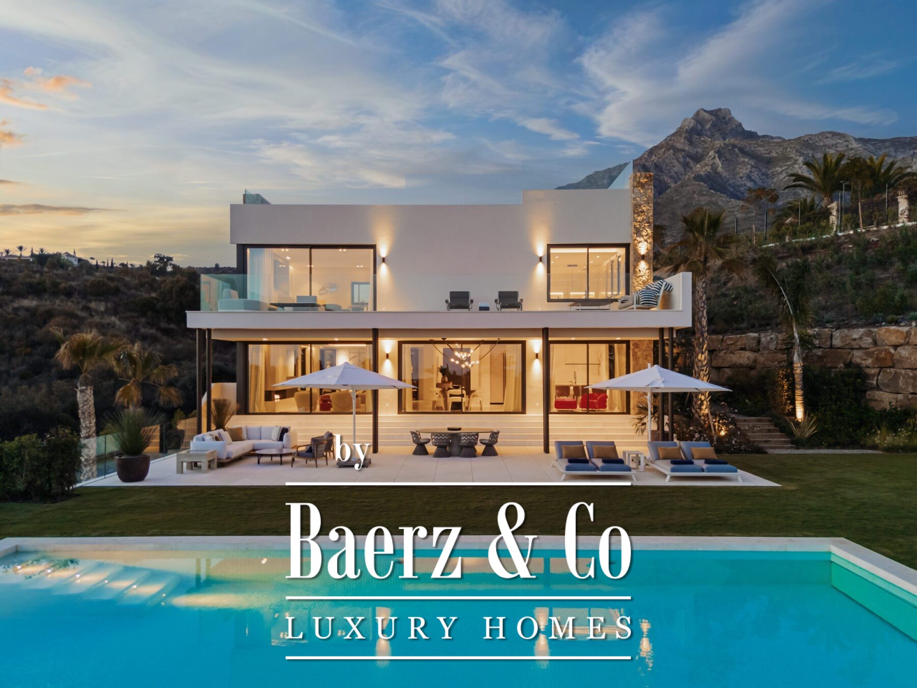 Villa Marbella Hill Club met zee- en bergzicht nodigt uit tot verfijnd wonen aan de rand van Marbellas Golden Mile. Deze nieuw gebouwde villa beslaat 825 m² op een royaal perceel van 3.559 m² en biedt een sfeer van kalmte en ingetogen luxe. De interieurs zijn volledig op maat ontworpen voor deze woning, met een rustig neutraal kleurenpalet en natuurlijke materialen als hout en marmer die zorgen voor een harmonieuze luxe-uitstraling.