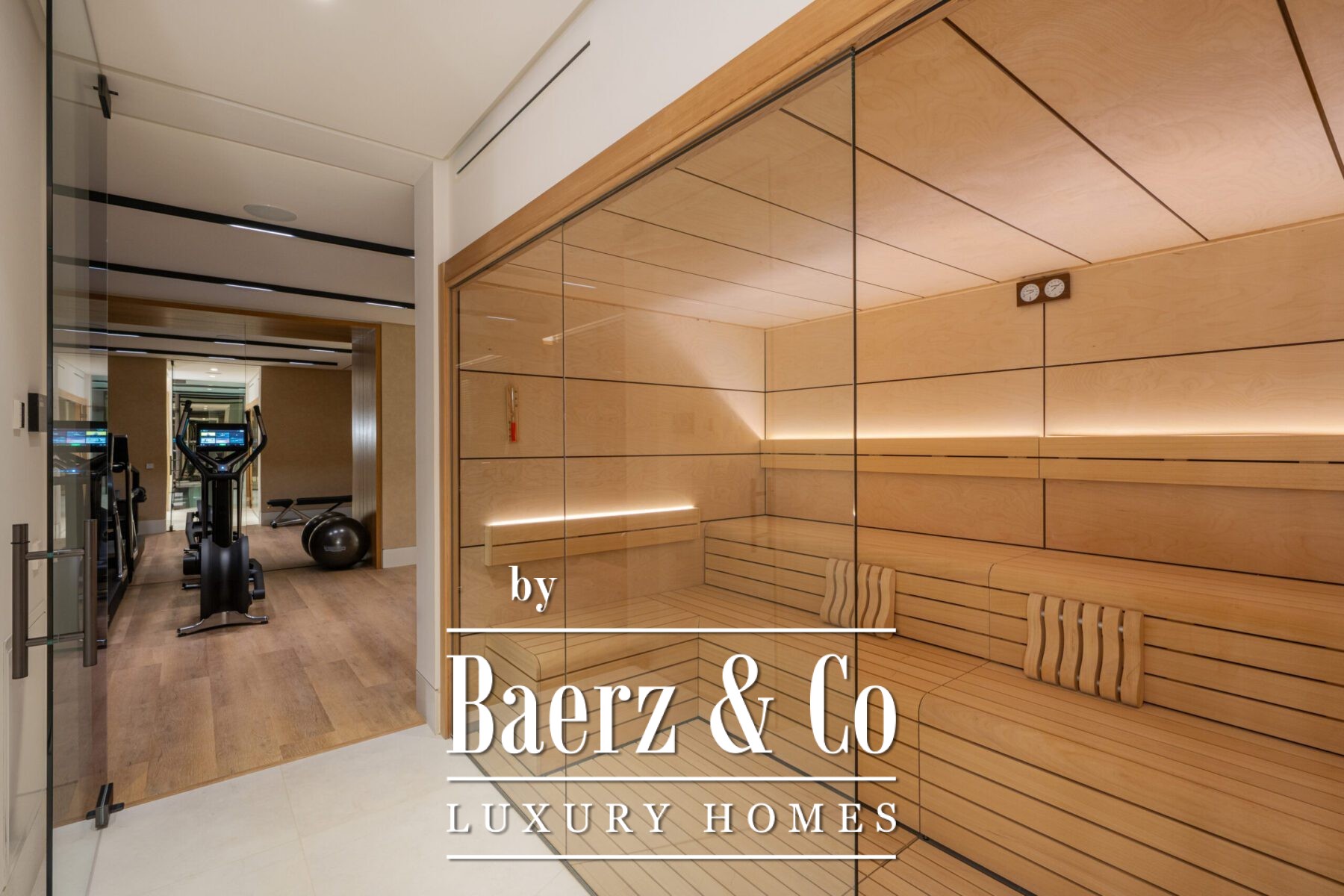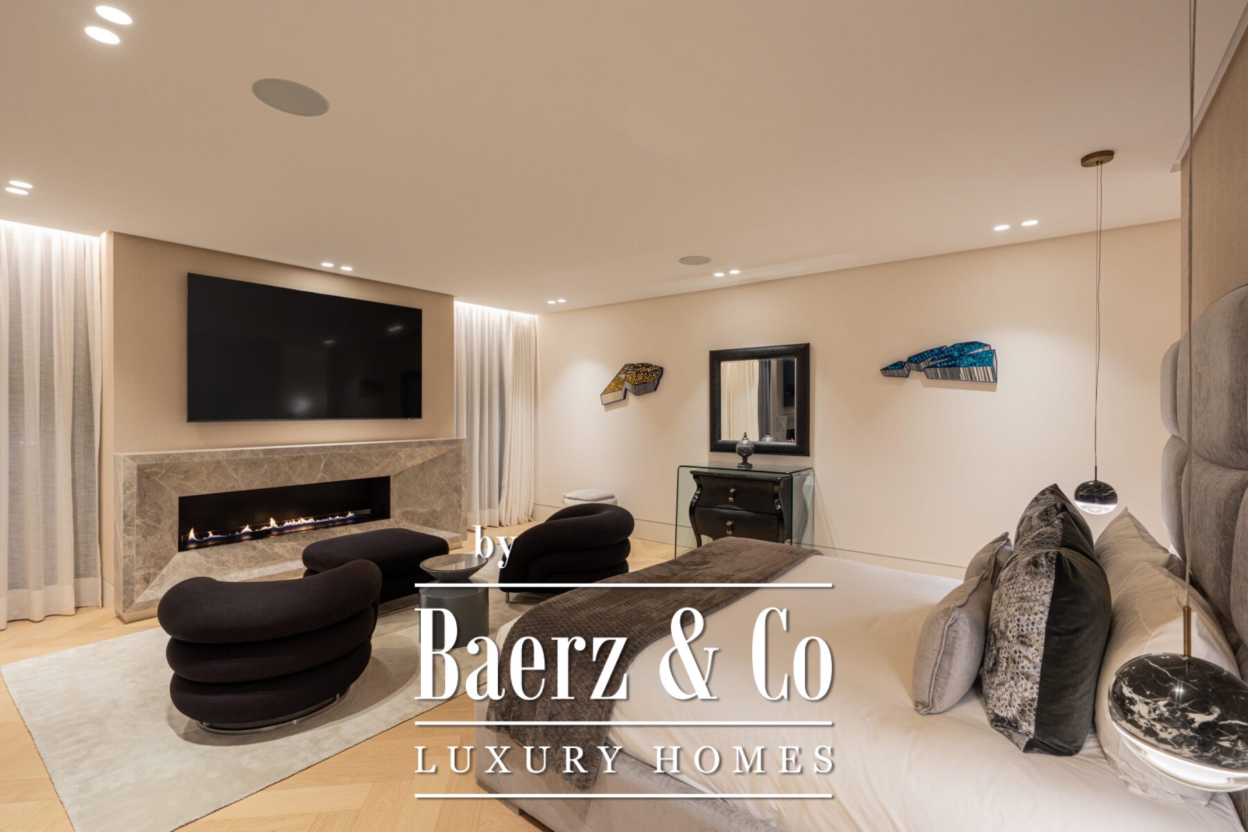 De open leefruimte creëert samenhang en ruimtelijk overzicht, zodat het daglicht vrij zijn weg vindt. Fijne details en zorgvuldig gekozen kunst geven iedere hoek een eigen karakter, terwijl de keuken – uitgerust met de nieuwste inbouwapparatuur en een wijnklimaatkast – perfect is voor zowel dagelijkse rituelen als sociale momenten. Vijf slaapkamers en zes badkamers stralen subtiele grandeur uit, met dubbele wastafels, maatwerkdouches en vrijstaande baden.