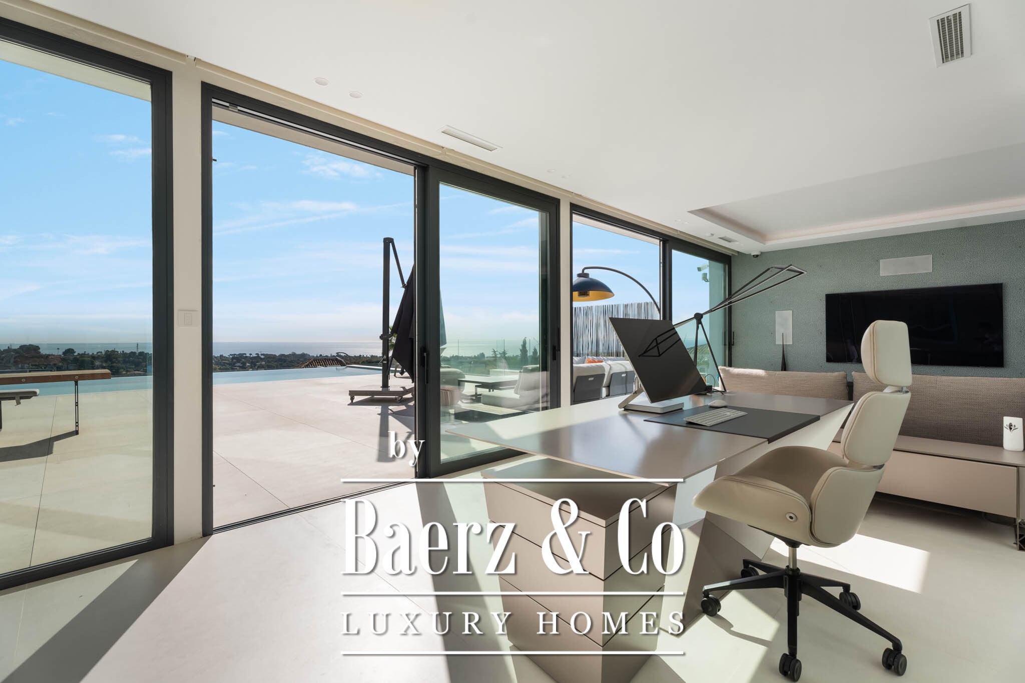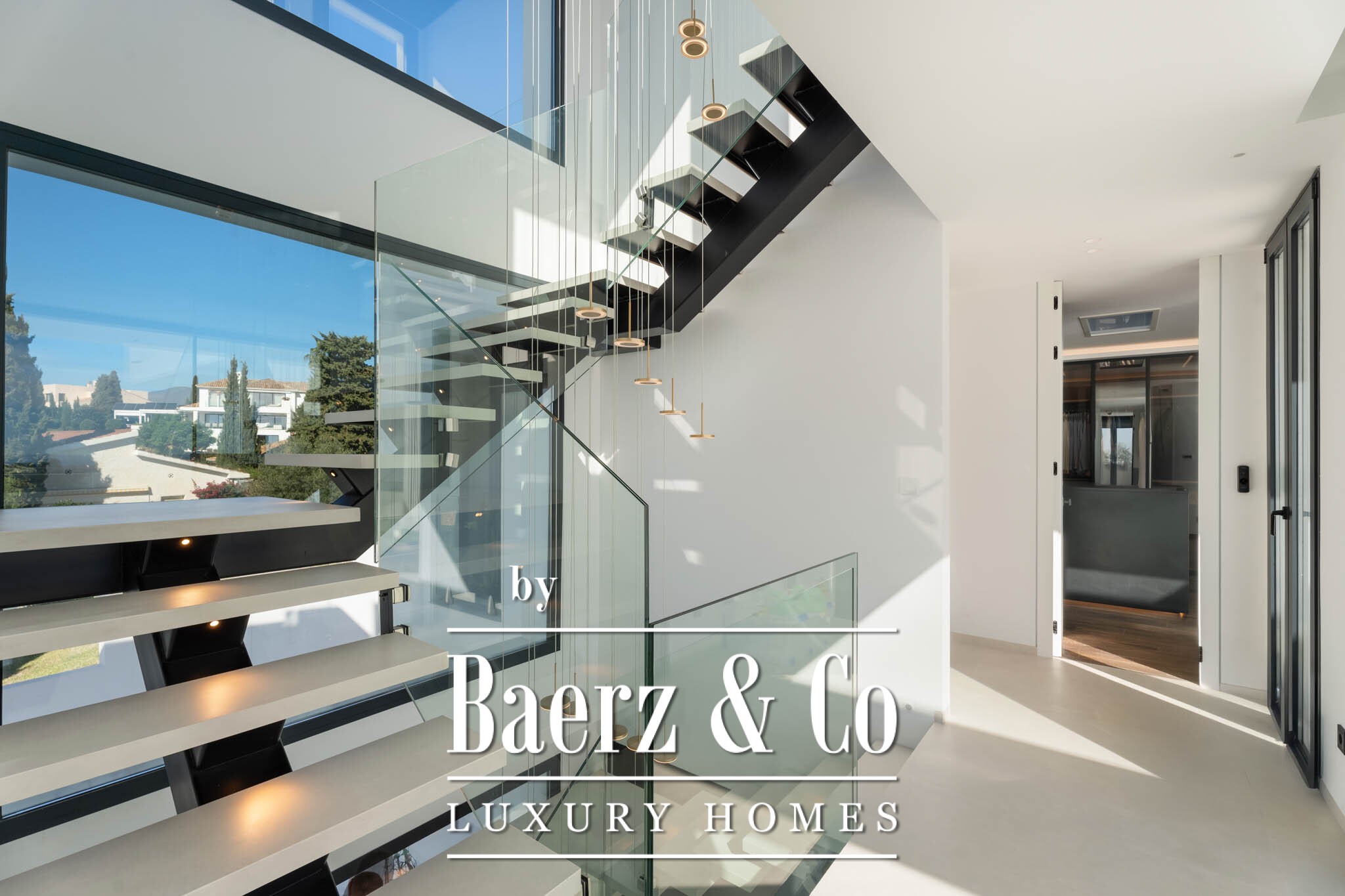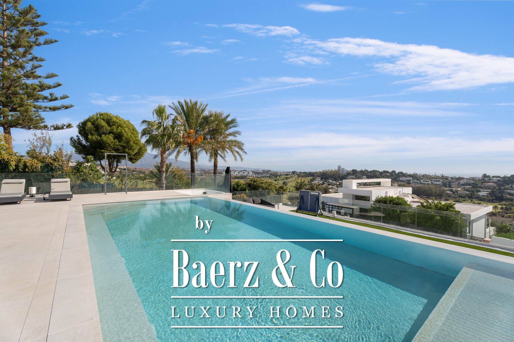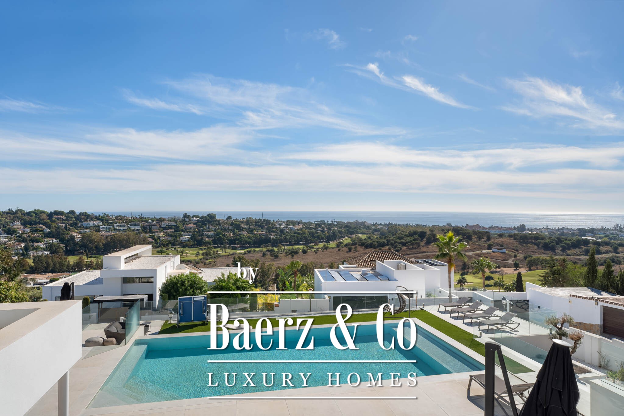 Deze designvilla in Marbella biedt een eigentijdse residentie waar privacy, ruimte en directe verbinding met het Andalusische landschap in harmonie samenkomen. Vanuit de verhoogde positie ontvouwen zich panoramische uitzichten over El Paraíso Golf, de Middellandse Zee, Gibraltar, de Afrikaanse kustlijn en de La Concha-berg; elke kamer en elk terras heeft daardoor een uniek uitzicht.