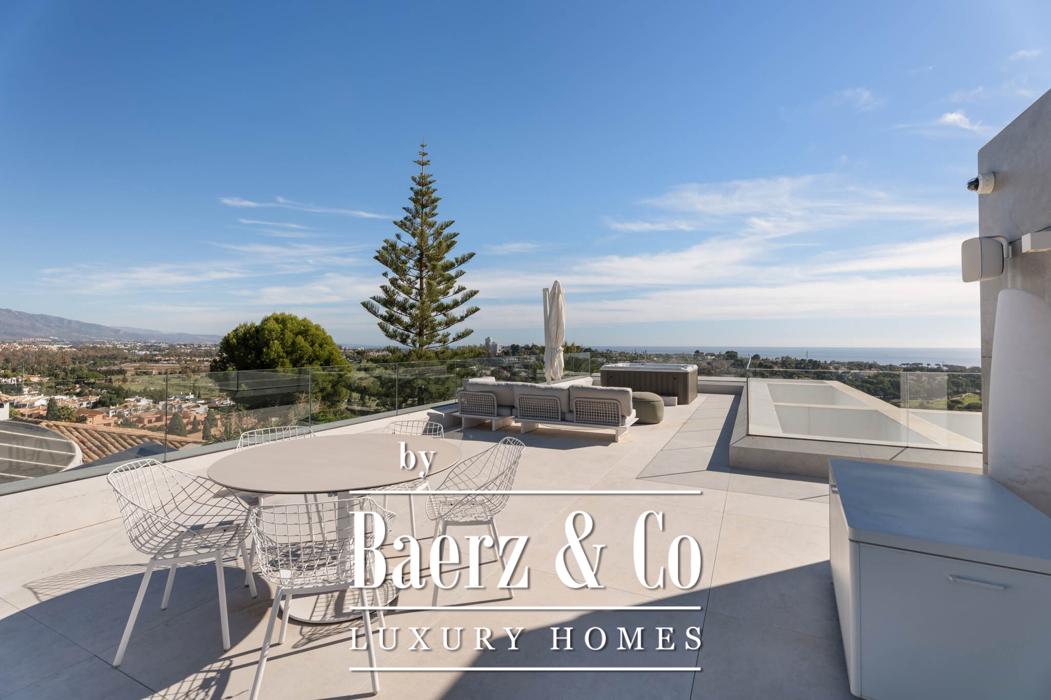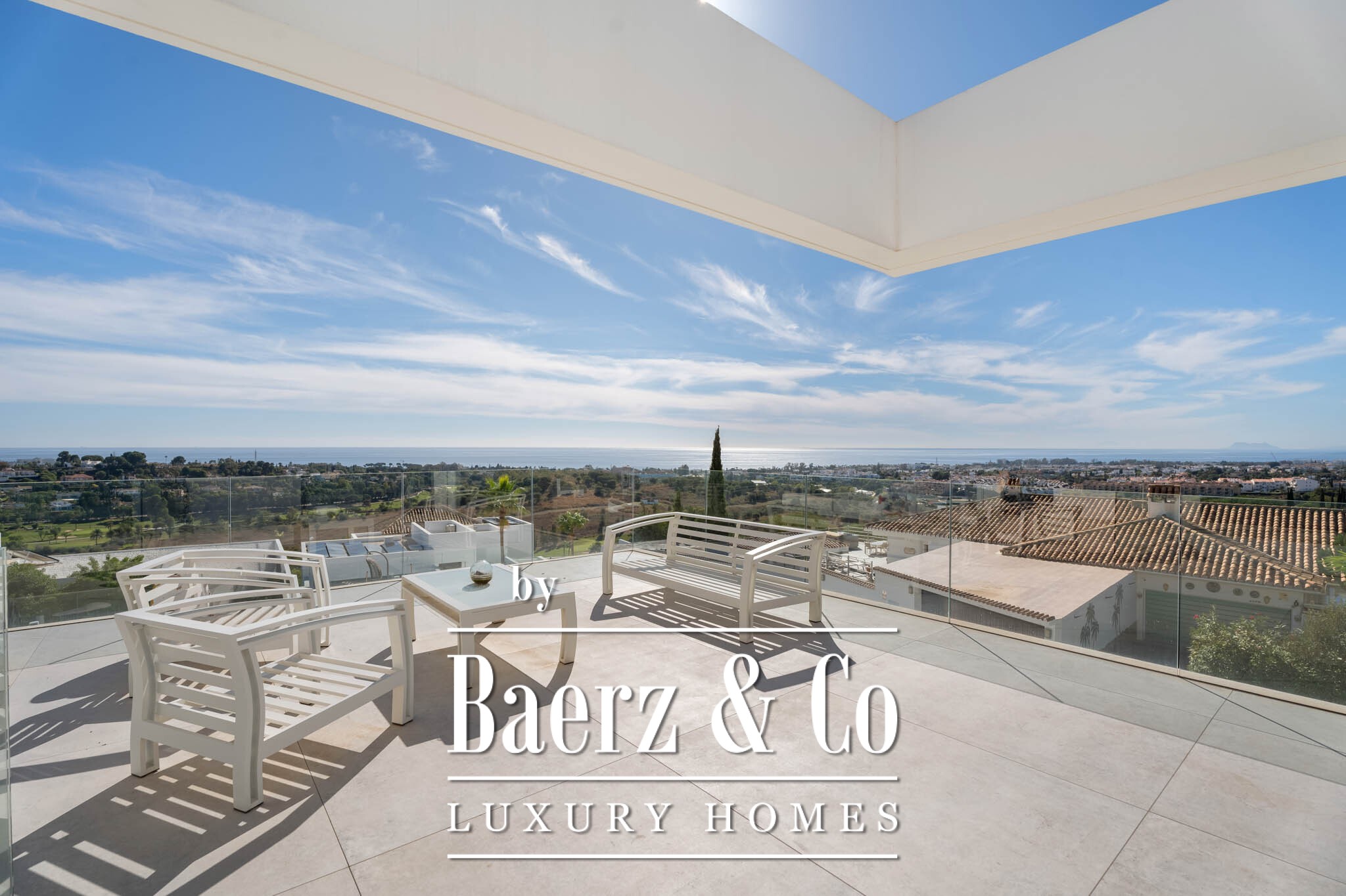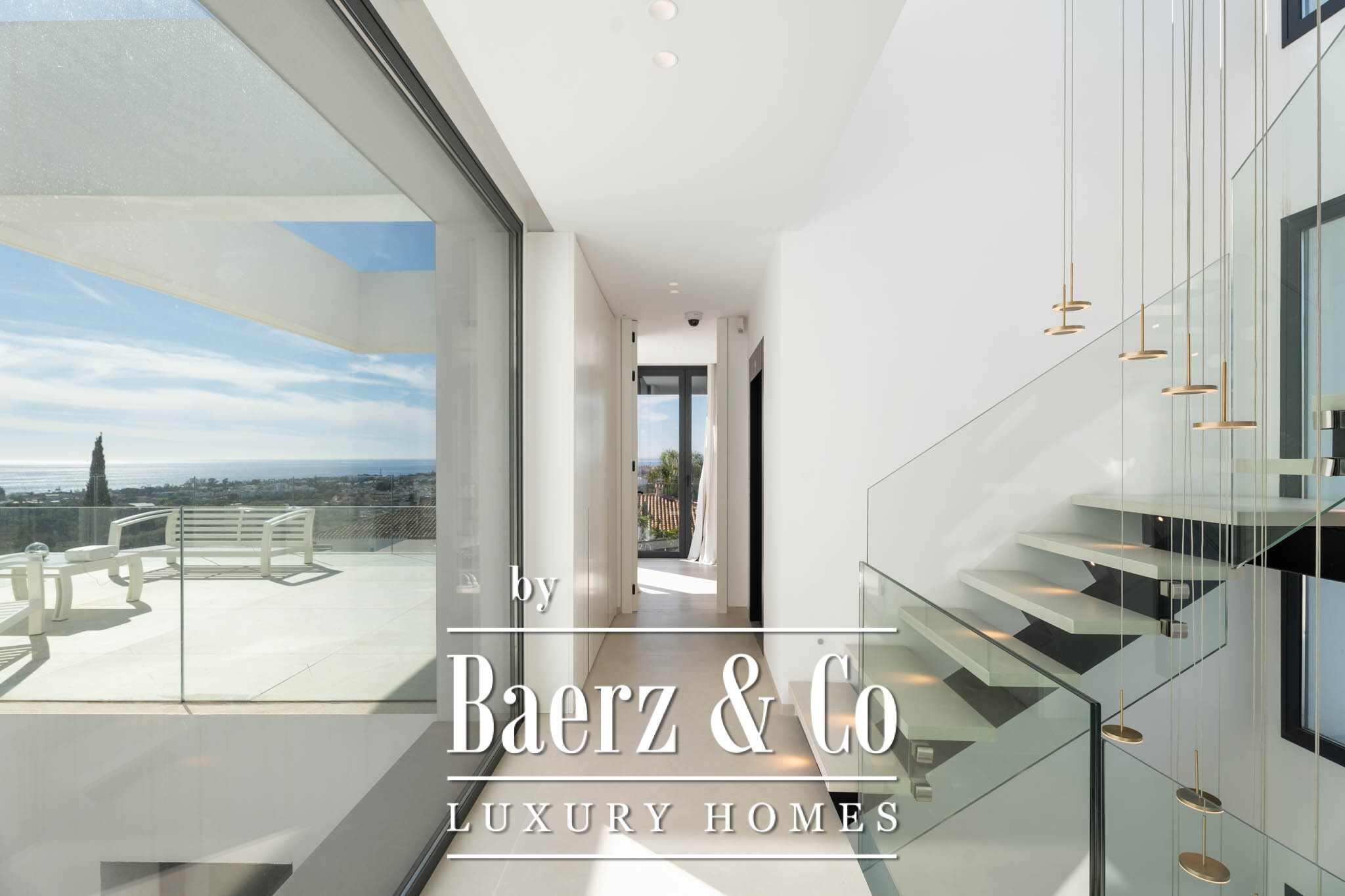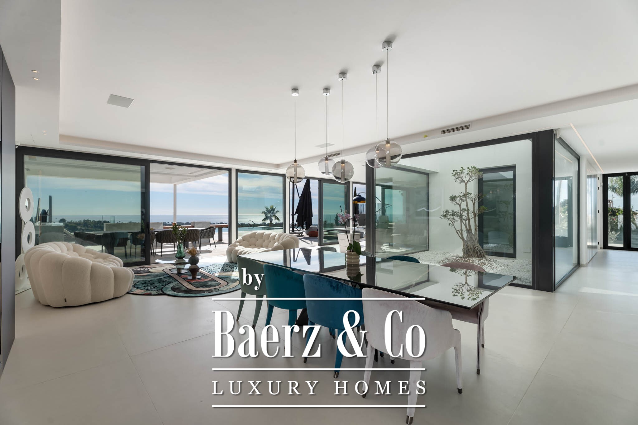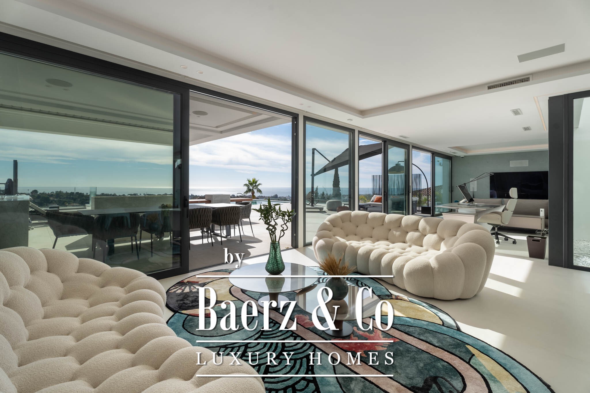 Deze designvilla in Marbella biedt een eigentijdse residentie waar privacy, ruimte en directe verbinding met het Andalusische landschap in harmonie samenkomen. Vanuit de verhoogde positie ontvouwen zich panoramische uitzichten over El Paraíso Golf, de Middellandse Zee, Gibraltar, de Afrikaanse kustlijn en de La Concha-berg; elke kamer en elk terras heeft daardoor een uniek uitzicht.