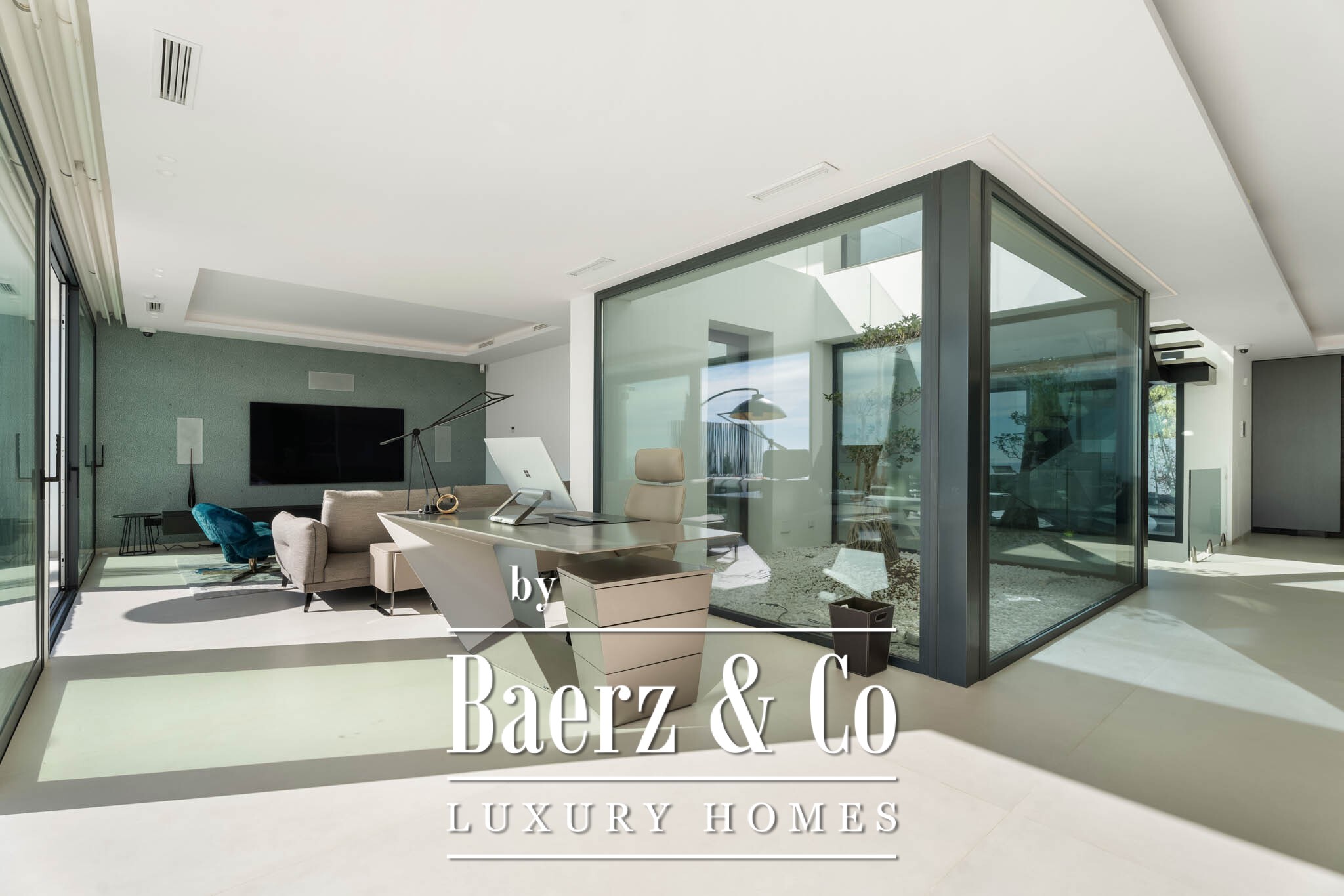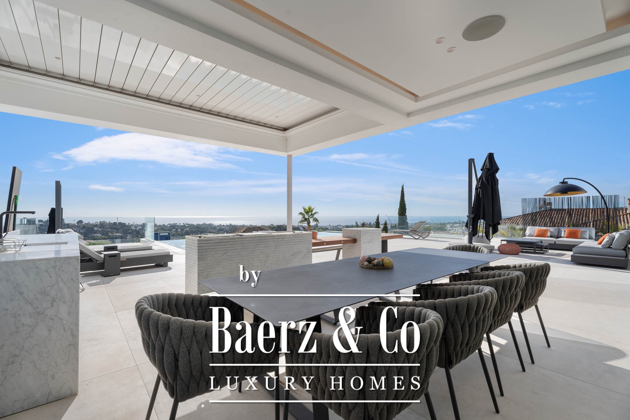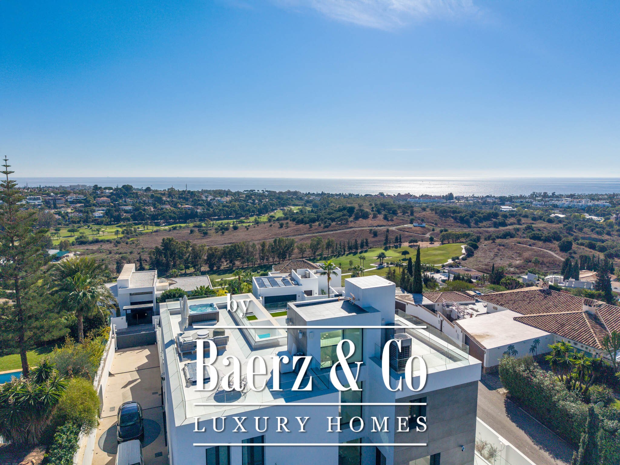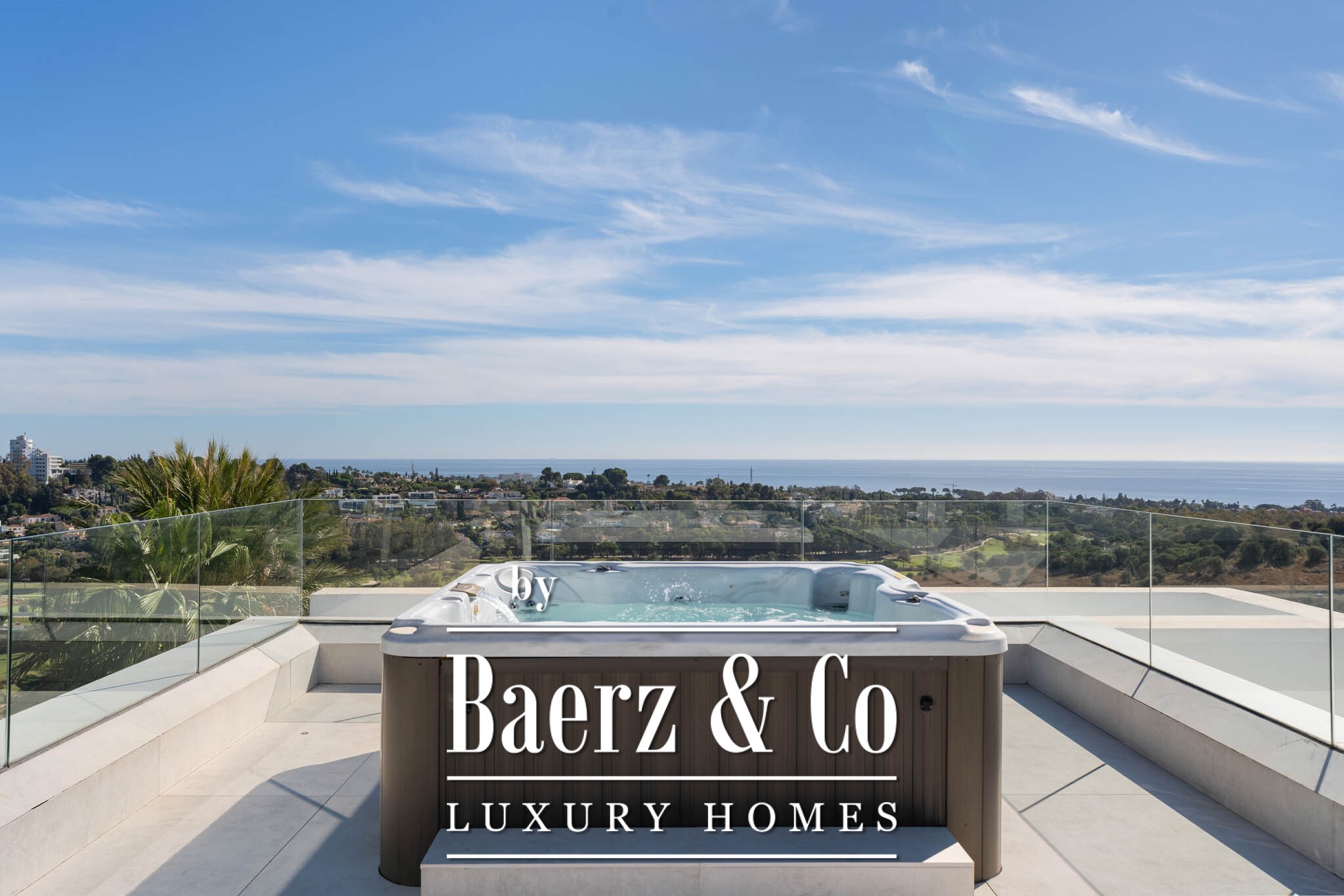 Deze designvilla in Marbella biedt een eigentijdse residentie waar privacy, ruimte en directe verbinding met het Andalusische landschap in harmonie samenkomen. Vanuit de verhoogde positie ontvouwen zich panoramische uitzichten over El Paraíso Golf, de Middellandse Zee, Gibraltar, de Afrikaanse kustlijn en de La Concha-berg; elke kamer en elk terras heeft daardoor een uniek uitzicht.