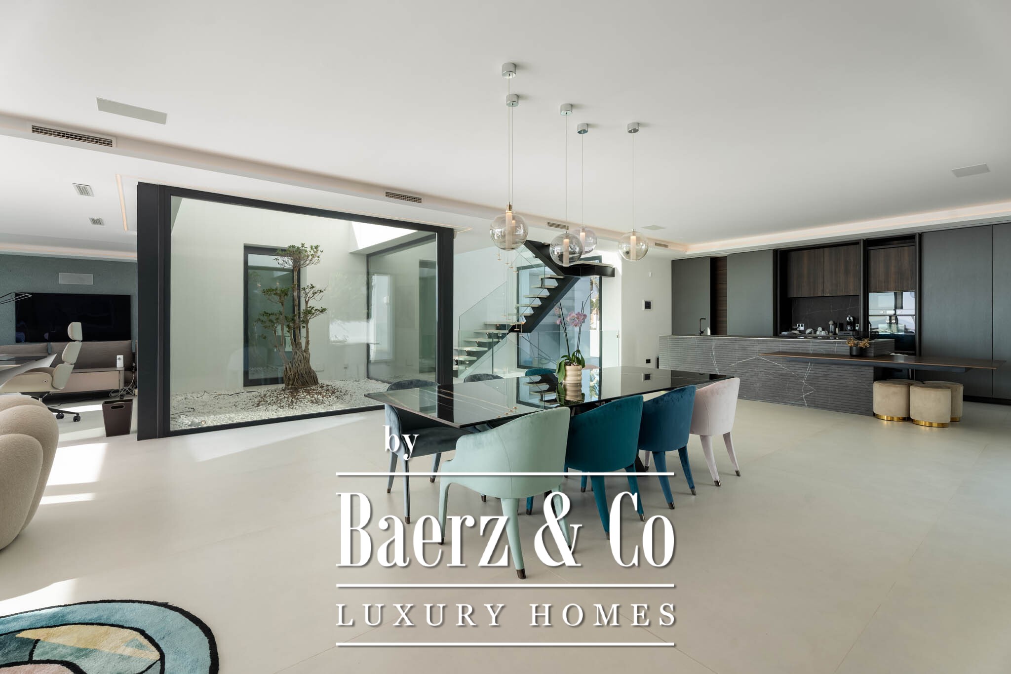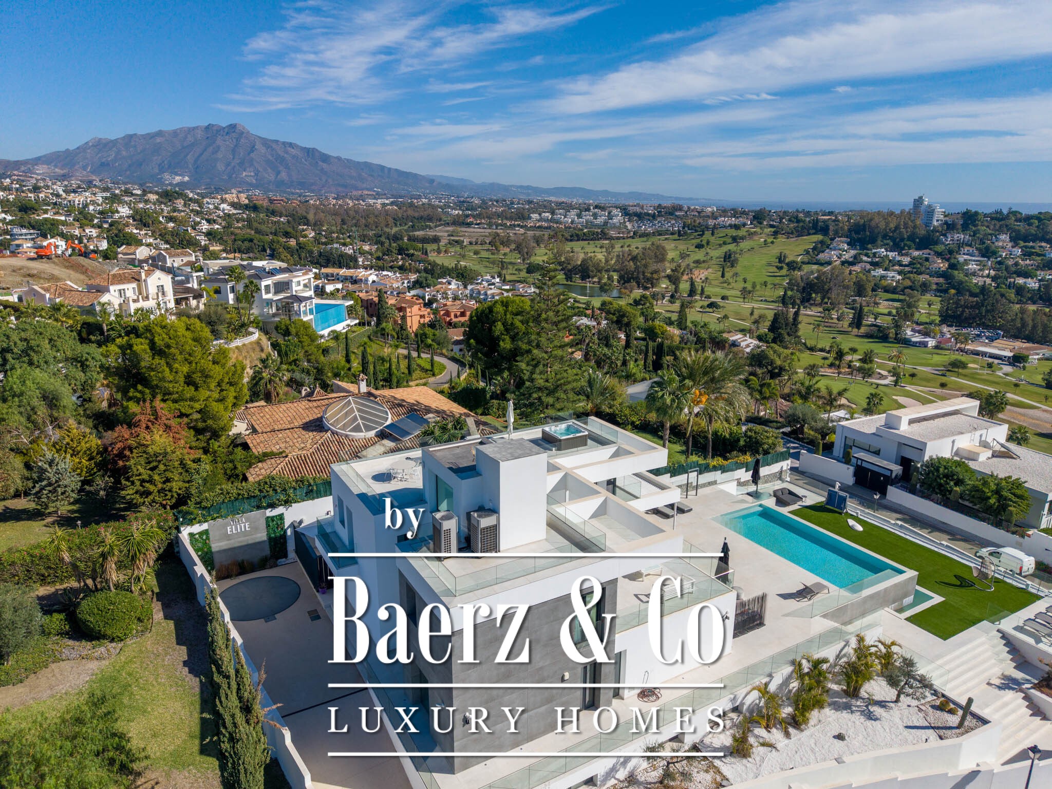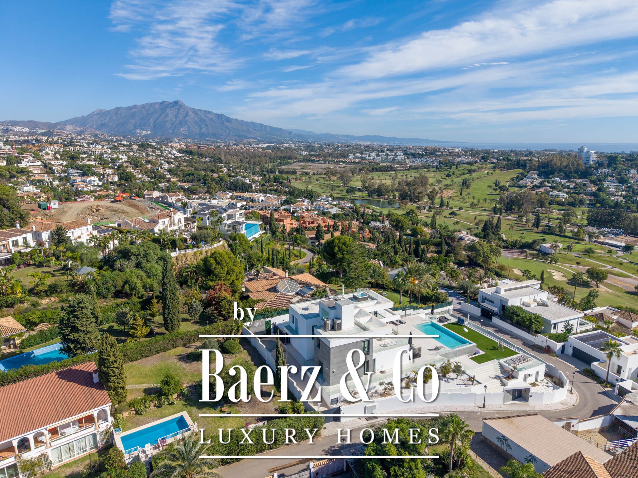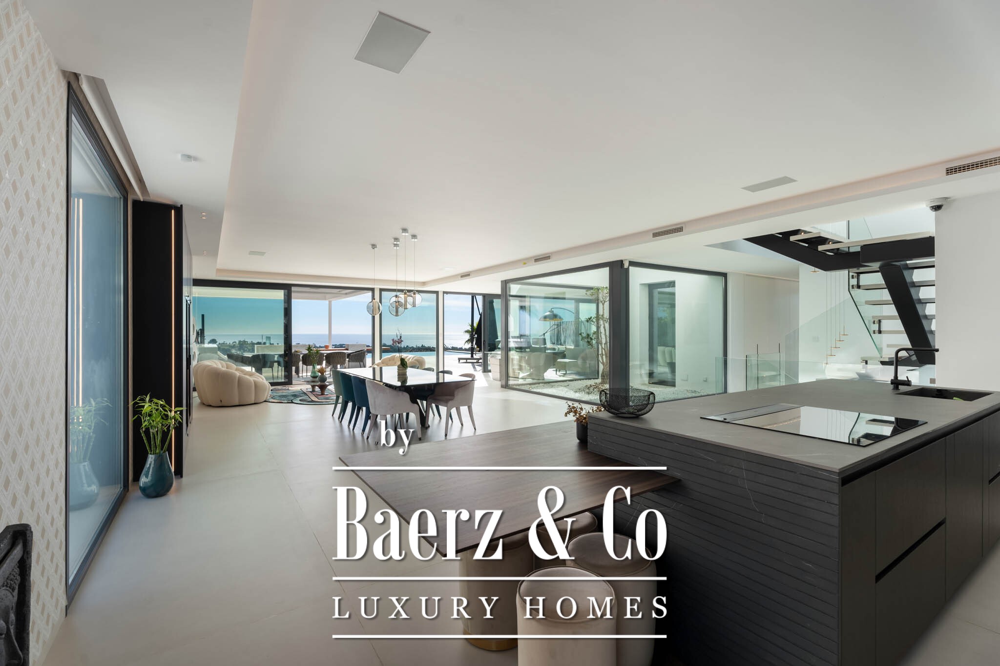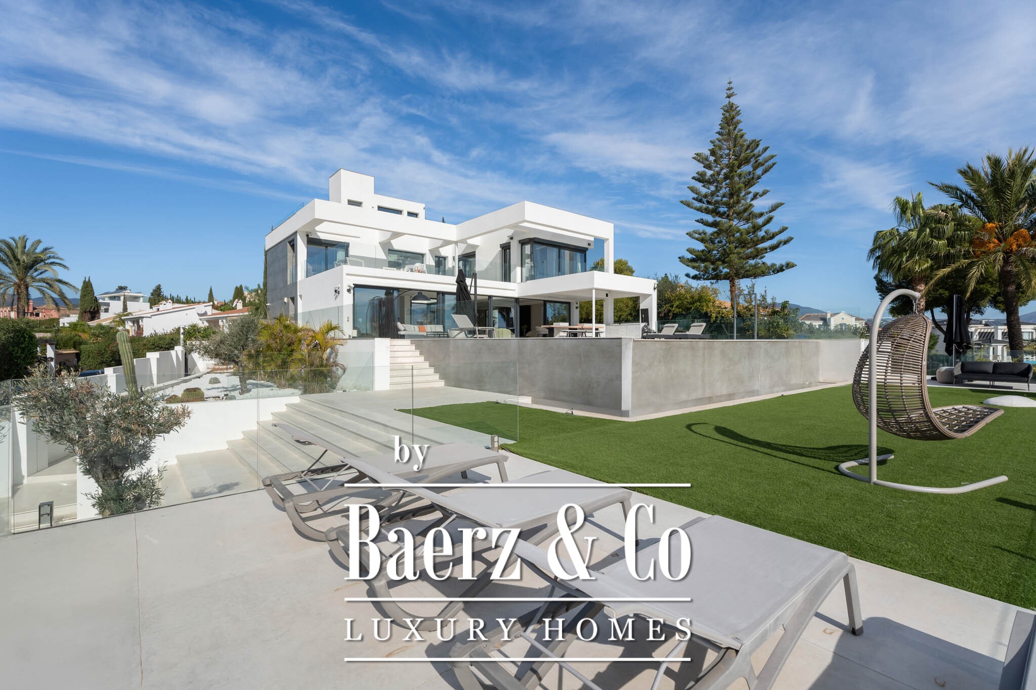 Deze designvilla in Marbella biedt een eigentijdse residentie waar privacy, ruimte en directe verbinding met het Andalusische landschap in harmonie samenkomen. Vanuit de verhoogde positie ontvouwen zich panoramische uitzichten over El Paraíso Golf, de Middellandse Zee, Gibraltar, de Afrikaanse kustlijn en de La Concha-berg; elke kamer en elk terras heeft daardoor een uniek uitzicht.