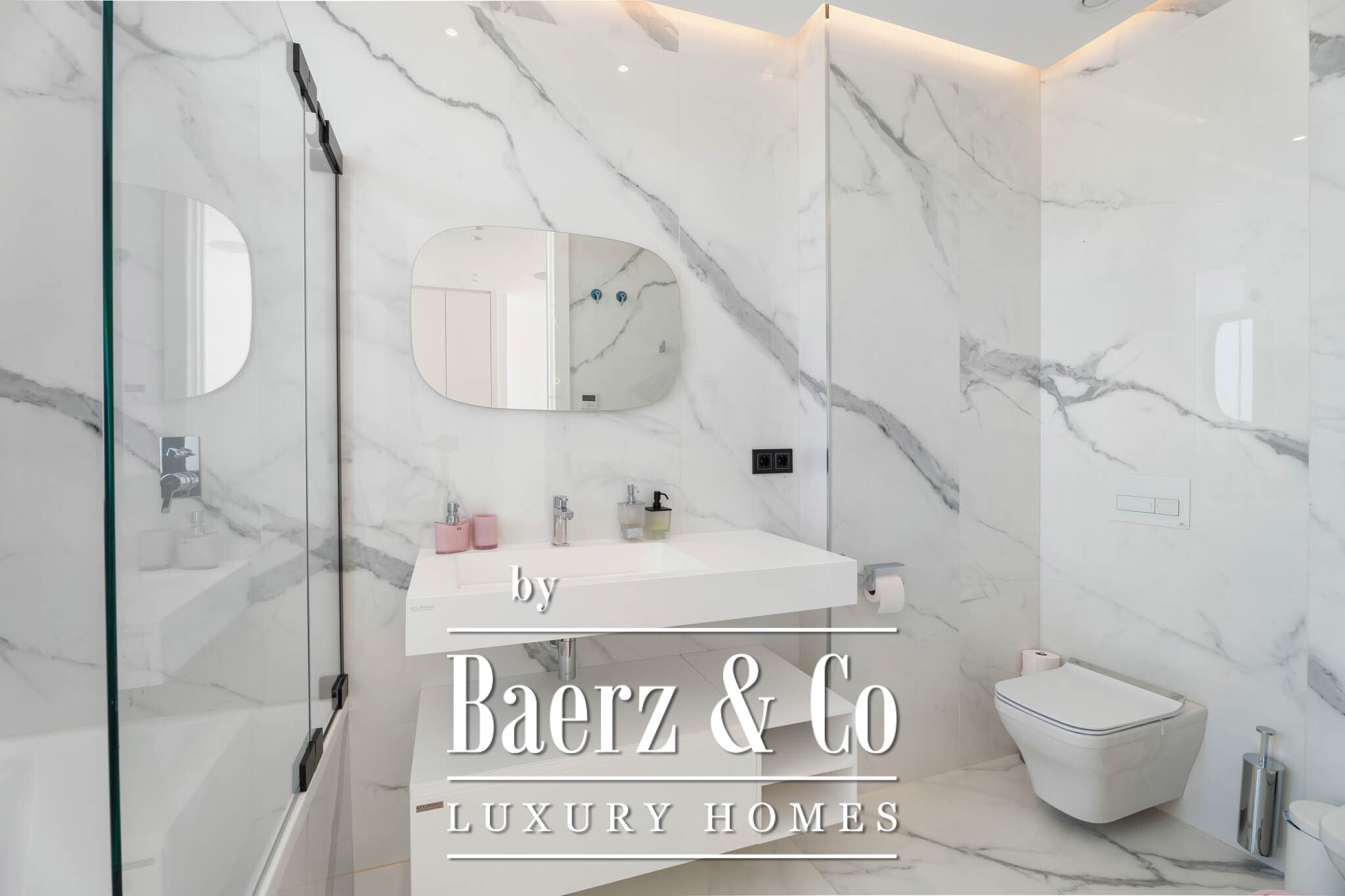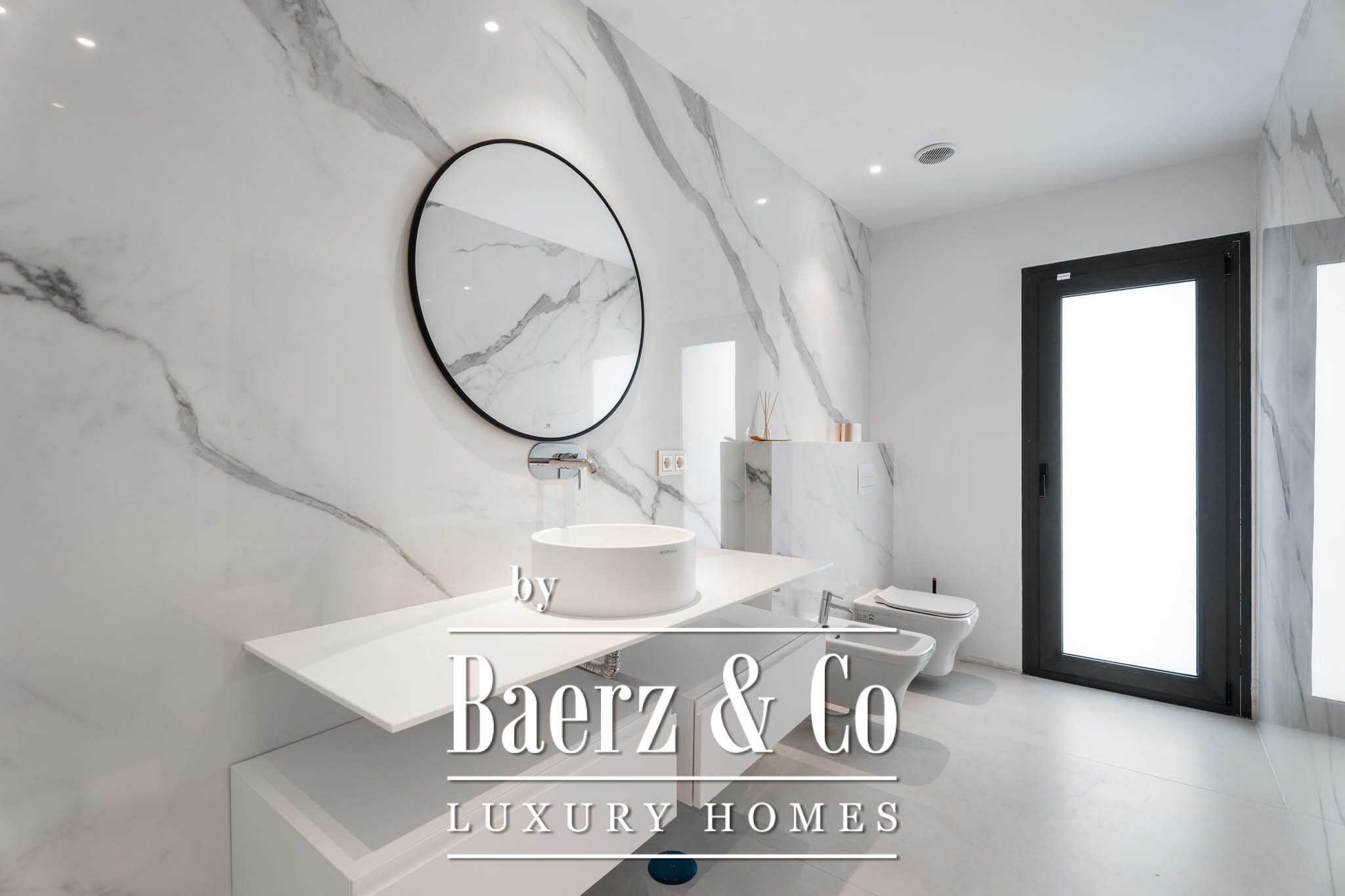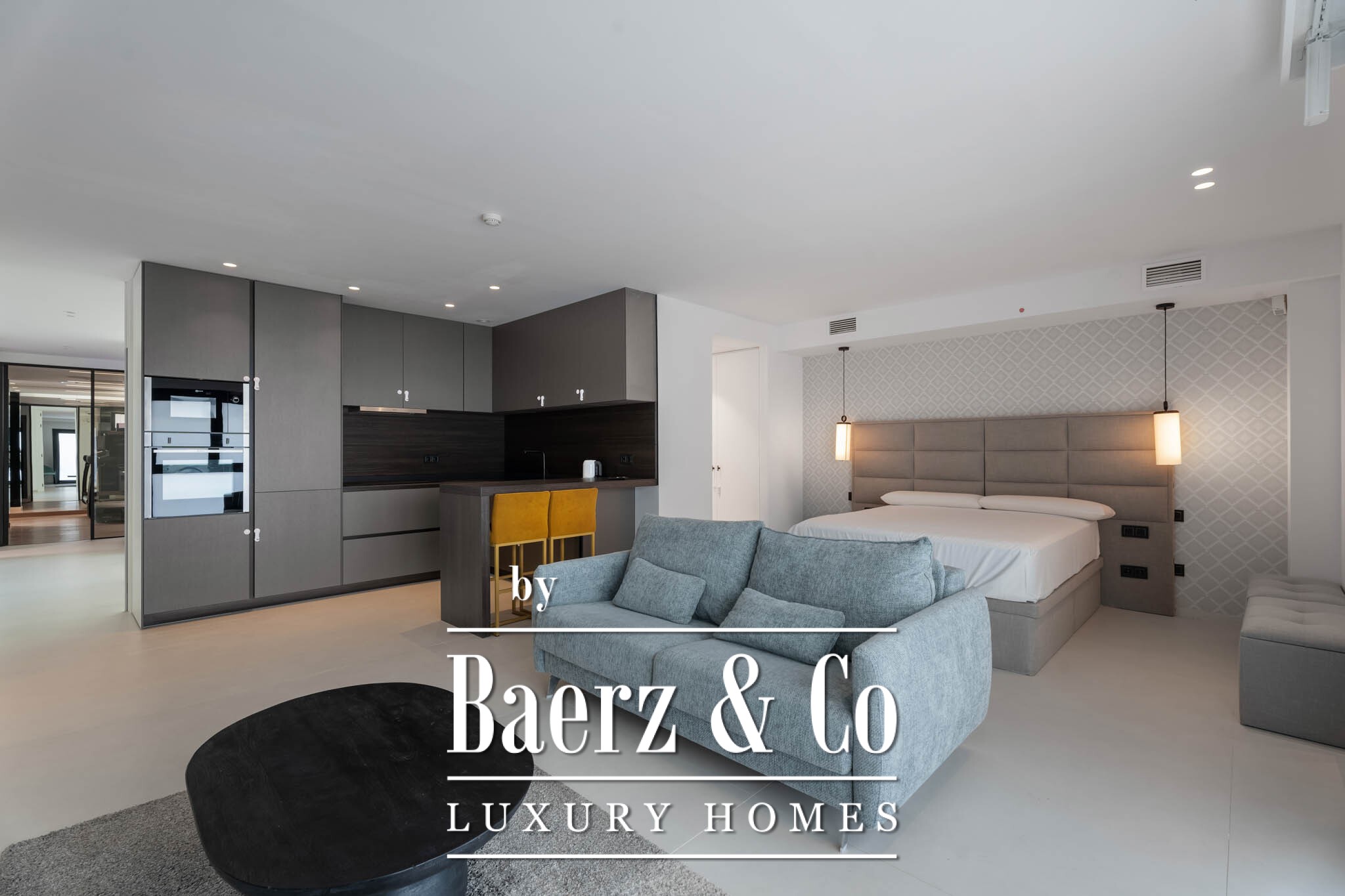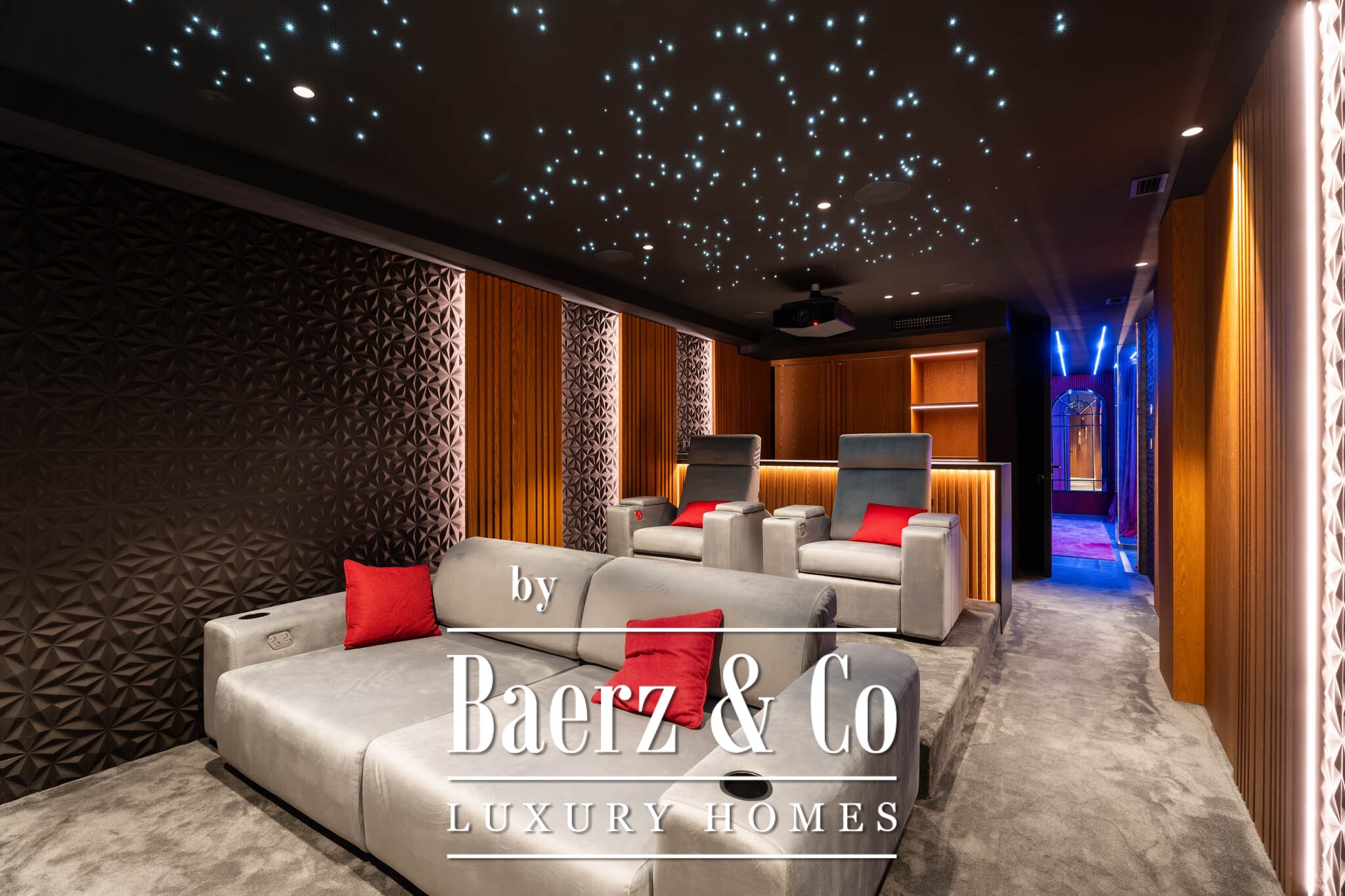 Zes slaapkamers, elk met een eigen badkamer, waarborgen comfort en discretie. De hoofdsuite biedt vrij uitzicht op zee en toegang tot een eigen terras. Op een hoger gelegen niveau zorgt een solarium met jacuzzi voor brede vergezichten van de golfbaan tot aan de verre Afrikaanse kust. De onderste verdieping herbergt entertainment- en wellnessruimtes, waaronder een fitnessruimte, sauna, bioscoopzaal en aparte loungeplekken. Een grote garage met draaiplateaus biedt extra gebruiksgemak.