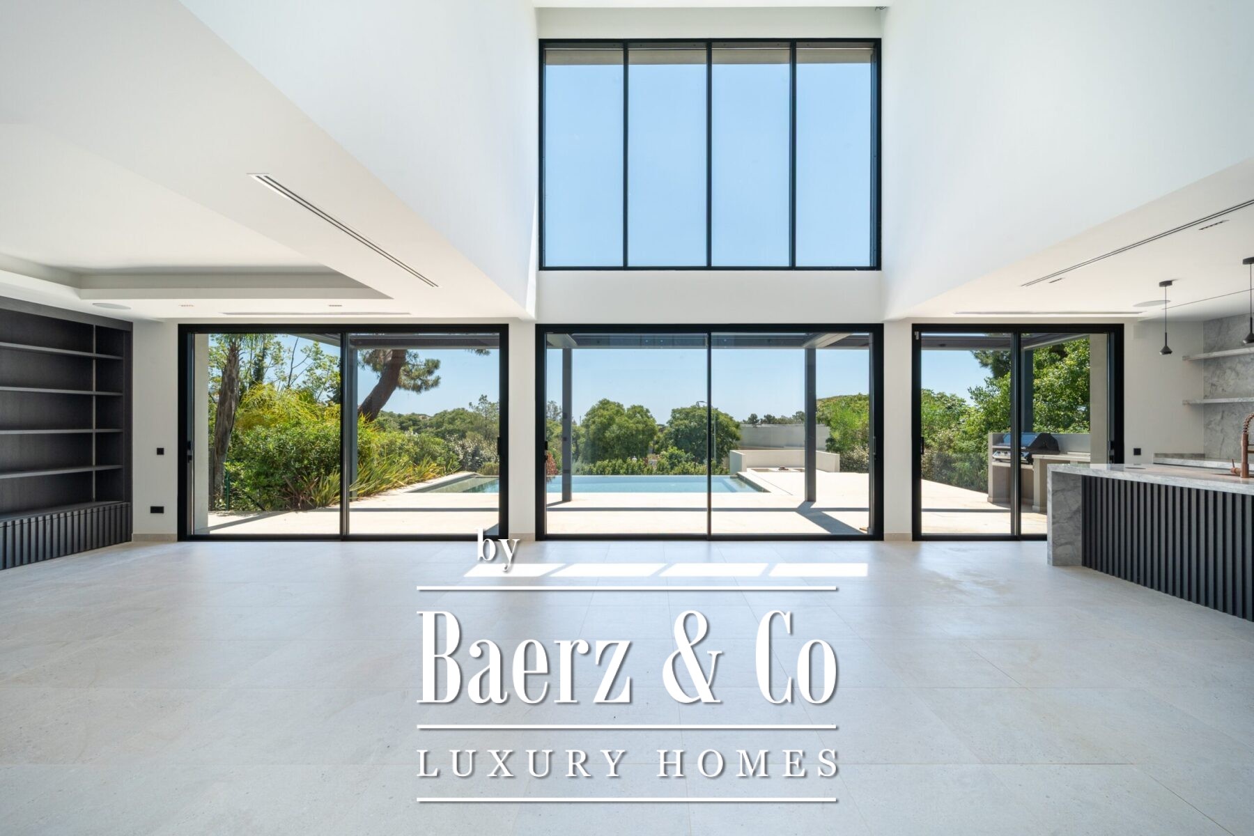 De begane grond biedt een lichte living en eetkamer met open indeling rondom een sfeervolle haard, direct verbonden met een Amerikaanse keuken voorzien van de nieuwste apparatuur. Een suite op deze verdieping biedt privacy voor gasten of als hoofdslaapkamer, aangevuld met een gastentoilet. Buiten vormen het verwarmde infinity-zwembad en een lounge met open haard en volledig uitgeruste zomerkeuken het intieme decor voor ontspannen avonden tussen weelderige mediterrane beplanting.