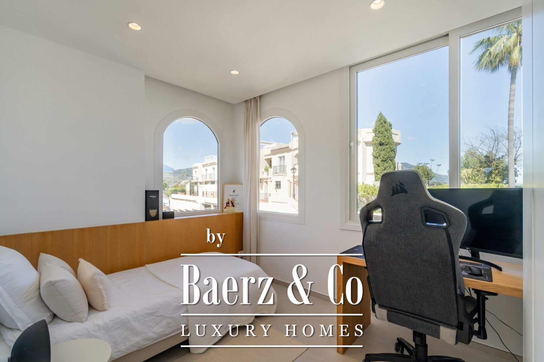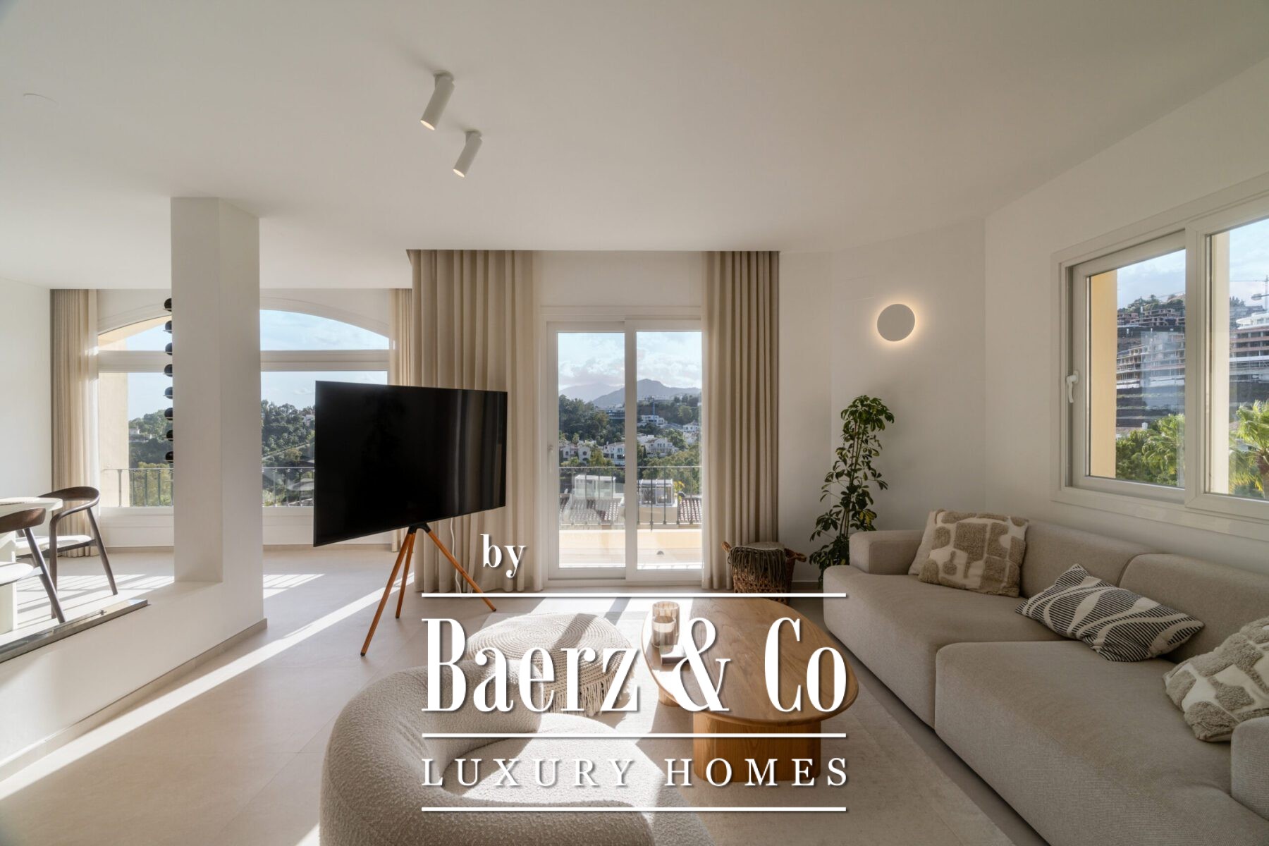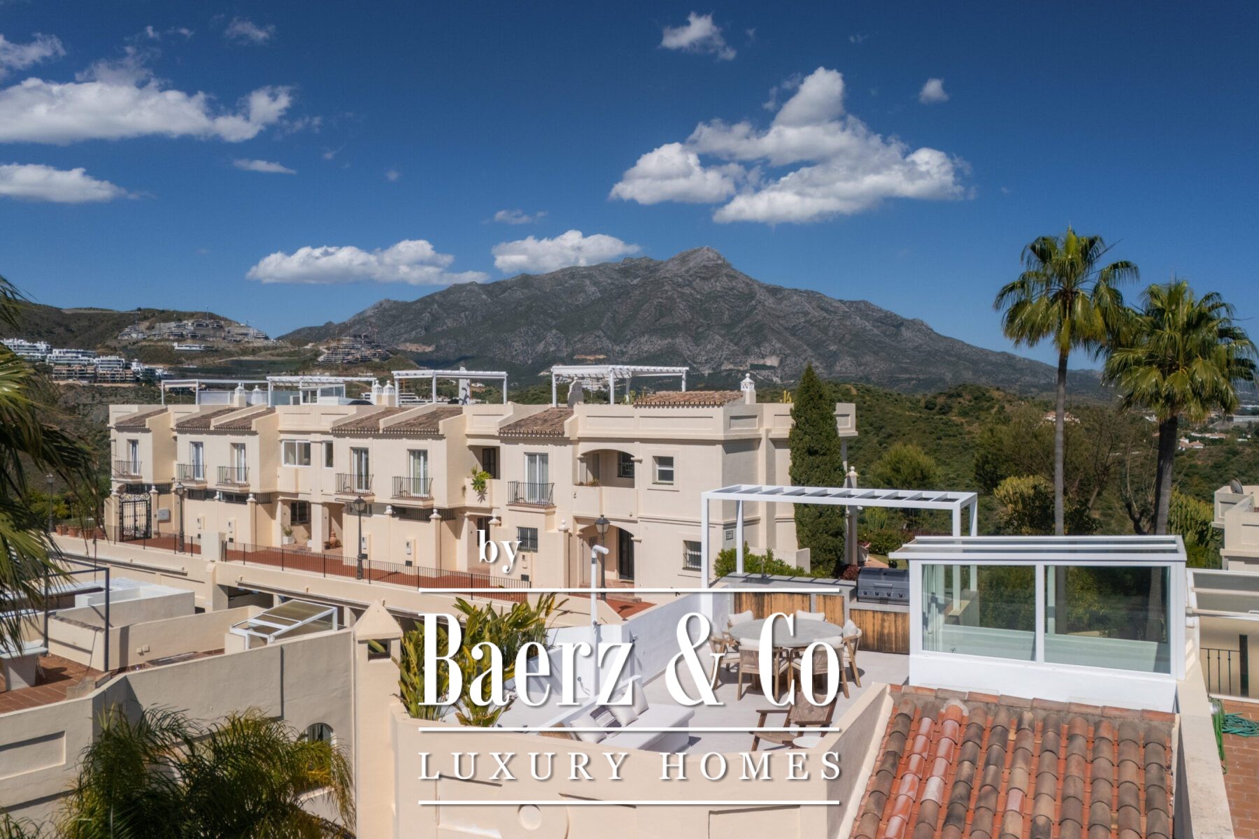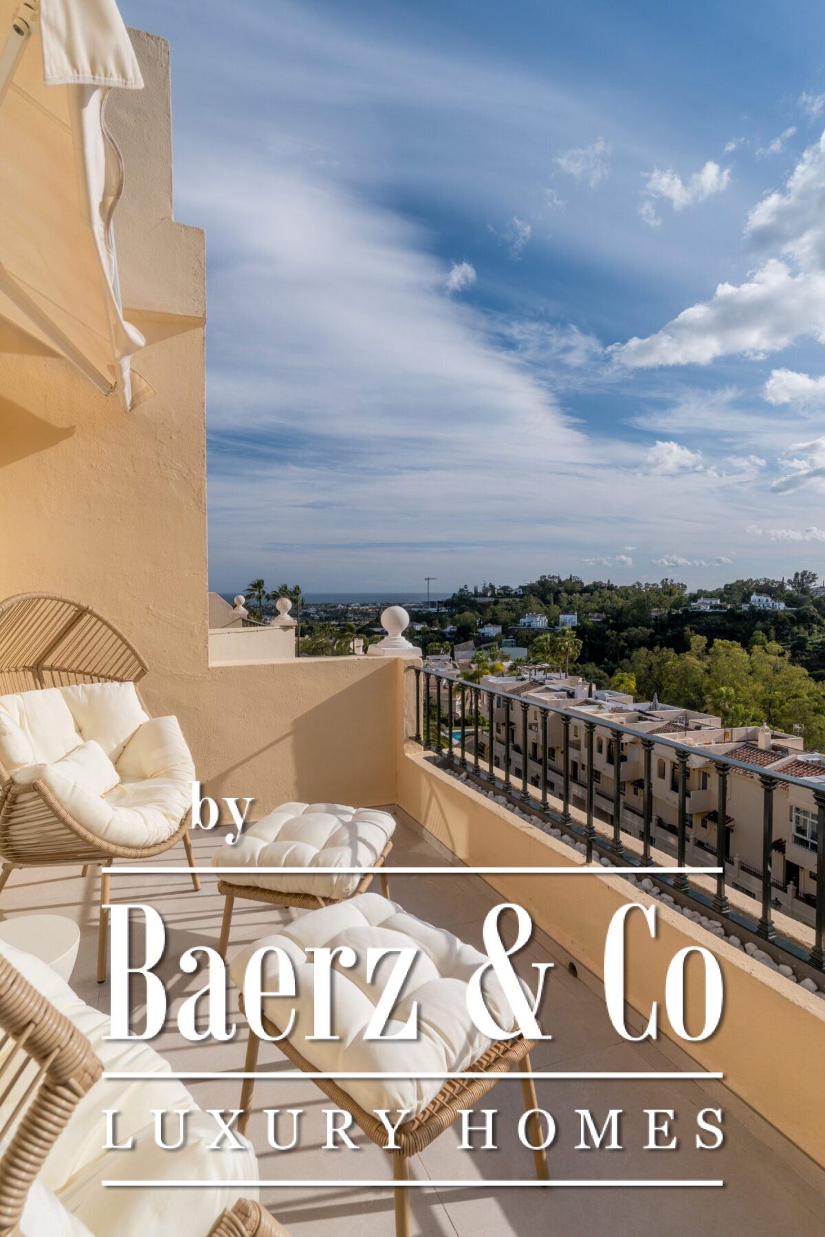 Dit duplex penthouse in Benahavís staat voor wonen op niveau, met 200 m² zorgvuldig ingedeelde leefruimte en een bevoorrechte ligging binnen een beveiligde, afgesloten residentie. De hoofdverdieping is open en vloeiend opgezet, waarbij keuken, eetkamer en woonkamer naadloos overgaan in een privébalkon. Dubbel glas zorgt voor een zee aan licht en omlijst vergezichten over de Middellandse Zee en de omliggende bergen.