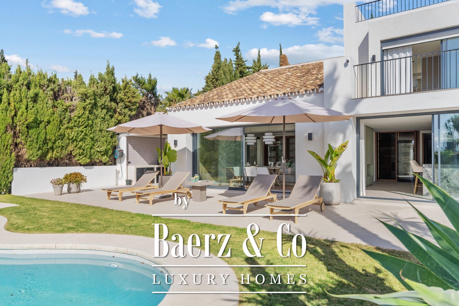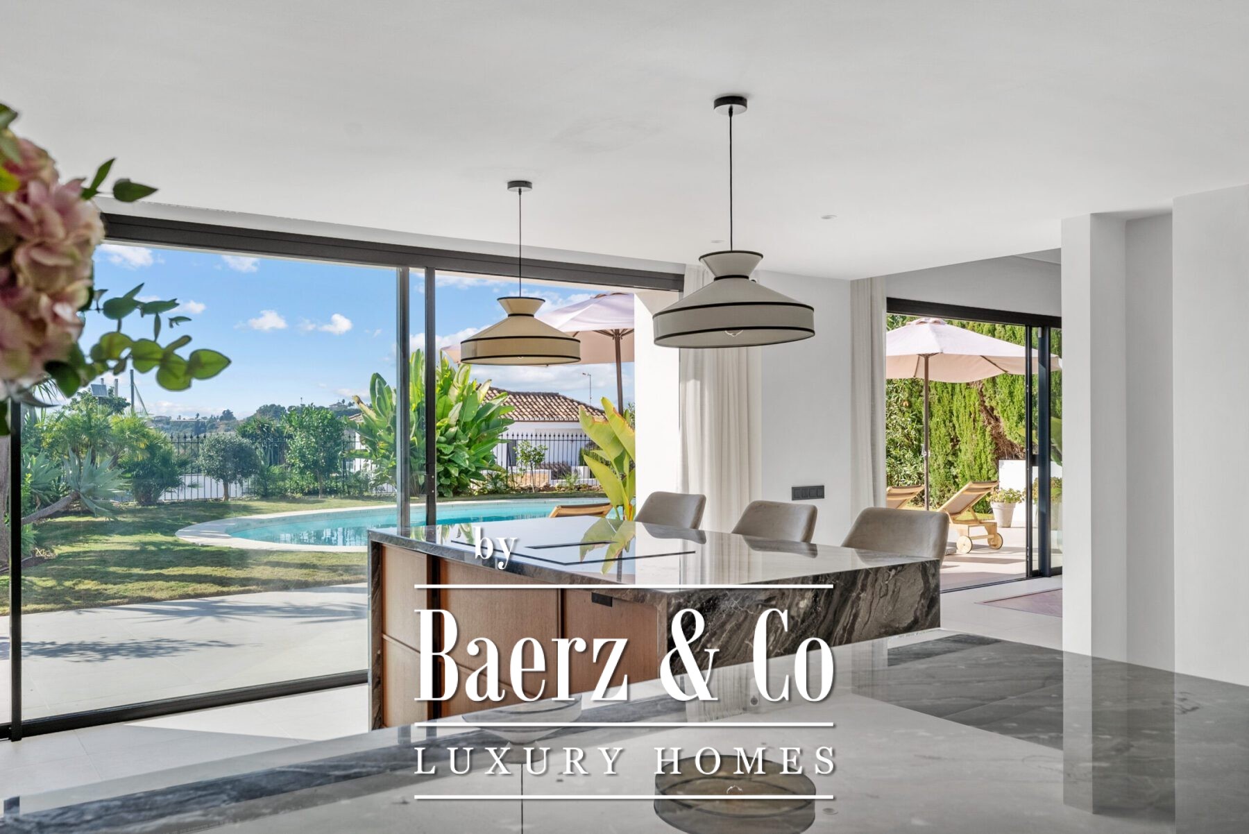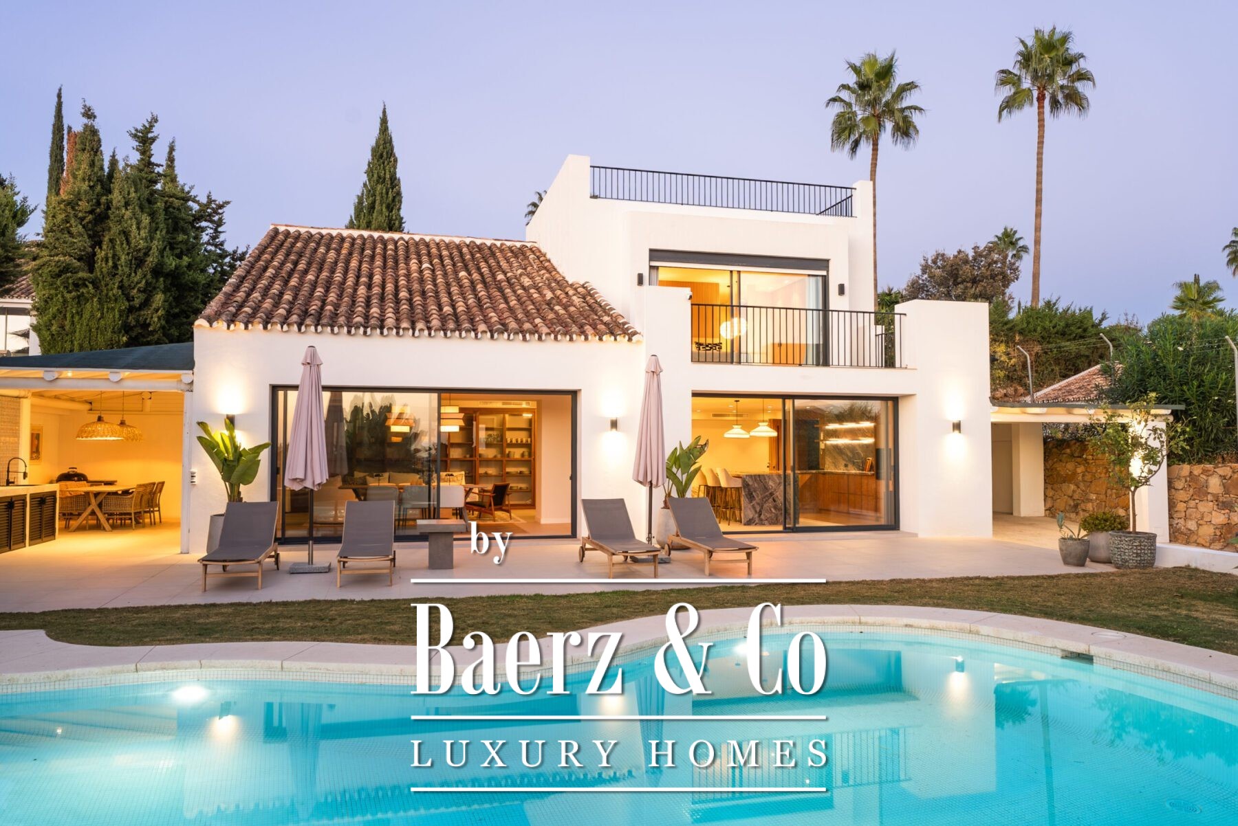 De villa beschikt over 294 m² leefruimte, verrijkt met doordachte voorzieningen: een overdekte buitenkeuken, een zwembad geschikt voor chloor of zout water, en een carport voor vier auto's. De privé-ontziltingsinstallatie garandeert volledige zelfvoorziening. Het perceel van 929 m² vormt een fraai decor voor zowel rust als entertainen, terwijl de nabijheid van golfbanen, stranden en voorzieningen het beste van Marbellas levensstijl binnen dagelijks bereik brengt. Deze luxe villa te koop in Marbella vat hedendaags Scandinavisch design samen in een discrete en begeerde retraite.