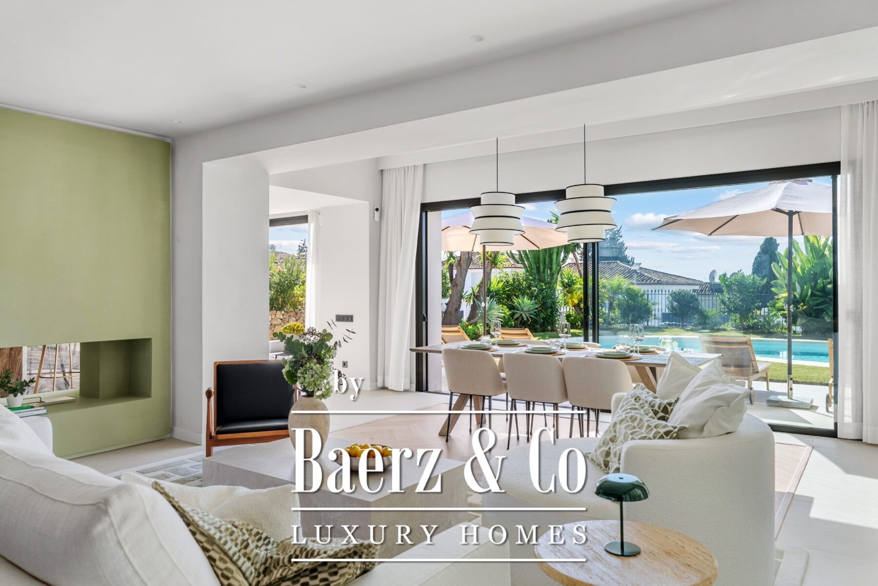 Scandinavisch vormgegeven villa Marbella is een toonbeeld van moderne elegantie, centraal gelegen in het hart van Nueva Andalucía. De woning biedt een indrukwekkend gevoel van ruimtelijkheid dankzij de ideale zuidwestligging, waardoor het interieur badend is in natuurlijk zonlicht en vanaf elke plek panoramisch uitzicht biedt over de prestigieuze Golf Valley. Zorgvuldig aangelegde tuinen waarborgen volledige privacy, terwijl de architectonische lijnen zowel warmte als ingetogenheid uitstralen.