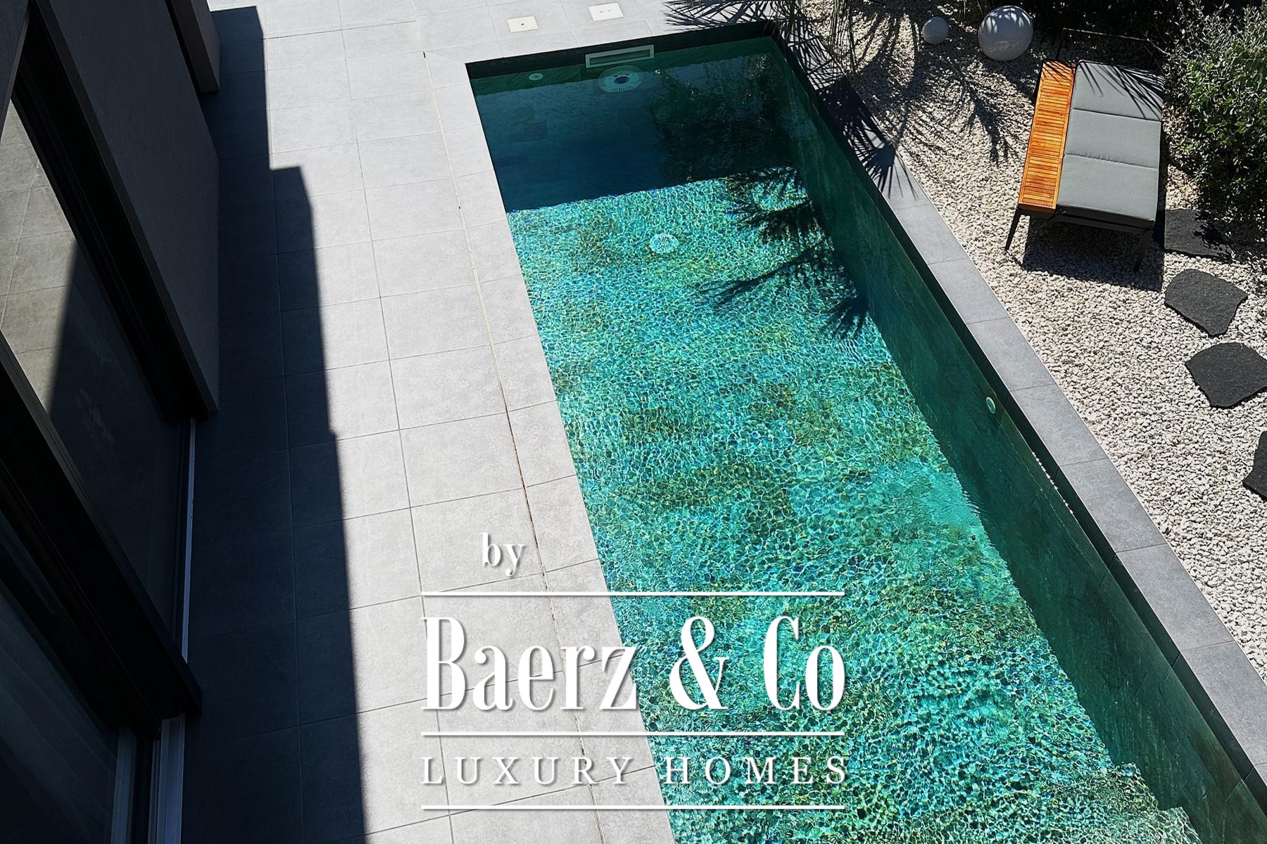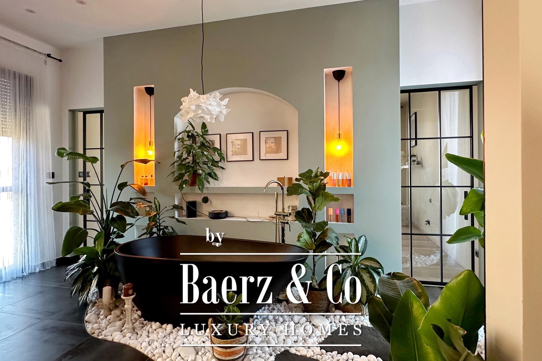 Op de eerste verdieping beschikt de hoofdslaapkamer over veel licht en directe toegang tot een overdekt terras met uitzicht op het omliggende landschap, terwijl de royale badkamer groene accenten integreert voor een uitgesproken gevoel van rust. Een tweede slaapkamer met modern design beschikt over een eigen ensuite badkamer. Door het hele huis zijn het meubilair en de afwerking afkomstig uit Duitsland, Italië en Tsjechië, geselecteerd op kwaliteit en duurzaamheid. Vloerverwarming met warmtepompsysteem en individuele airconditioningunits bieden comfort in alle seizoenen. Buiten nodigen de barbecue, terrassen en volwassen begroeiing uit tot privacy en samenzijn, gecompleteerd door sfeerverlichting en videobewaking. In de entreehof is er parkeerruimte voor vier auto’s. Deze villa in Premantura is uitzonderlijk vanwege de unieke combinatie van beschutting, lichtinval en Europese ambachtelijkheid.