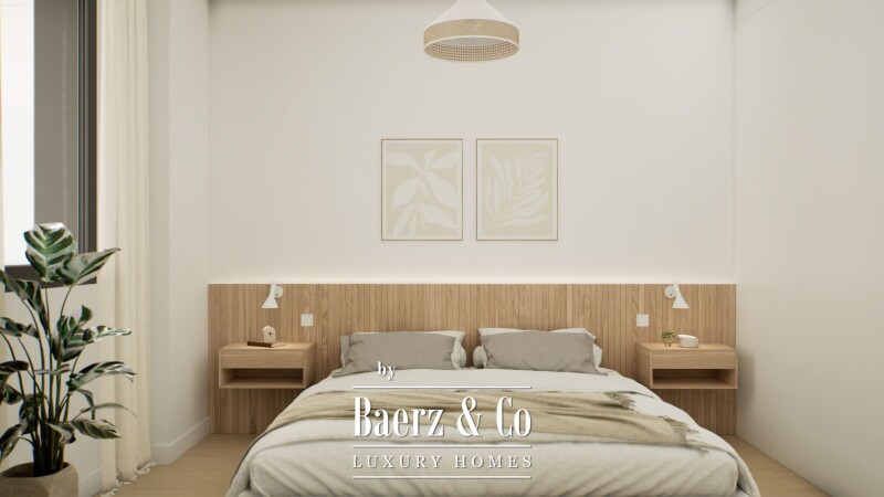 Drie slaapkamers en twee badkamers zijn zo gesitueerd dat privacy en gebruiksgemak gewaarborgd zijn, passend binnen een doordachte plattegrond. Het terras is het absolute kenmerk van deze woning—een royale ruimte voor dineren, loungen of ontspannen, met het extra voordeel van uitzicht op zowel zee als stad.