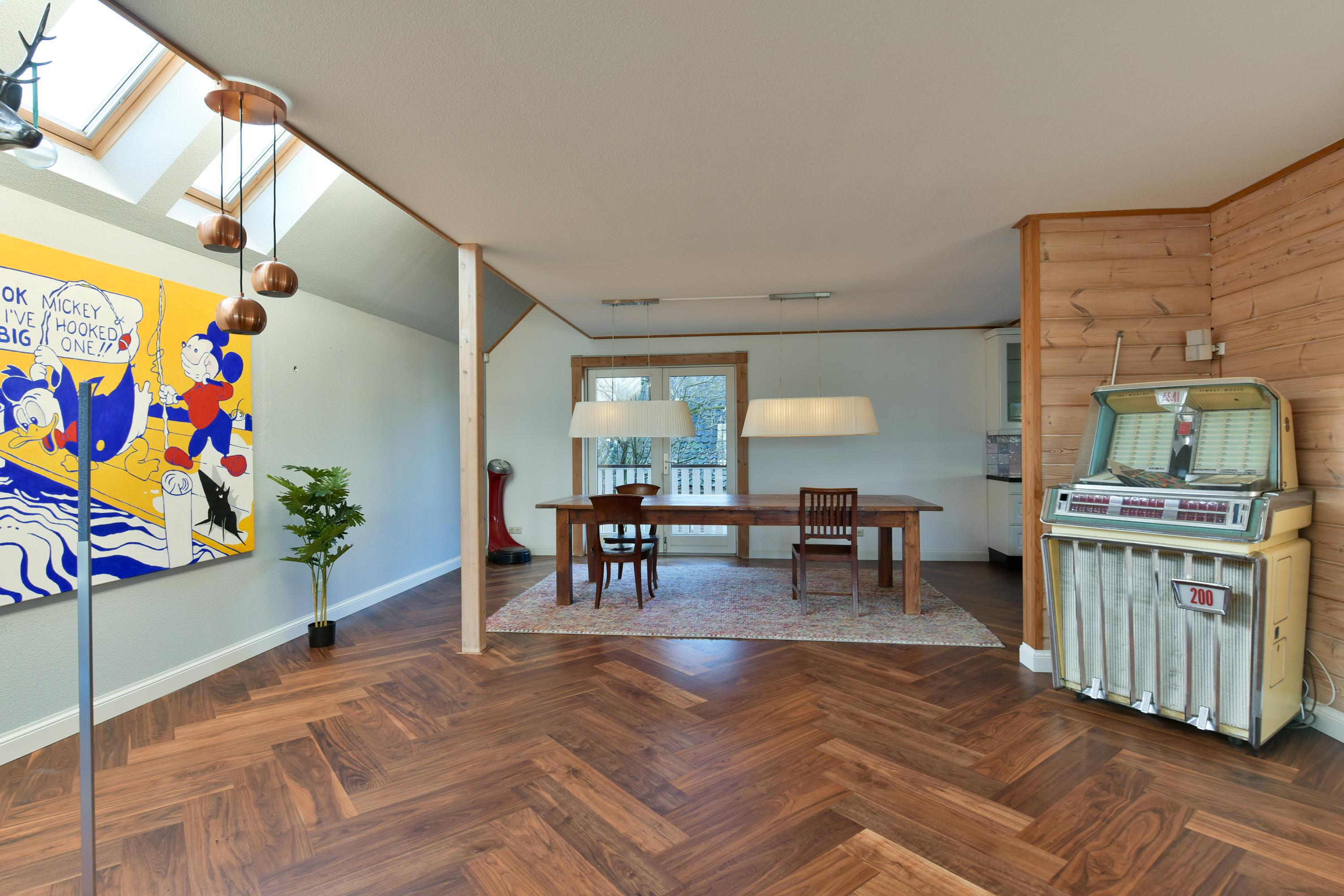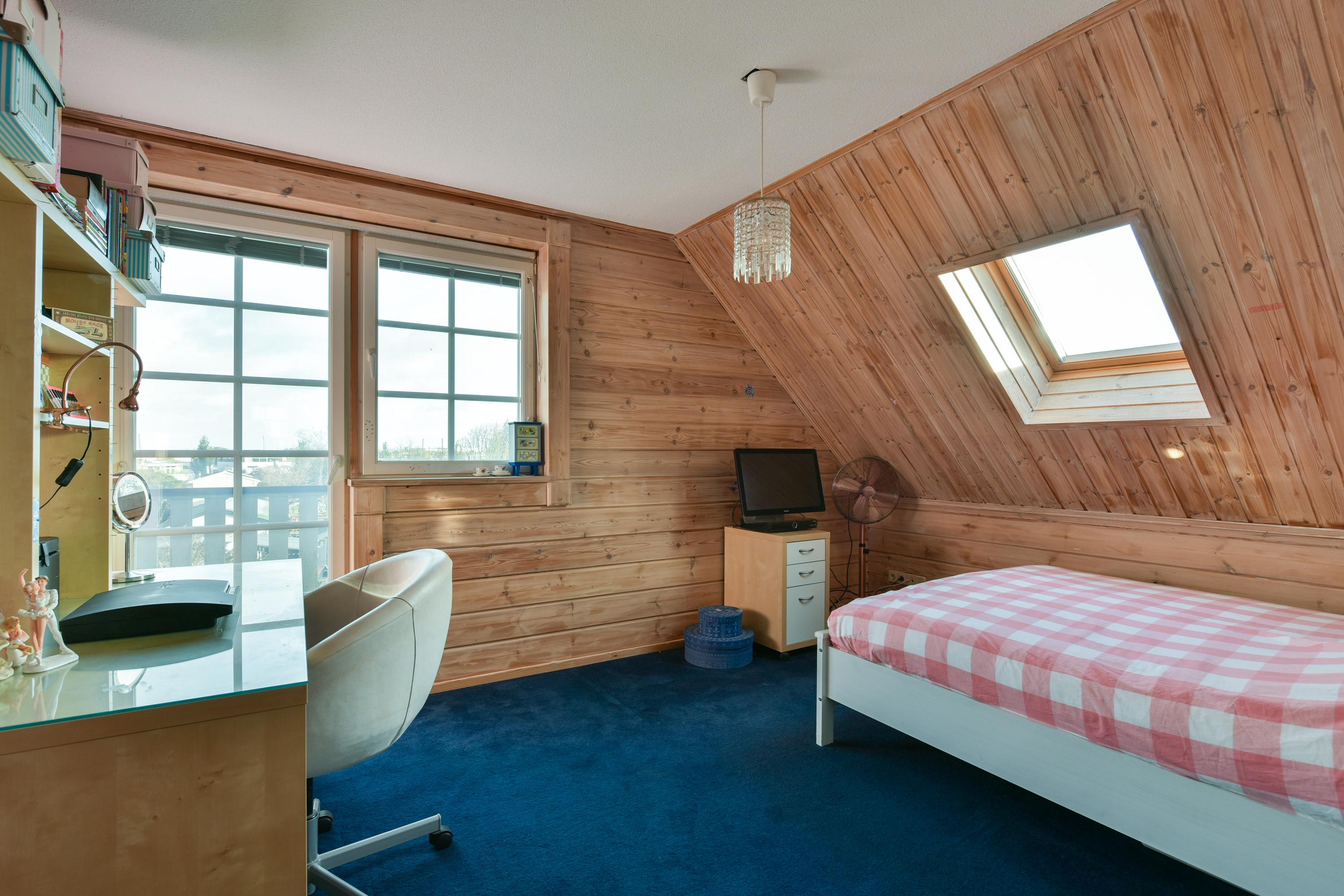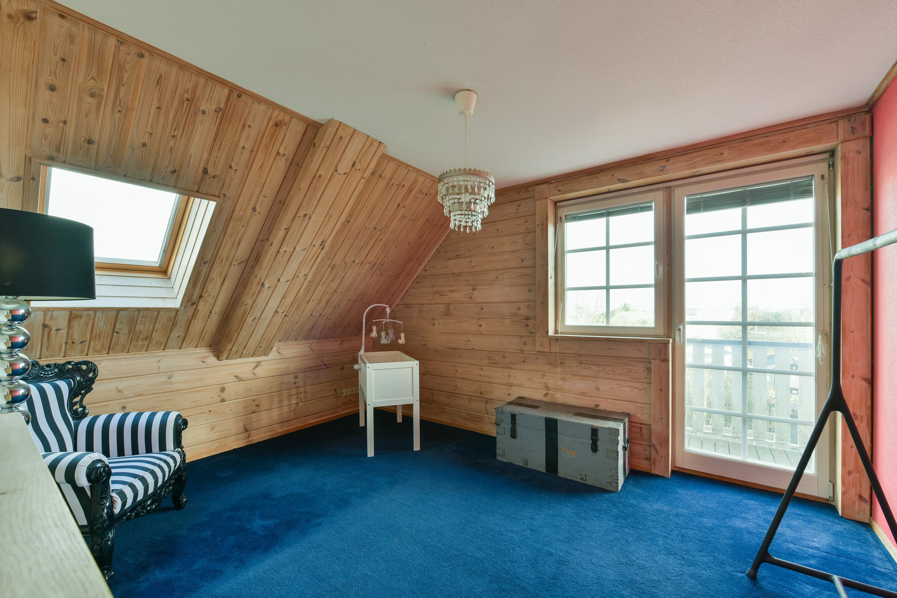 De zolderverdieping is via een vaste trap bereikbaar en biedt een grote, multifunctionele ruimte, ideaal als hobby- of fitnessruimte, met volop daglicht. Hier bevinden zich ook de cv-ketel, warmtepomp en aansturing van de zonnepanelen.