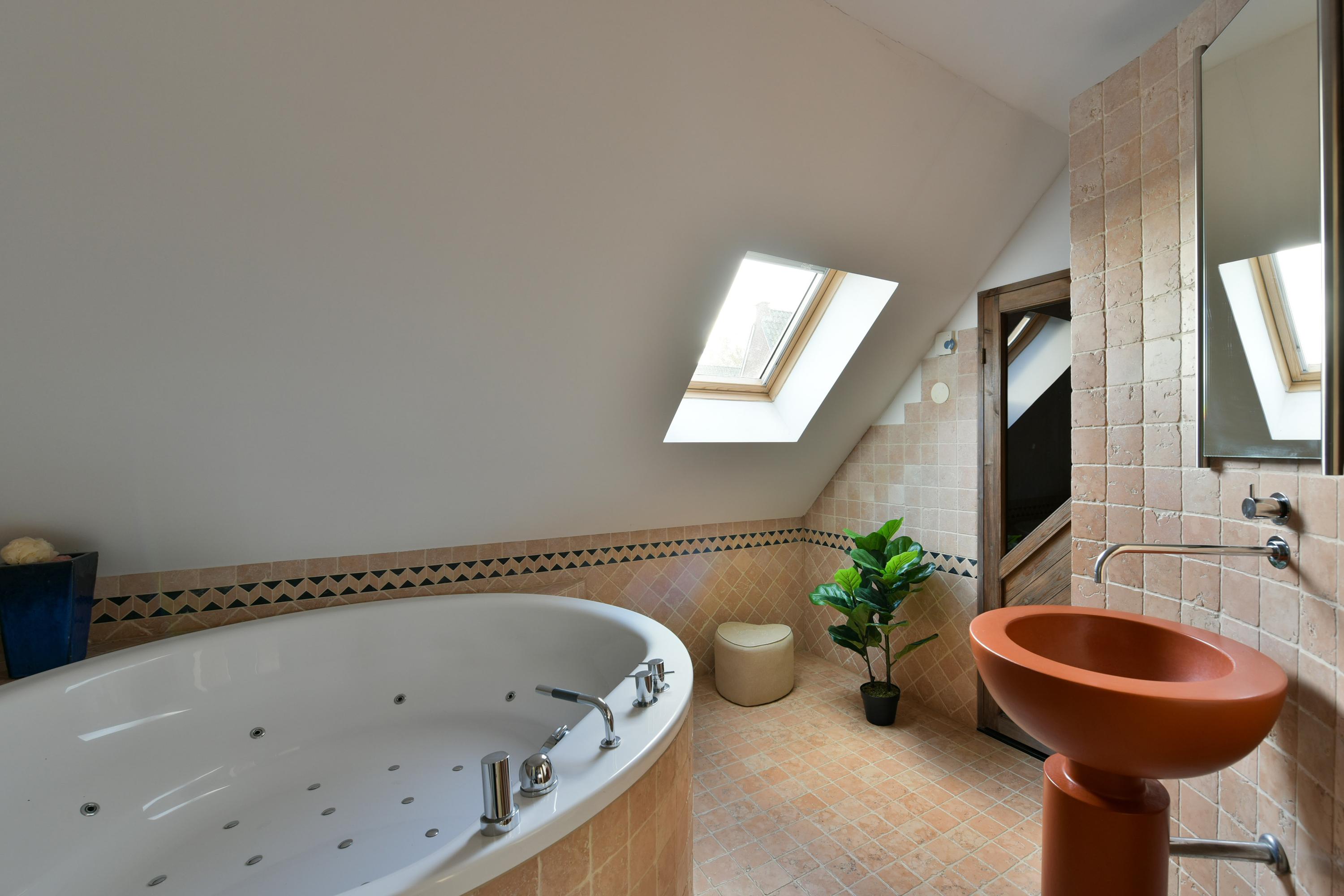 De achtertuin, gelegen op het oosten, biedt een perfecte combinatie van ontspanning en luxe. Start je dag met de eerste zonnestralen op het ruime terras, ideaal voor gezellig ontbijten of lange zomeravonden. Het grote zwembad nodigt uit voor een verfrissende duik en zorgt voor eindeloos plezier tijdens zonnige dagen. Hier beleef je ultiem wooncomfort en geniet je van vele zonuren in je eigen privéparadijs met volop privacy!