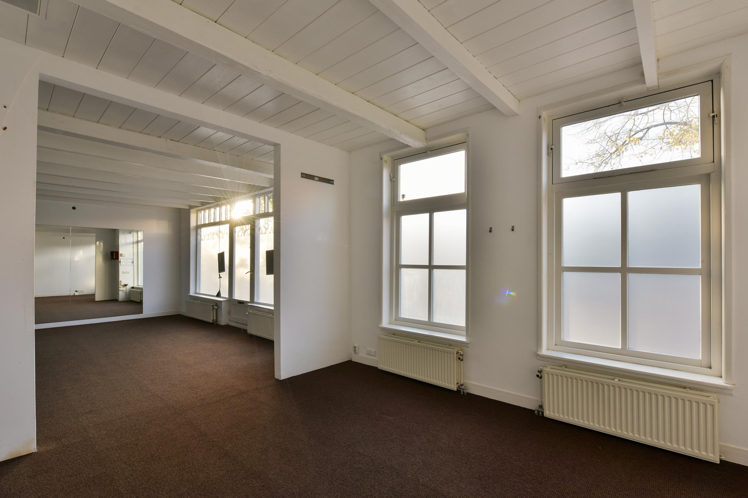 Uniek is het voorgelegen bijgebouw. De begane grond heeft een entree aan de voorzijde die toegang biedt aan een open ruimte met half-open werkhoek. Een portaal aan de achterzijde heeft een achterdeur en toegang naar een halletje met trap naar de verdieping, toilet en keuken. De eerste verdieping is een open zolder met de opstelling voor de eigen CV-installatie. De brutovloeroppervlakte is 146 m2, gebruiksoppervlakte conform de NEN2580 is 96 m2. Deze praktijkruimte beschikt over airconditioning. Ook deze ruimte is naar eigen inzicht voor veel doeleinden geschikt te maken.